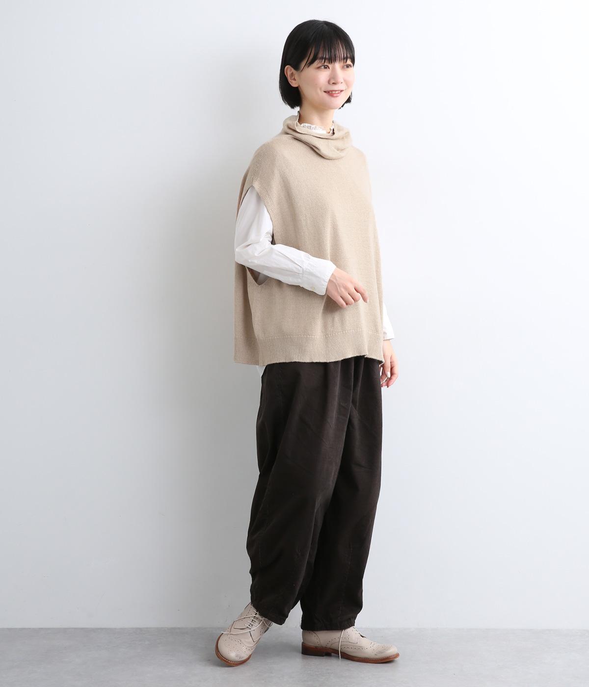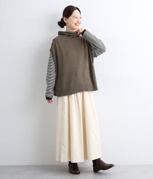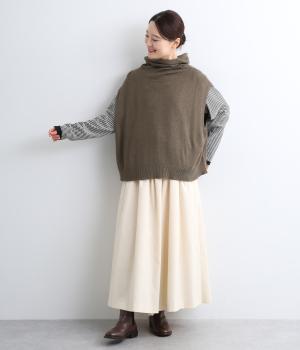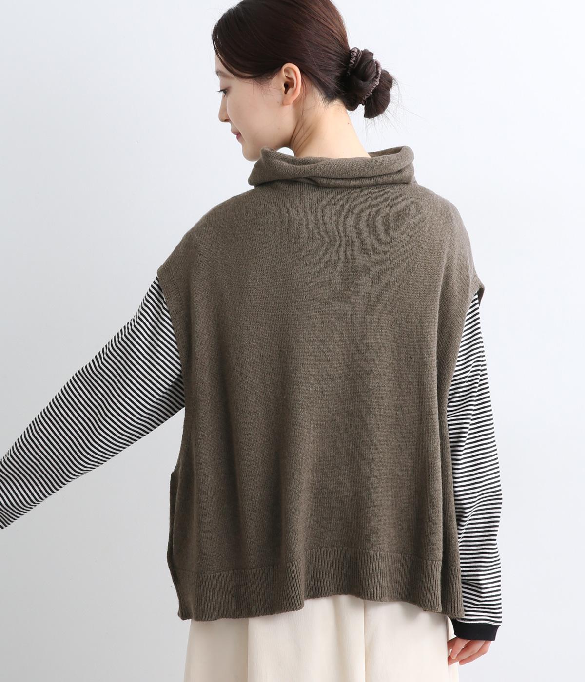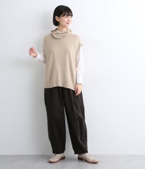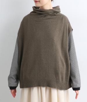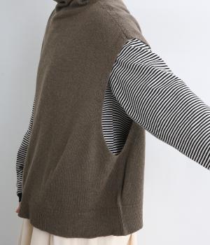 ゆったりとしたオフタートルネックが顔まわりにニュアンスをもたらすベスト。ゆとりのあるシルエットでレイヤードしやすく、シンプルな合わせにプラスするだけでお洒落なスタイリングへと導いてくれます。