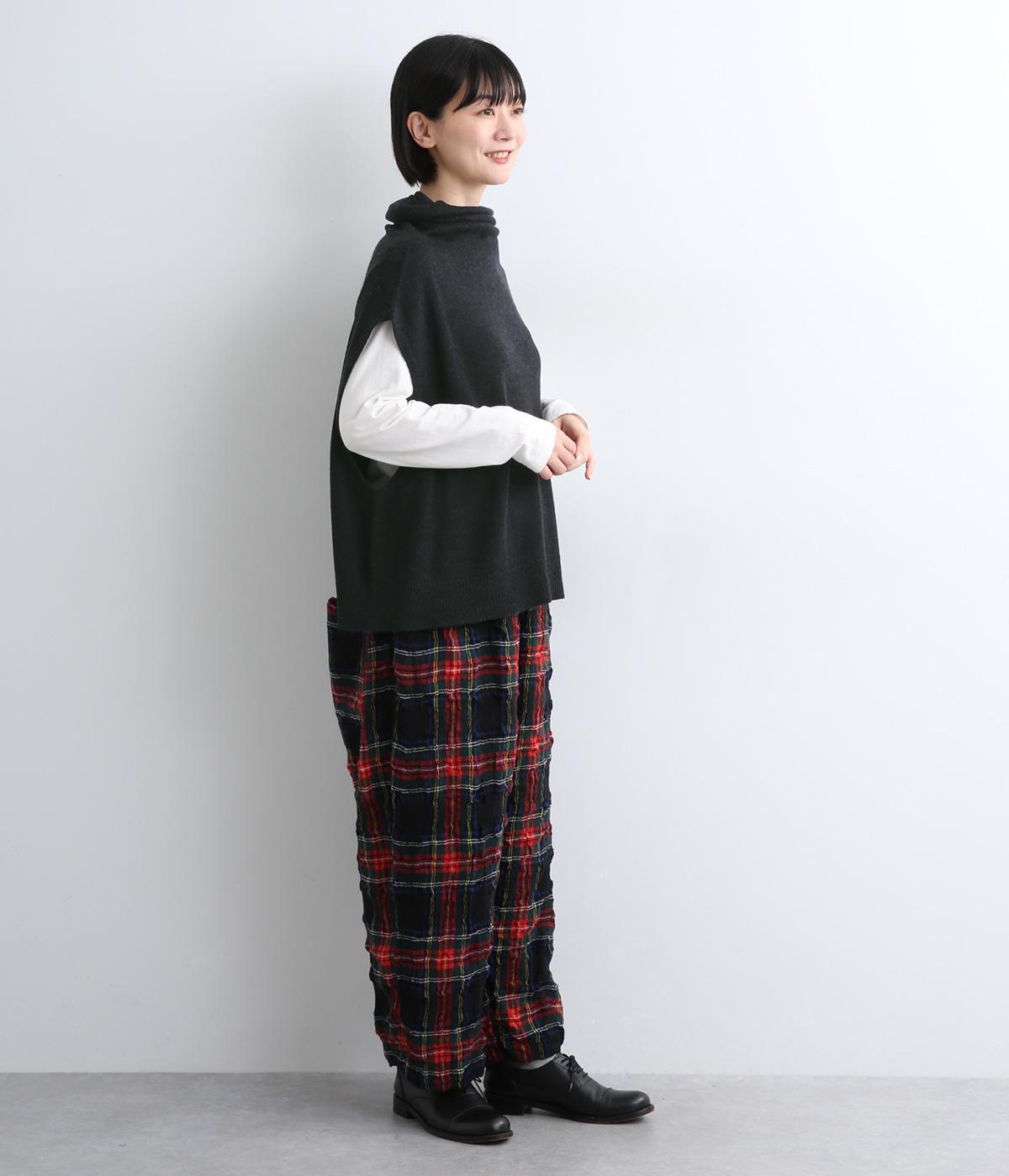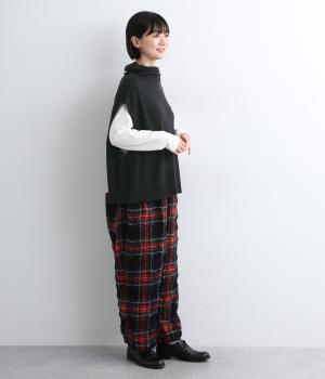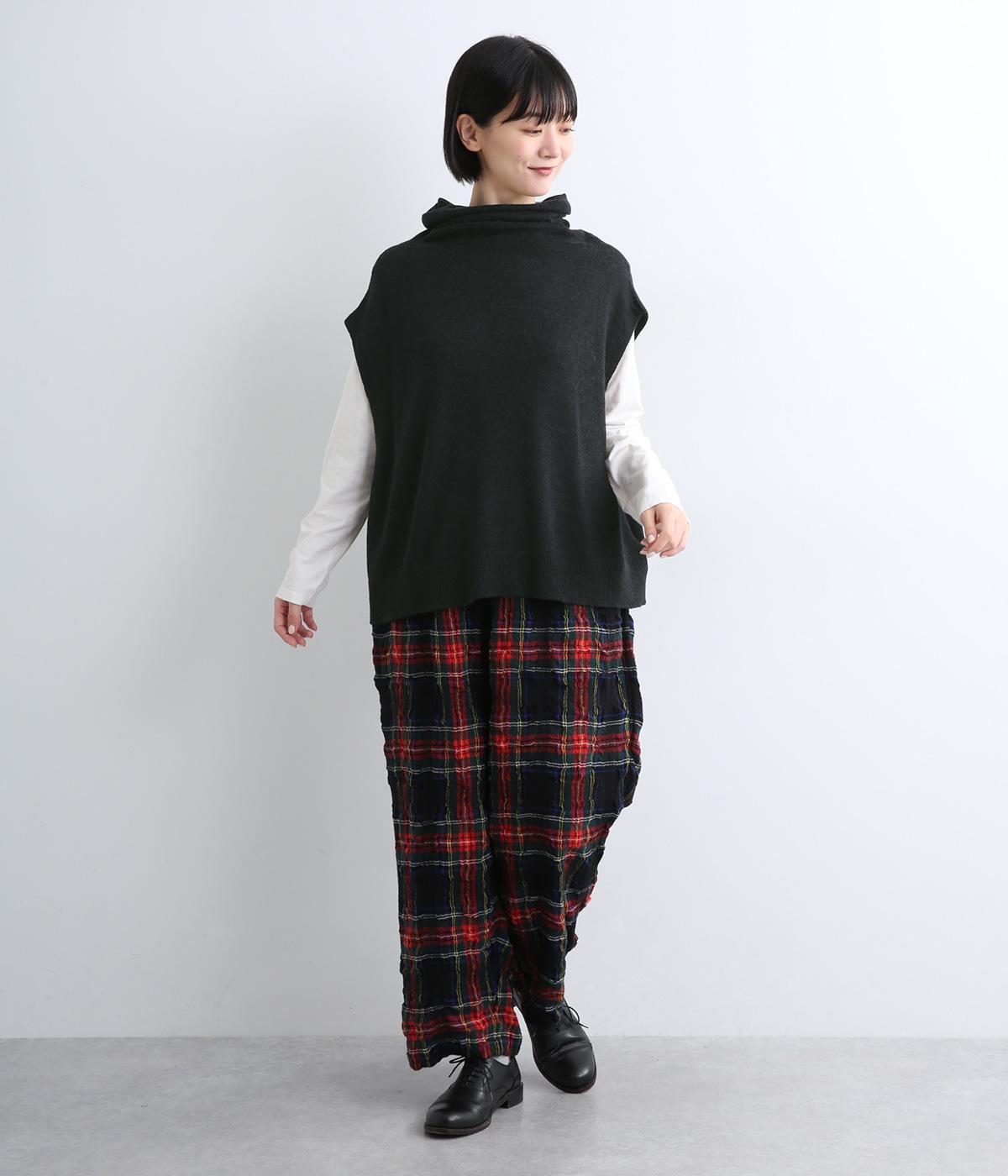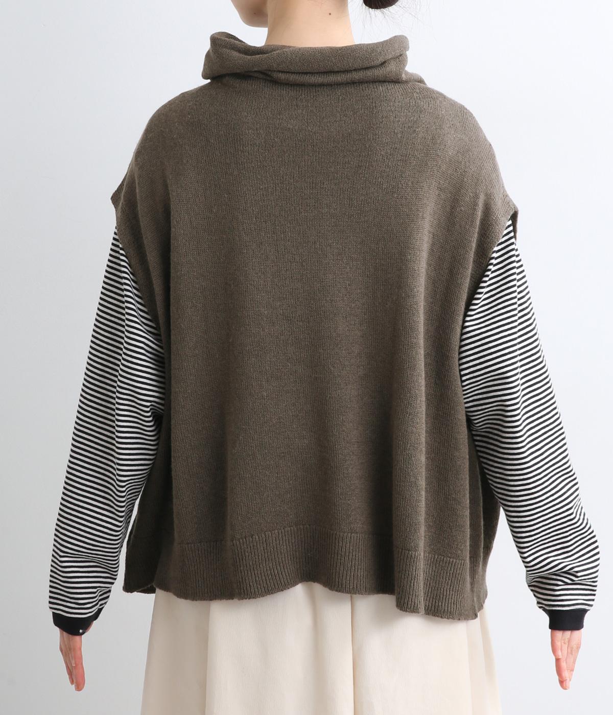 ゆったりとしたオフタートルネックが顔まわりにニュアンスをもたらすベスト。ゆとりのあるシルエットでレイヤードしやすく、シンプルな合わせにプラスするだけでお洒落なスタイリングへと導いてくれます。