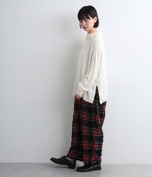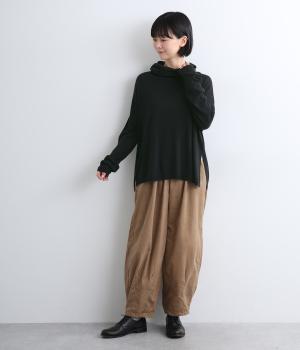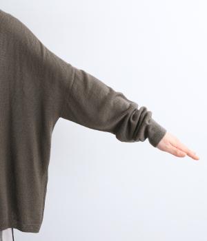 タートルネックや袖先が自然とくしゅっと落ちてニュアンスを出してくれる、オーバーシルエットのプルオーバーです。なめらかな生地感を活かした仕立てで、シンプルながらも存在感を発揮。深めのサイドスリットを入れているのでボトム合わせも◎。