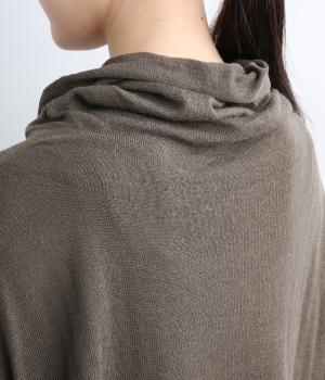 やわらかな肌触りになめらかな落ち感が特徴的なレーヨンに、ウールをすこし混ぜてあたたかみのある表情をつけました。見た目以上に軽やかでレイヤードしやすい仕上がりです。