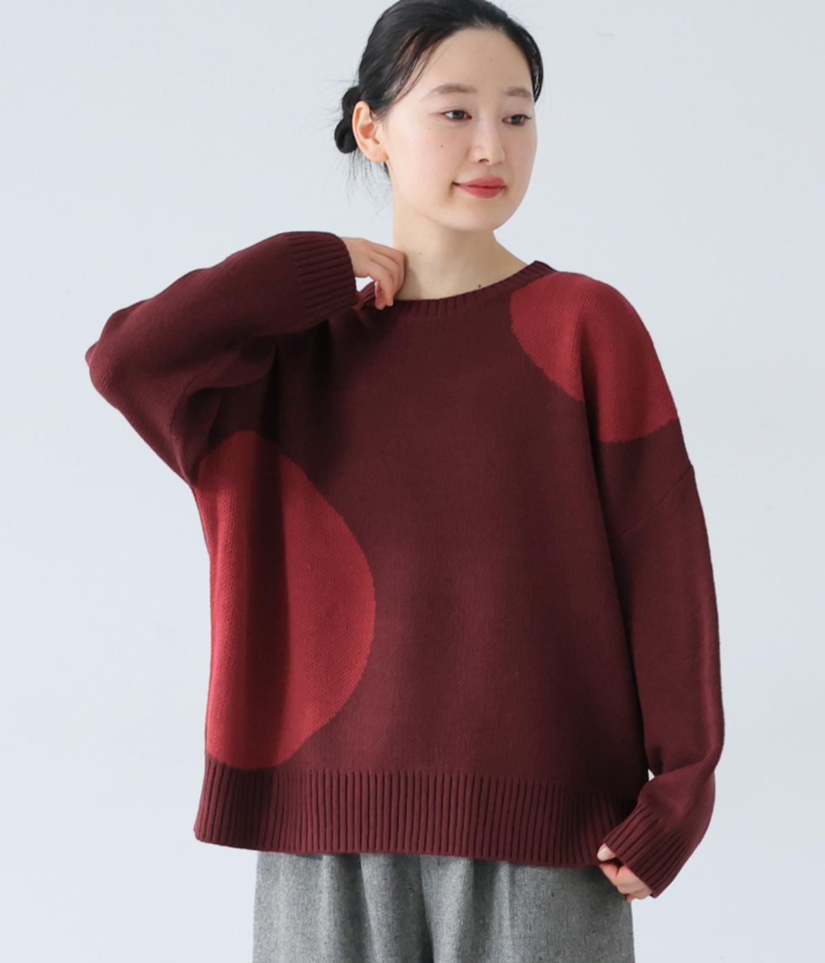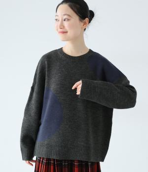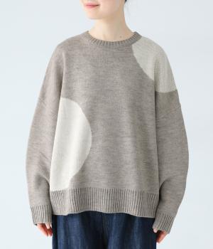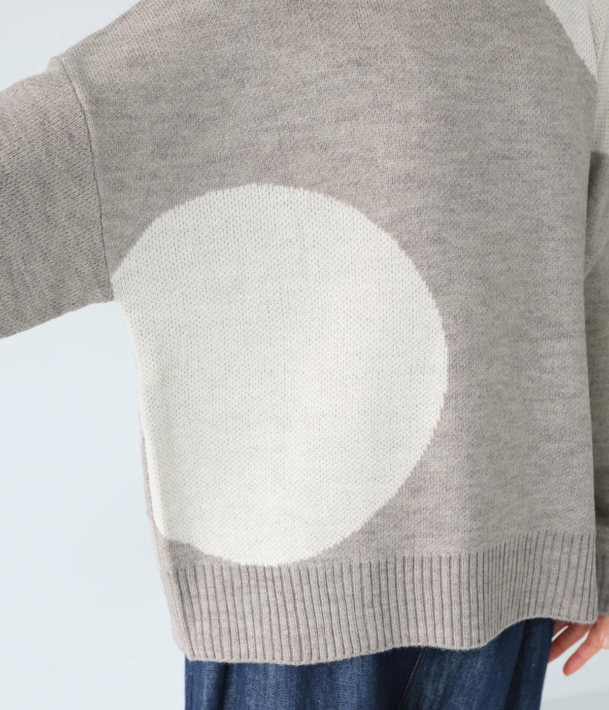 フロントにあしらった大きなドット柄が目を引くニット。落ち着きのある配色で子どもっぽさをおさえ、シンプルに着やすくしています。ゆったりとした身幅とドロップショルダーがこなれ感を演出。ボトムスの合わせやすさと適度なデザイン性を兼ね備えたうれしい一枚です。