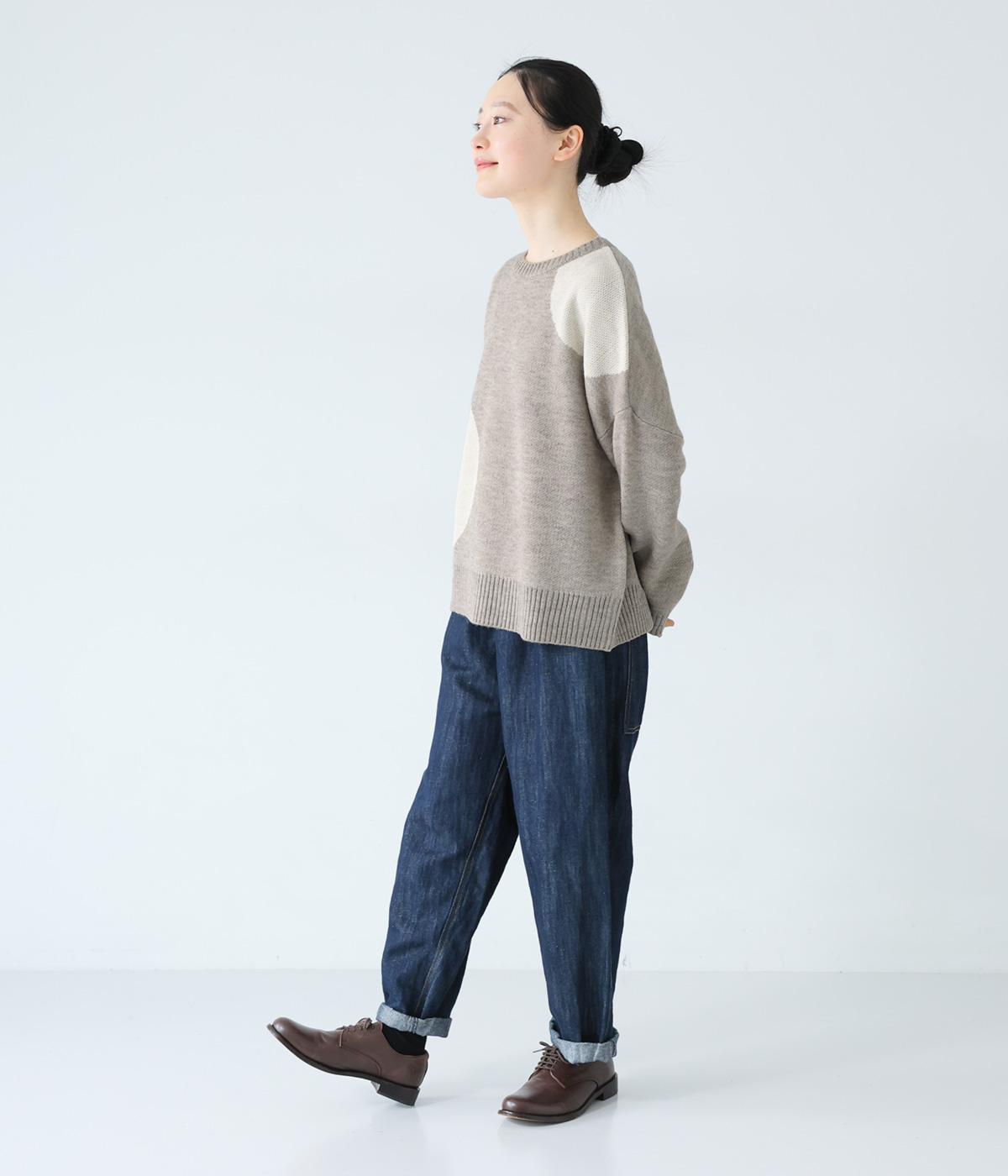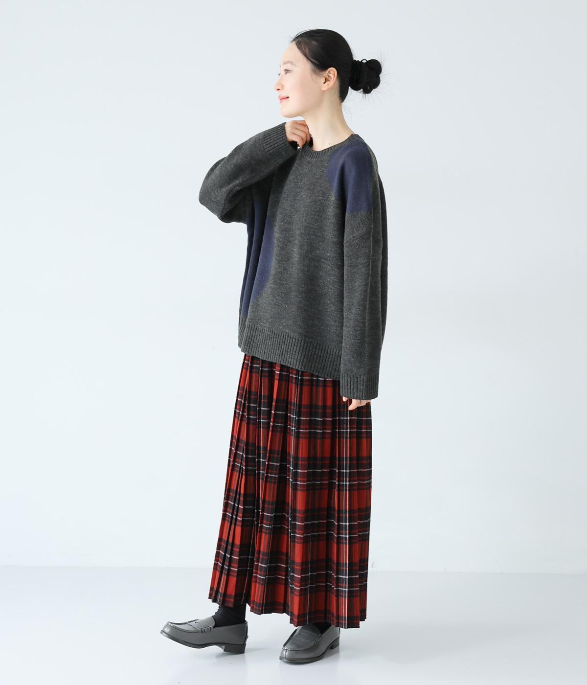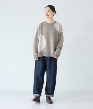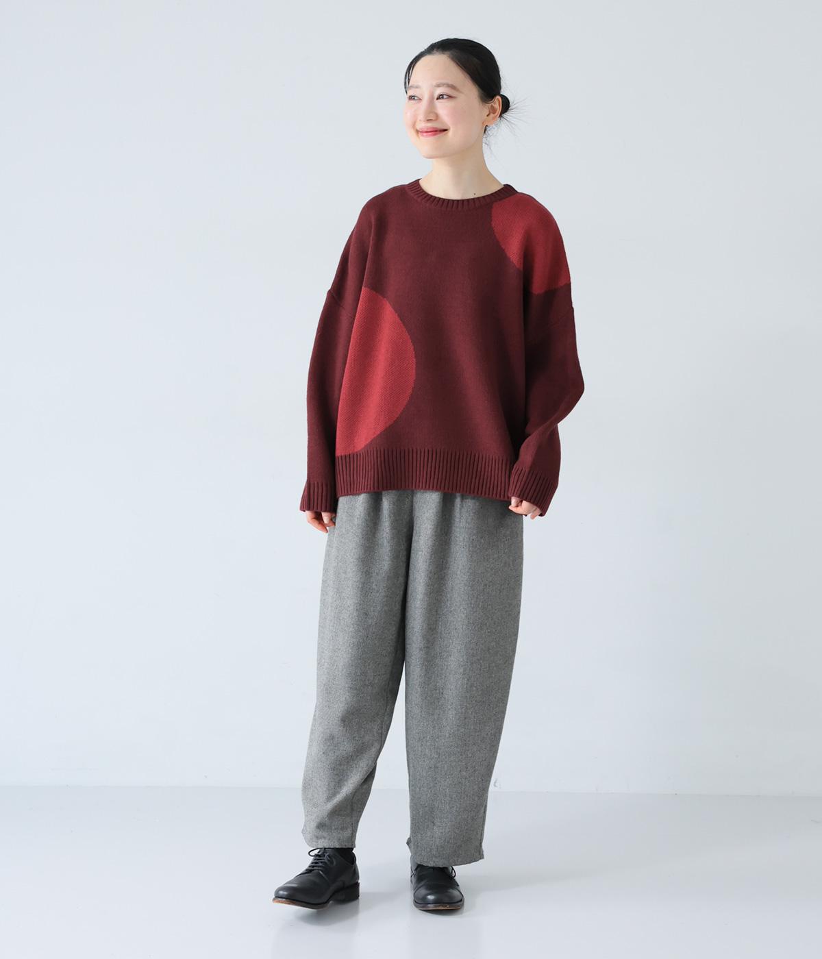 フロントにあしらった大きなドット柄が目を引くニット。落ち着きのある配色で子どもっぽさをおさえ、シンプルに着やすくしています。ゆったりとした身幅とドロップショルダーがこなれ感を演出。ボトムスの合わせやすさと適度なデザイン性を兼ね備えたうれしい一枚です。
