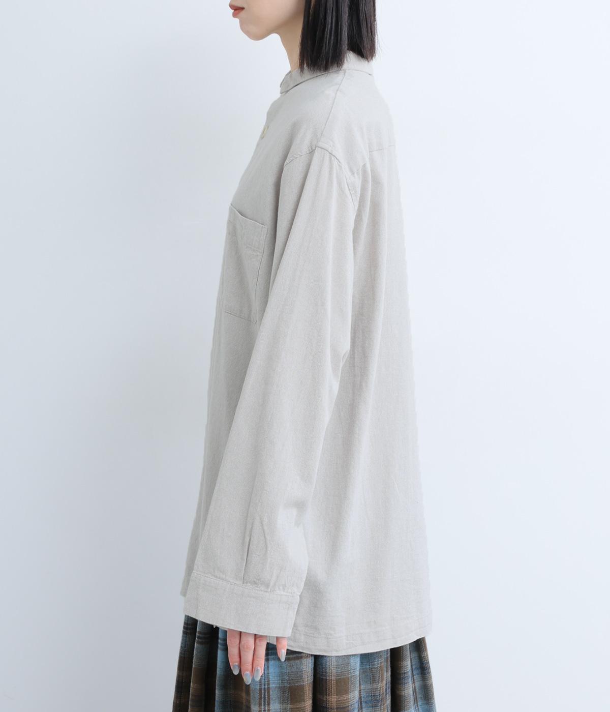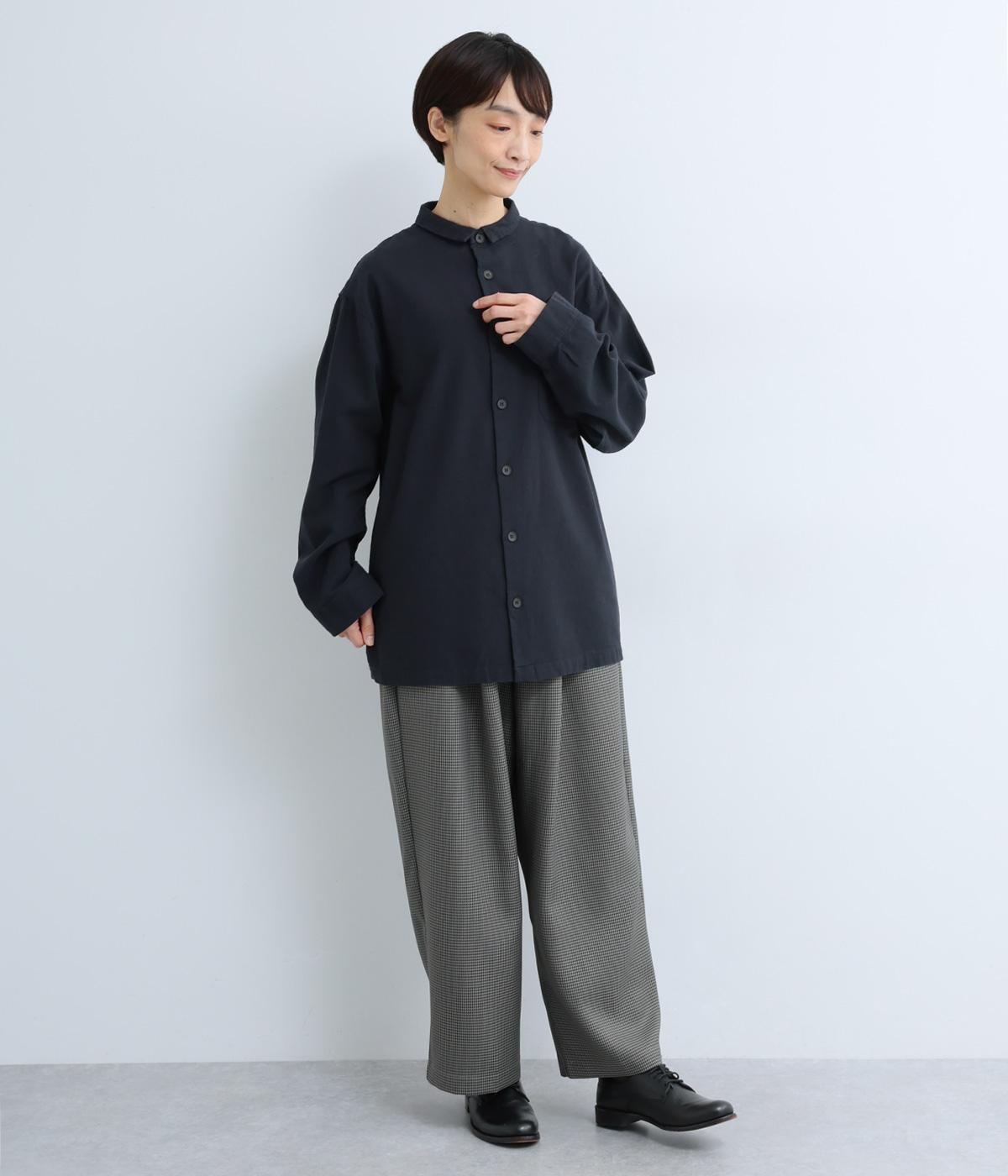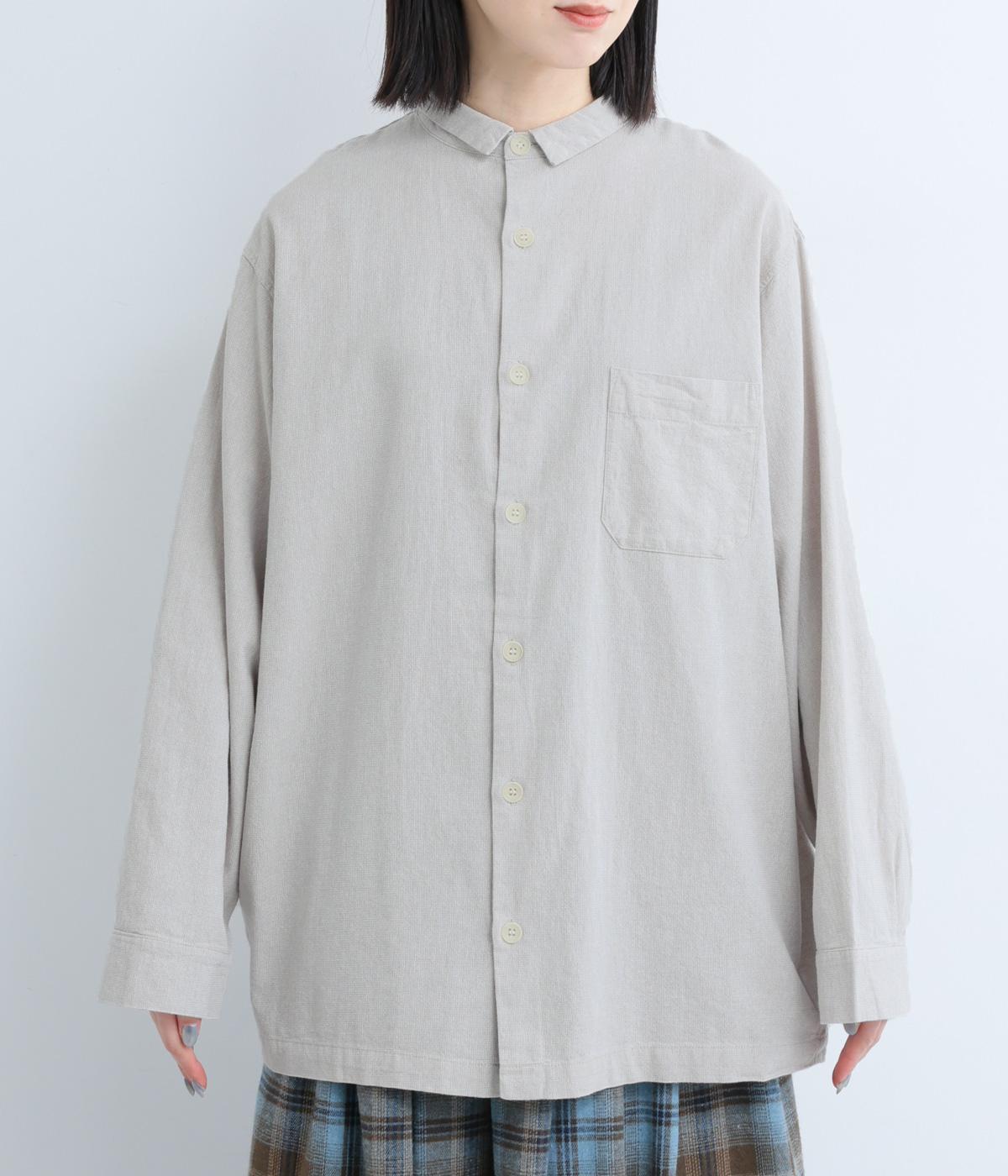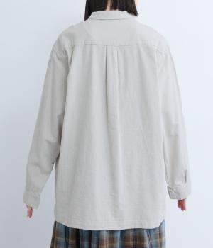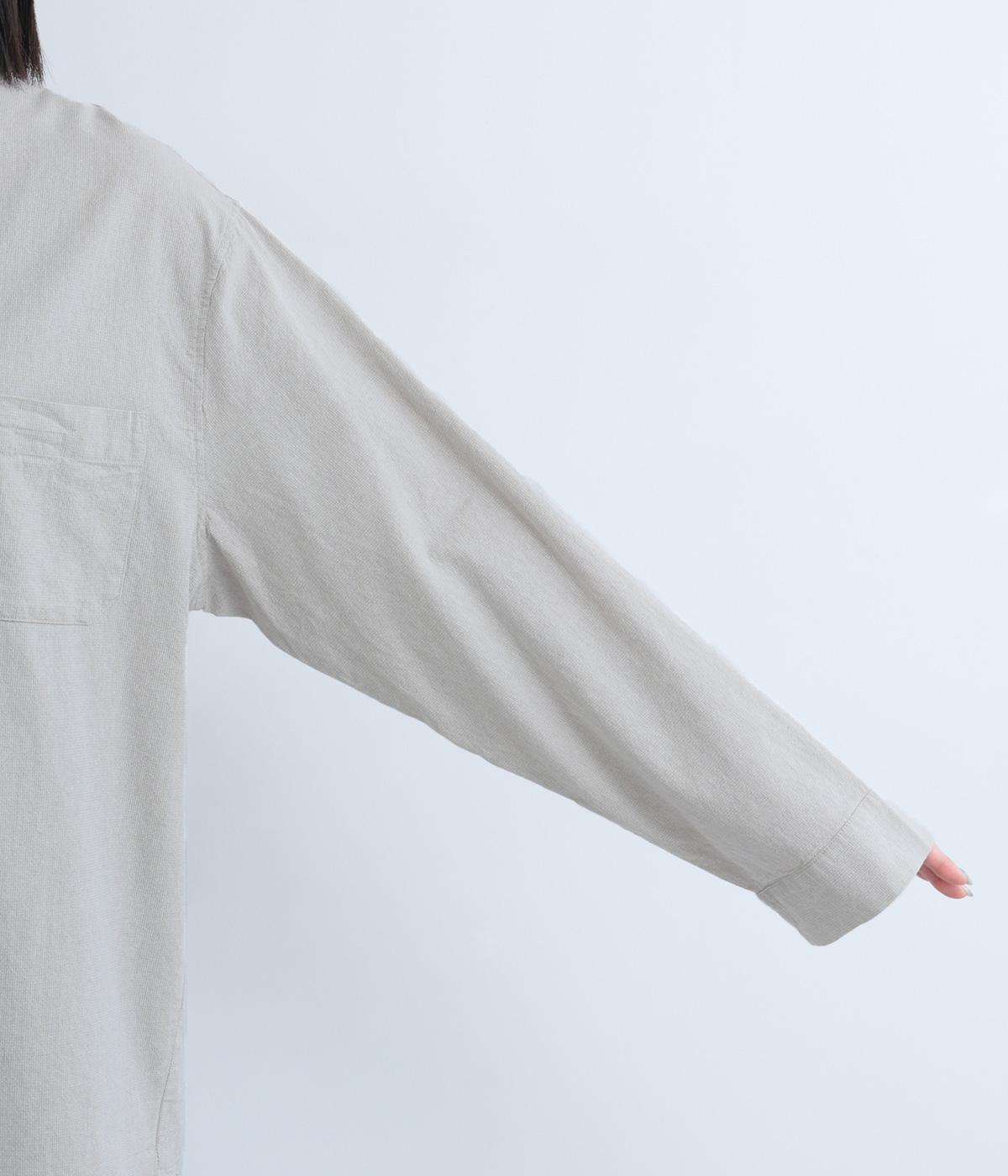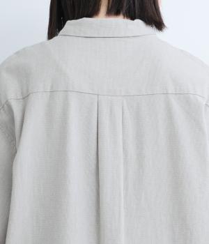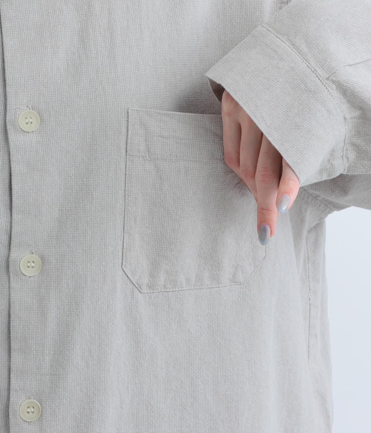 シンプルなフォルムに、変形織りの奥行きが映えるオーバーサイズシャツです。小さな襟が顔まわりをすっきりと見せつつ、さりげないかわいらしさを演出。袖口が広めなので、インナーをのぞかせたレイヤードもたのしめます。大人のコーディネートに寄り添う、ディテールにこだわった一枚です。