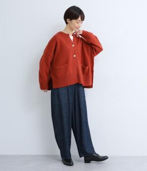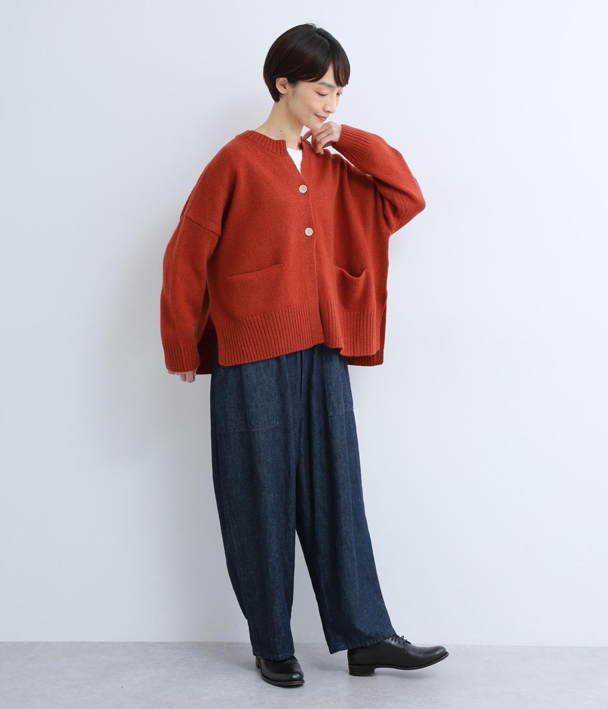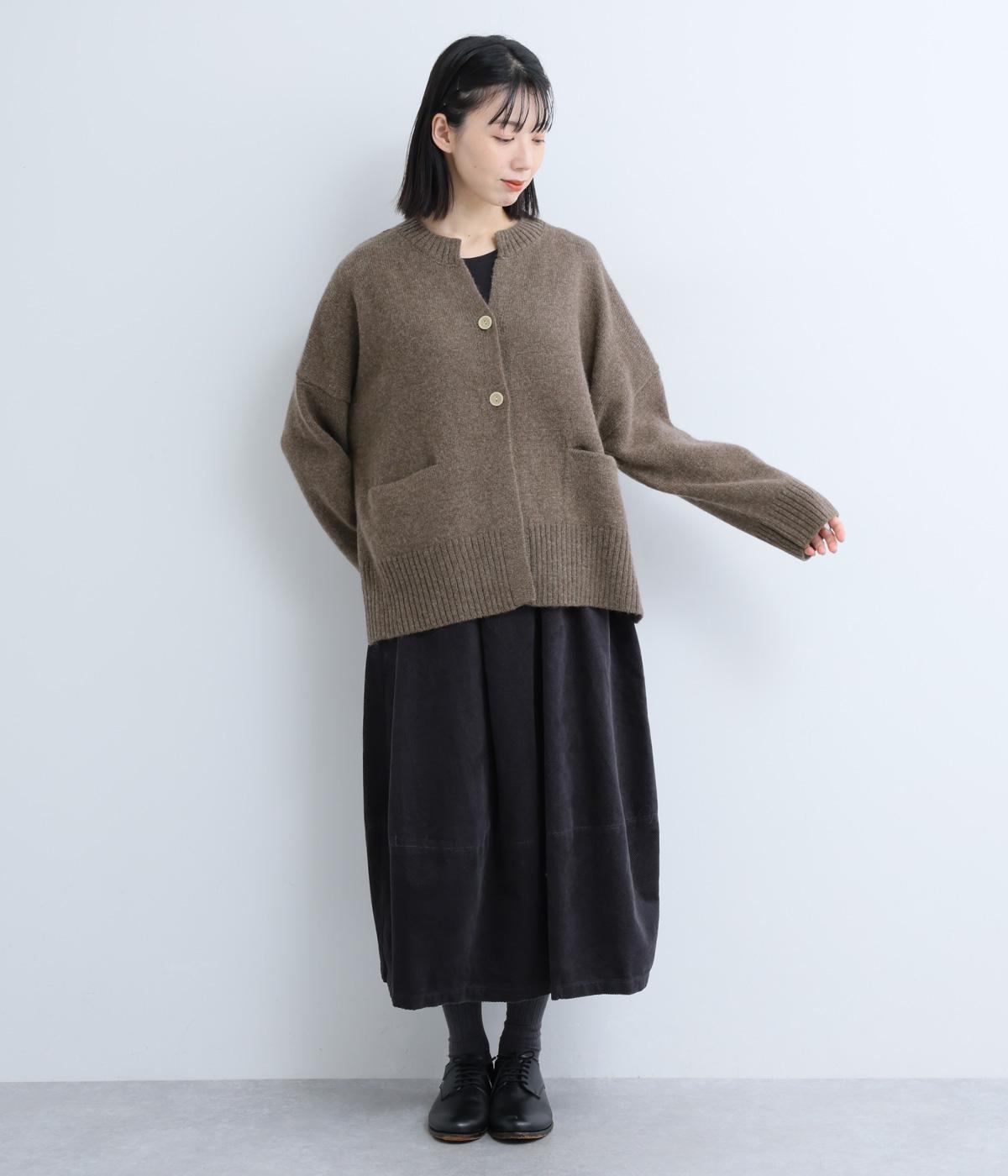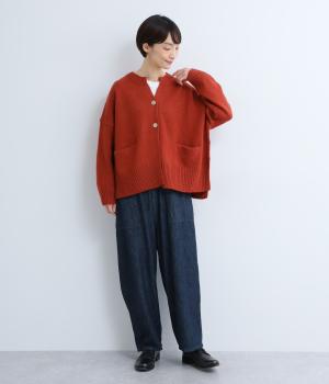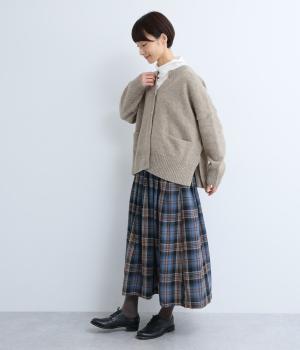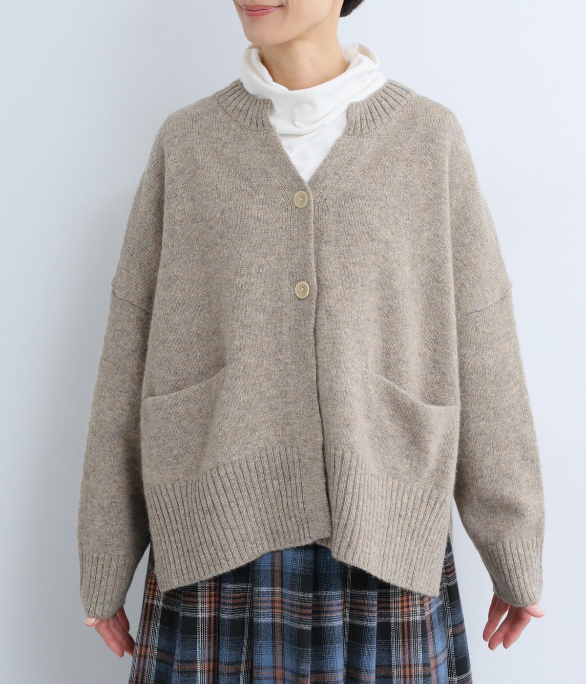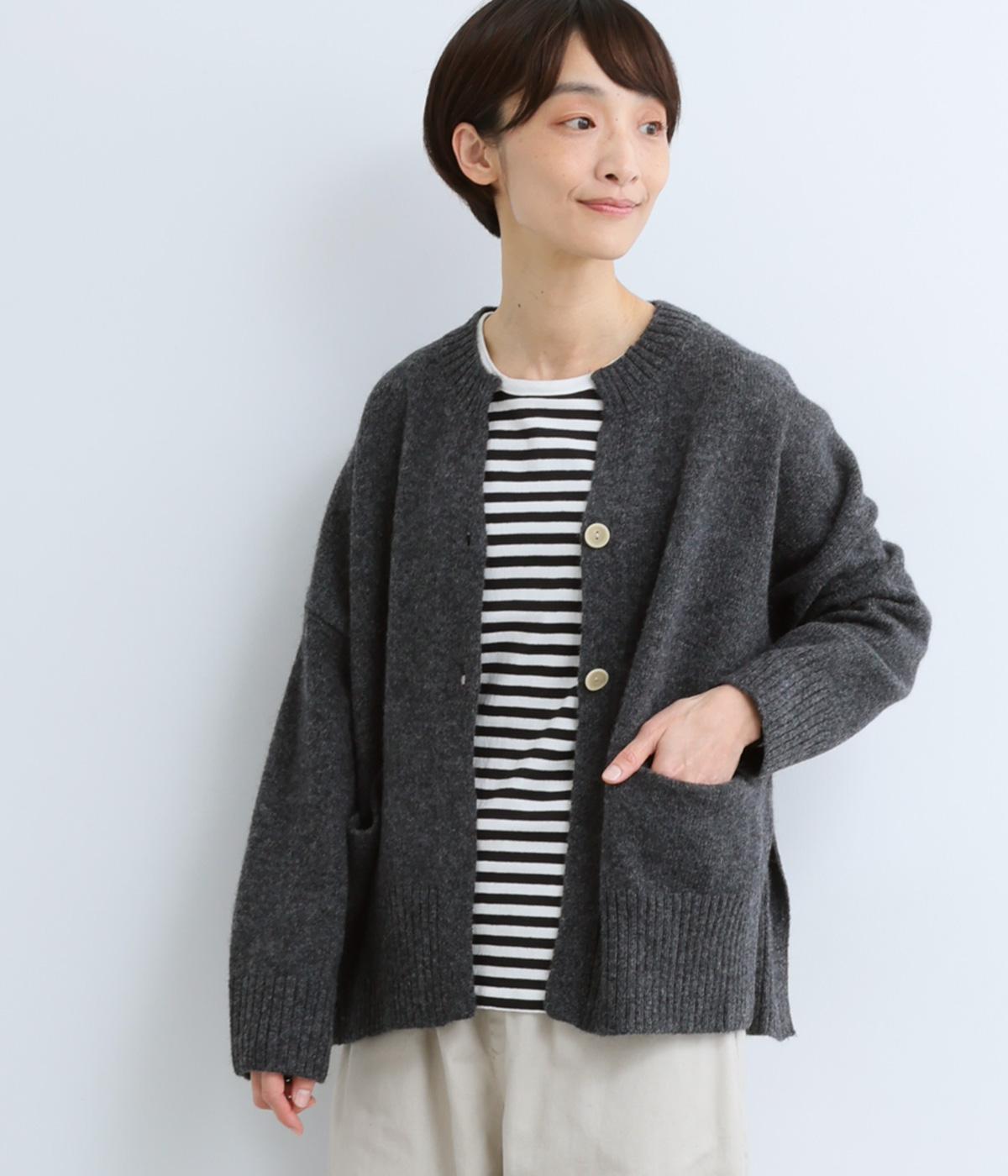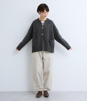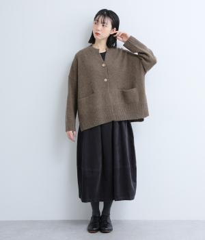 シンプルなシルエットながら、ディテールにこだわったカーディガンです。首元は小さくV字にカットされ、ボタンをとめてもすっきりとした印象に。サイドに入ったスリットが自然な抜け感をつくり、動きやすさも◎。ゆとりのある身幅なので、ワンピースやブラウスとの重ね着など、さまざまなコーディネートになじみます。