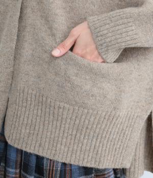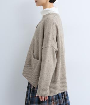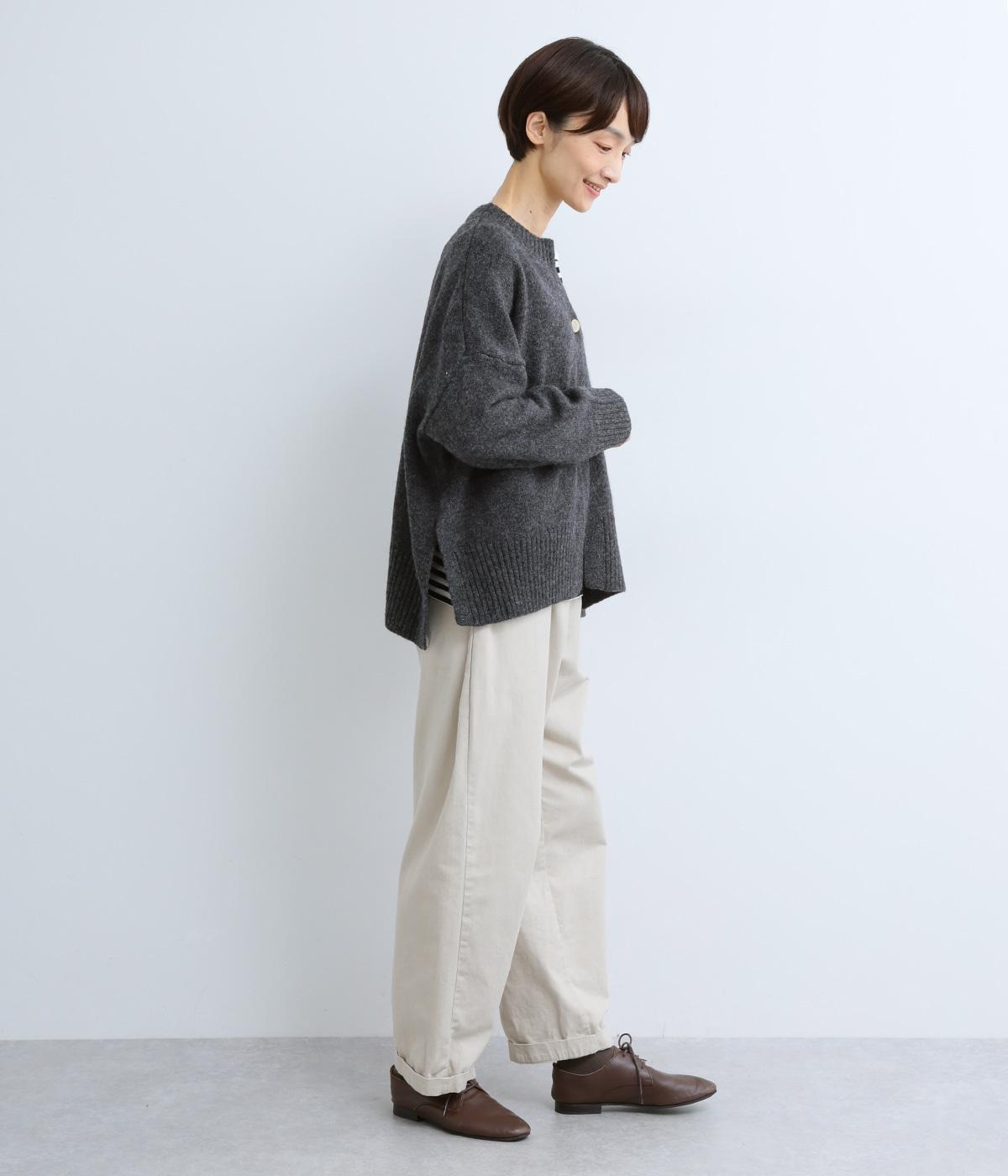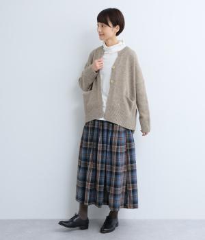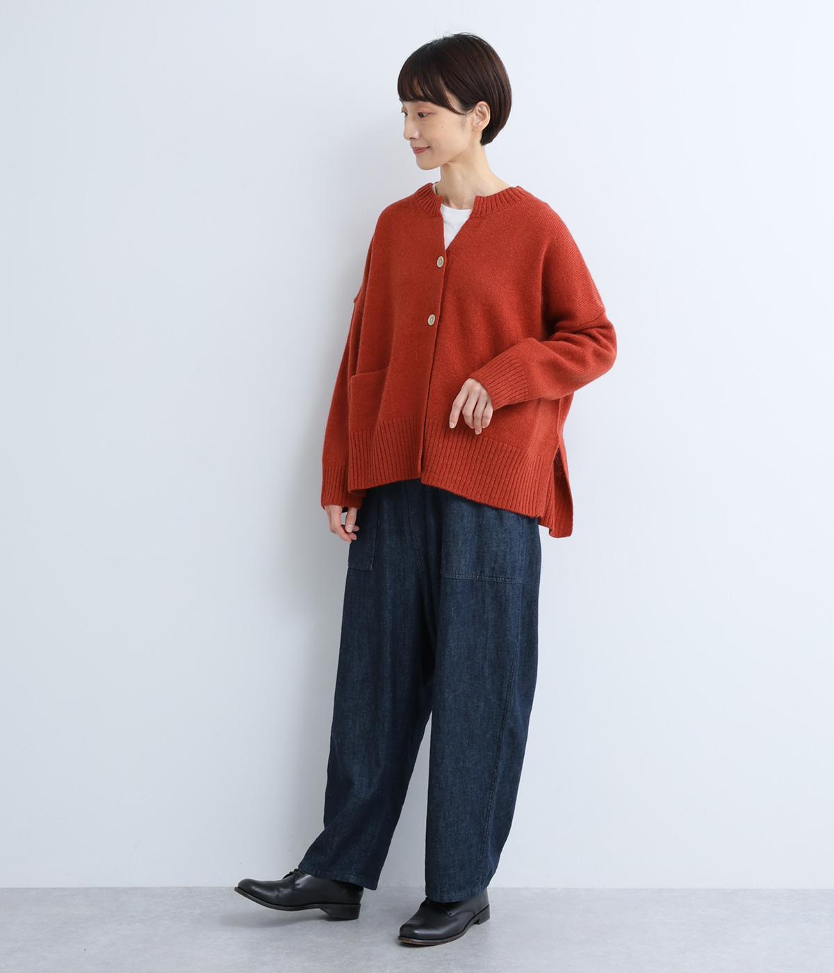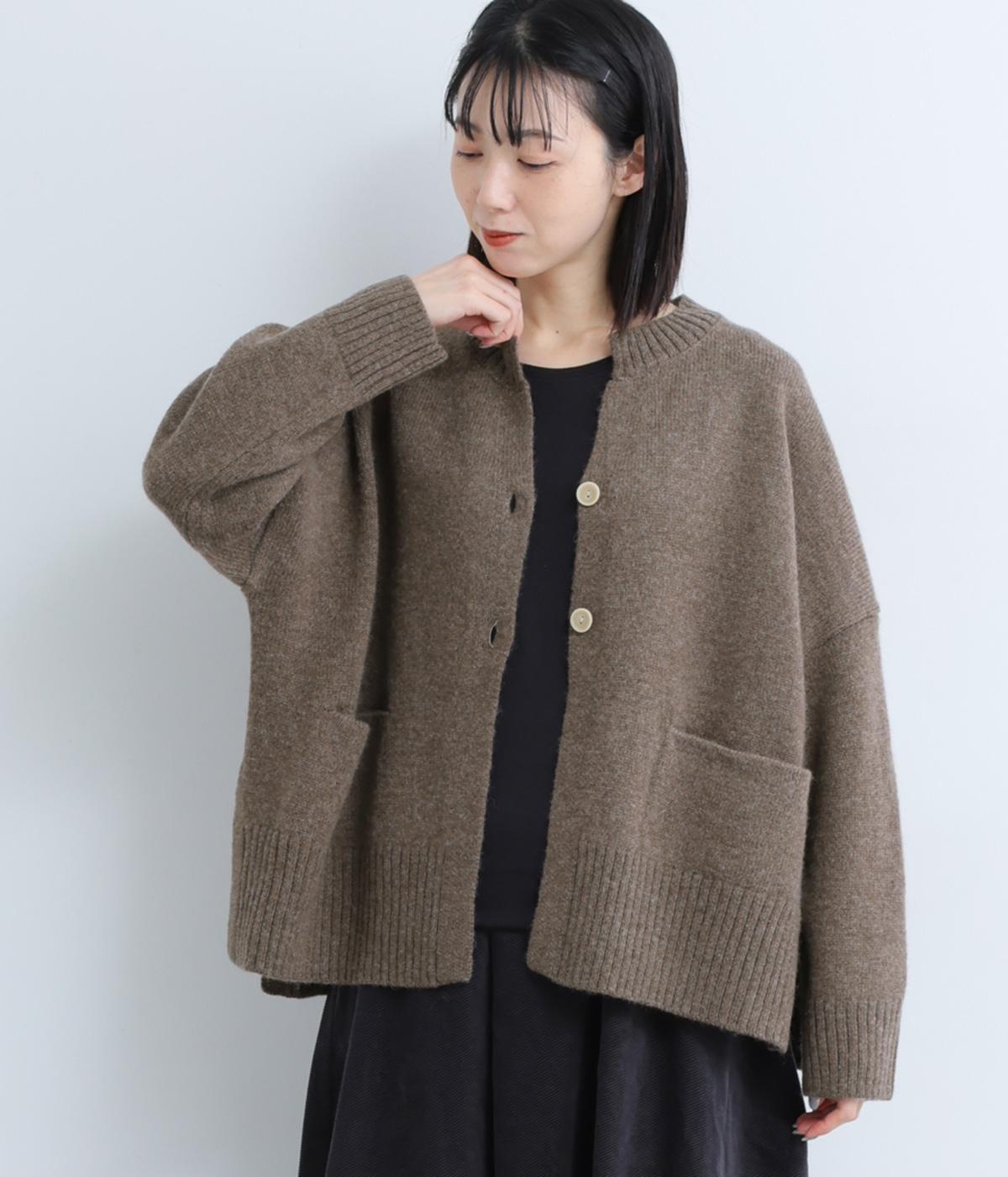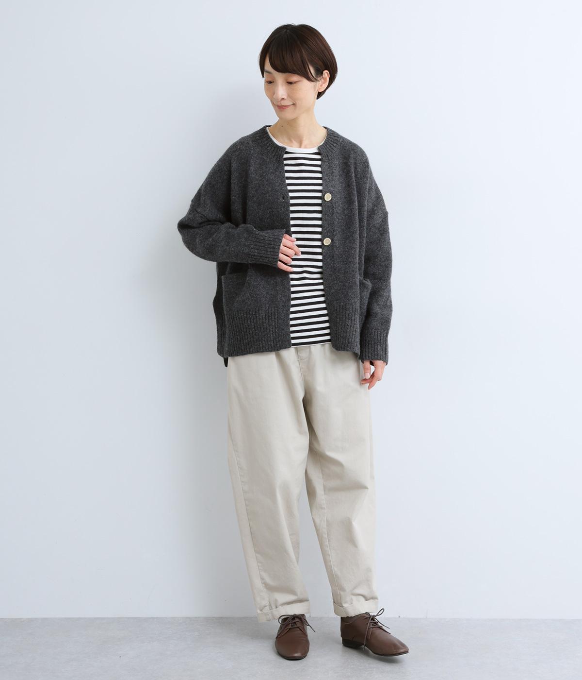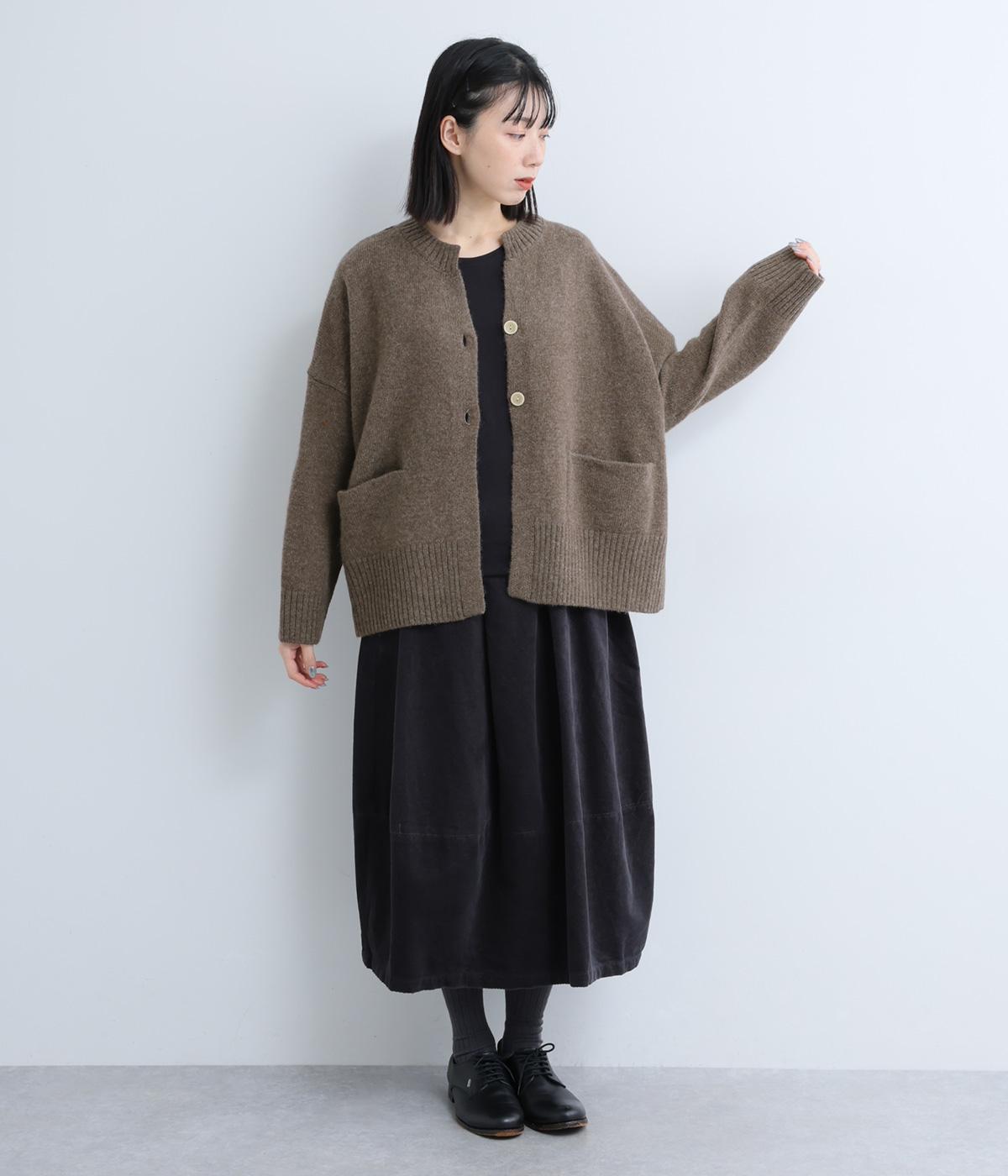 シンプルなシルエットながら、ディテールにこだわったカーディガンです。首元は小さくV字にカットされ、ボタンをとめてもすっきりとした印象に。サイドに入ったスリットが自然な抜け感をつくり、動きやすさも◎。ゆとりのある身幅なので、ワンピースやブラウスとの重ね着など、さまざまなコーディネートになじみます。