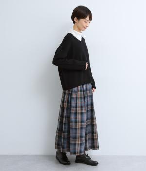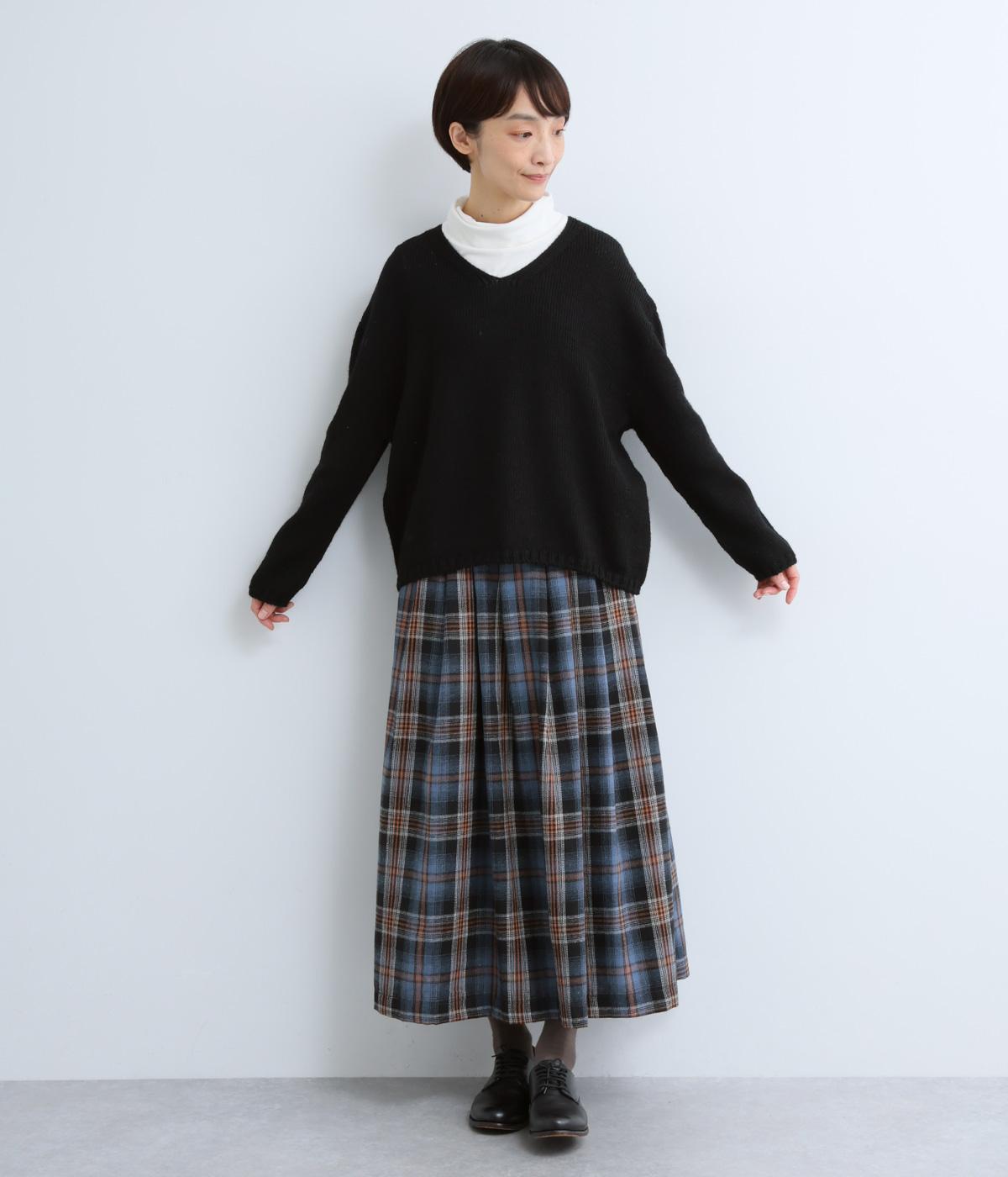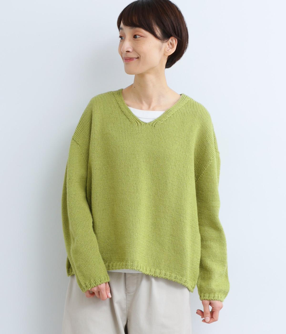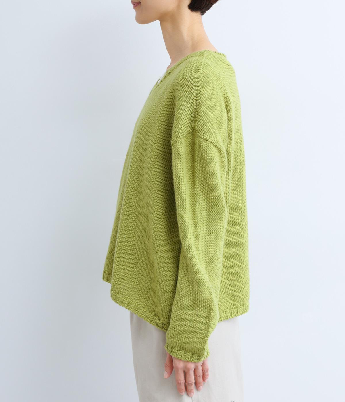 素材の風合いを活かした、シンプルなVネックデザインです。ほどよい深さのネックラインは、季節に合わせたレイヤードがしやすいのもうれしいポイント。身幅はゆったりめで抜け感がありつつ、だらしなくならない絶妙なバランスです。