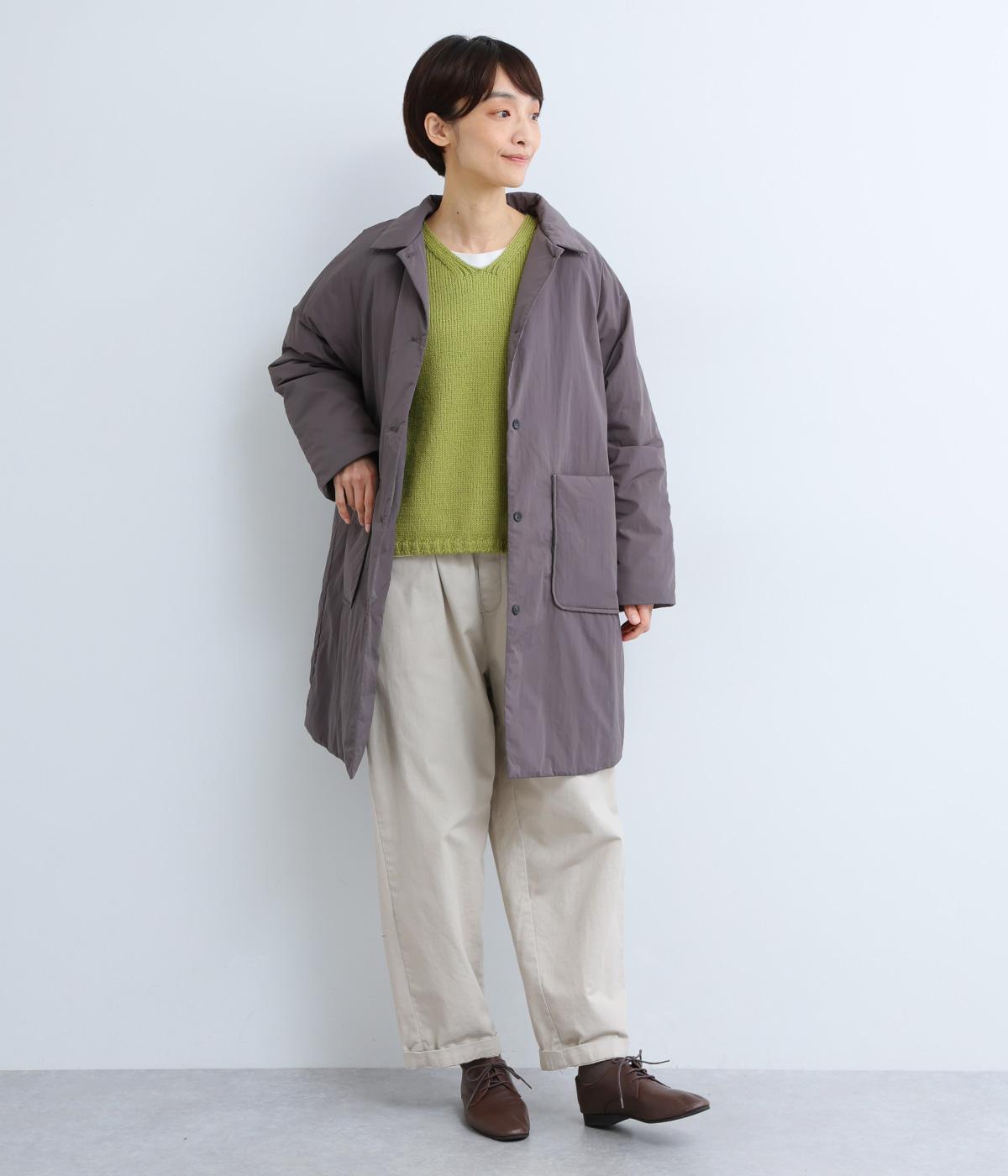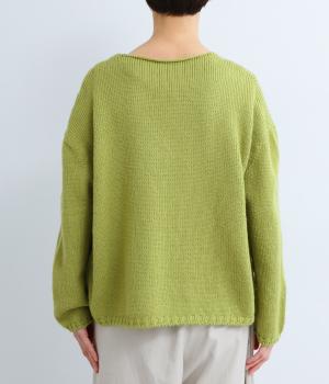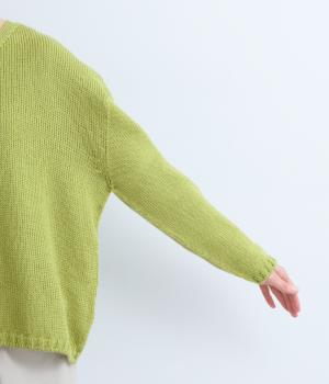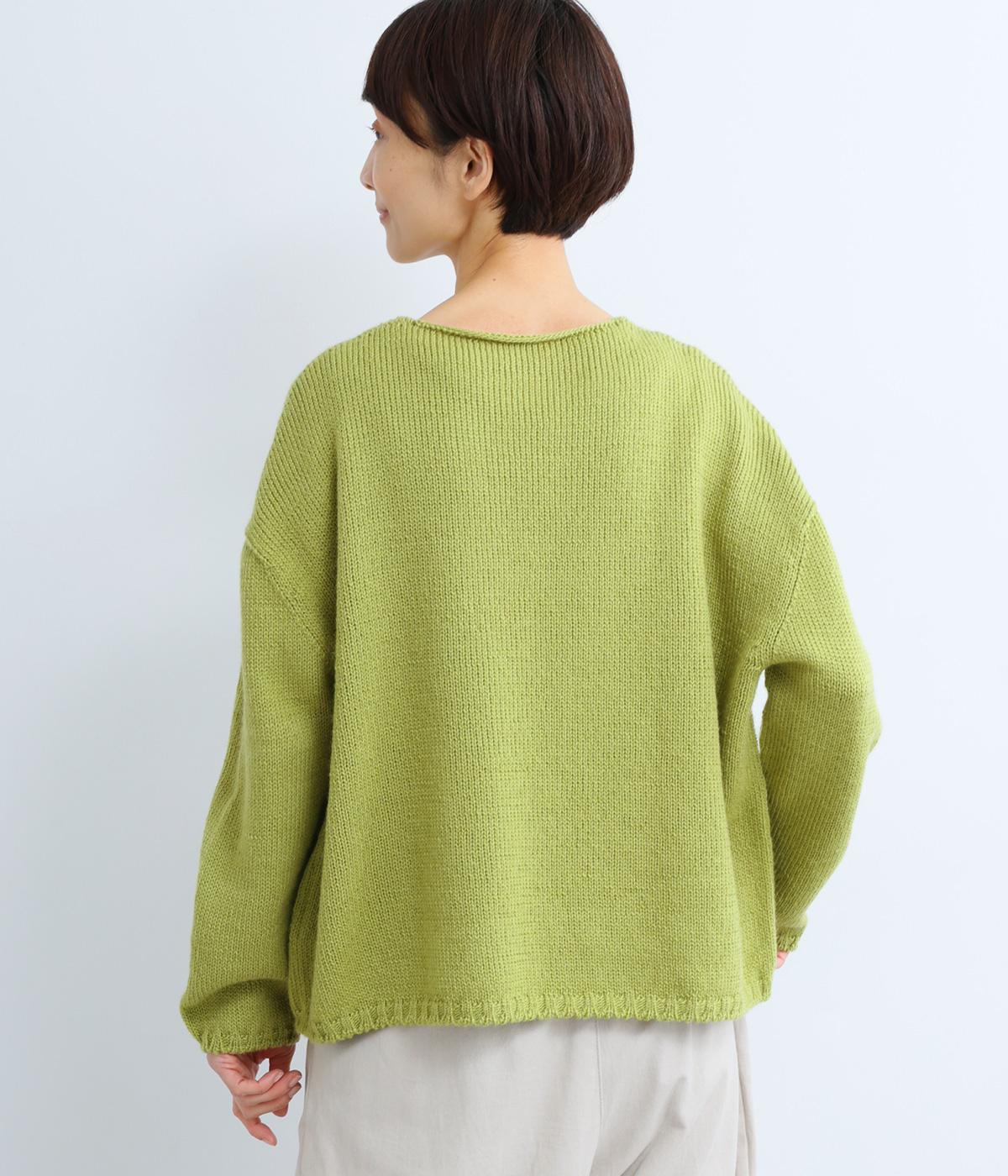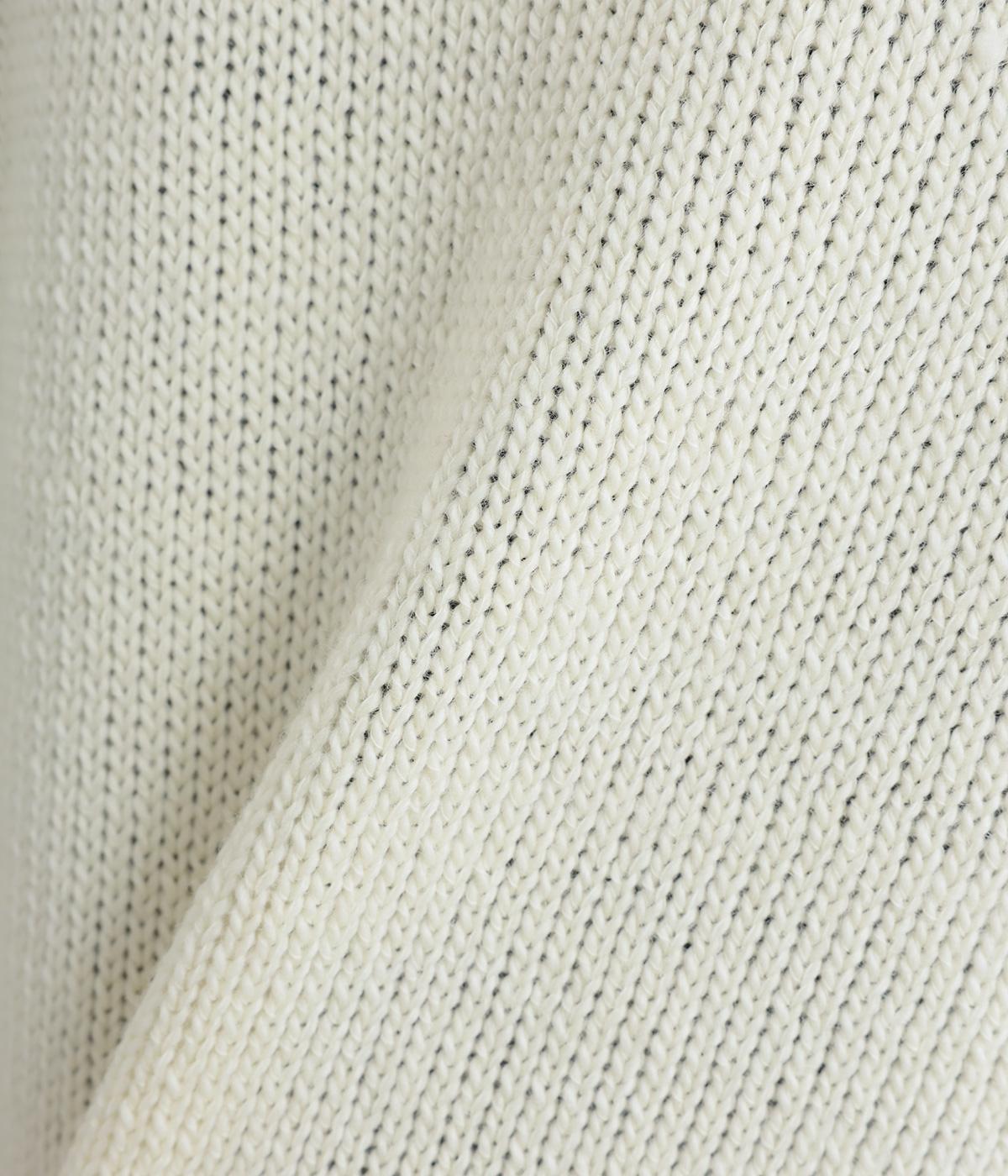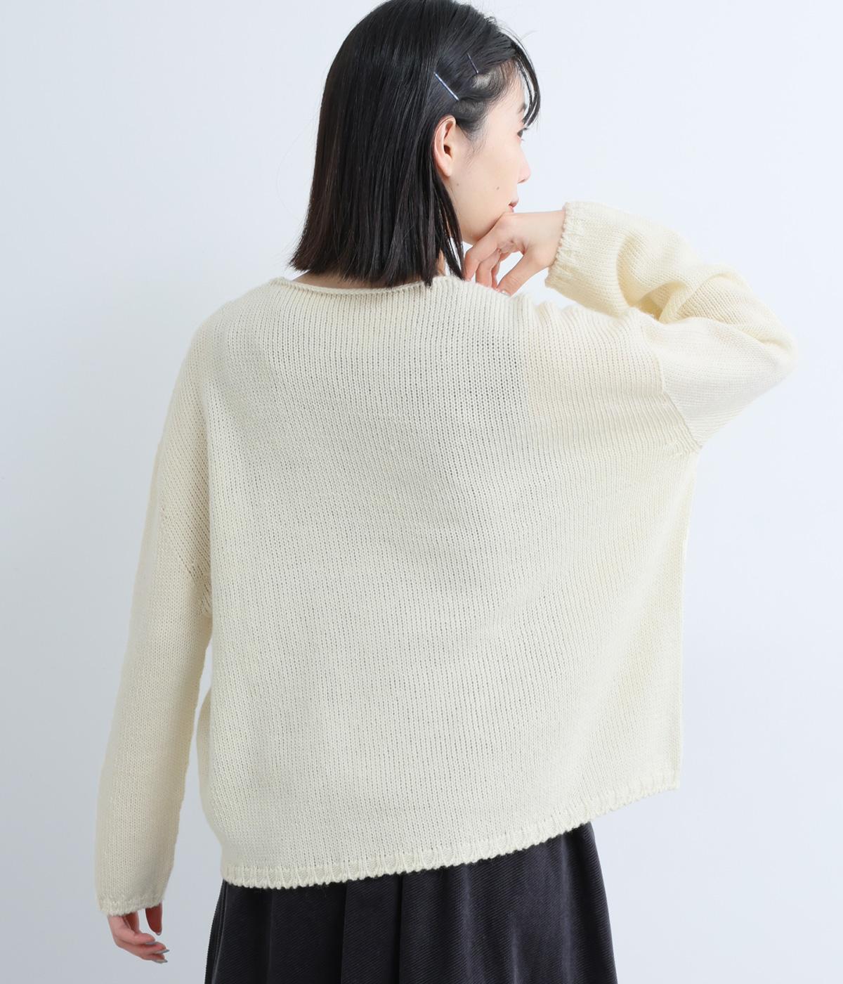 甘く撚ったロービングウールをざっくり編み上げ、ふわりと空気をふくんだような軽やかな生地に仕上げました。やわらかな風合いで、肌に触れたときの心地よさも魅力。伸縮性があり、フィット感もばつぐんです。