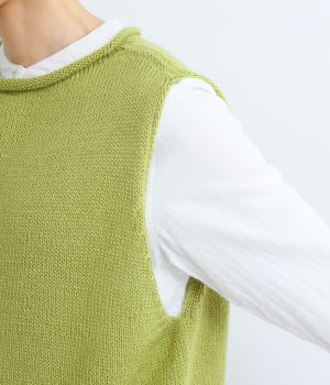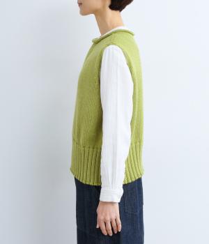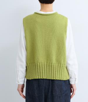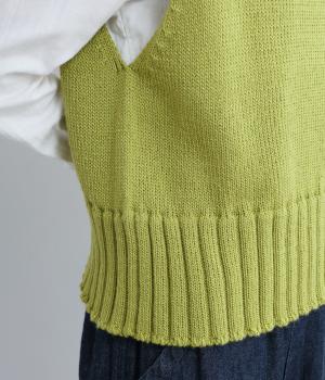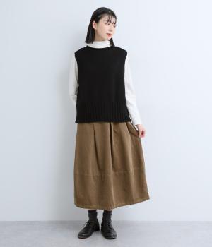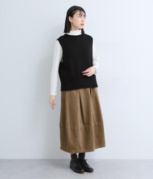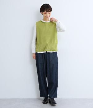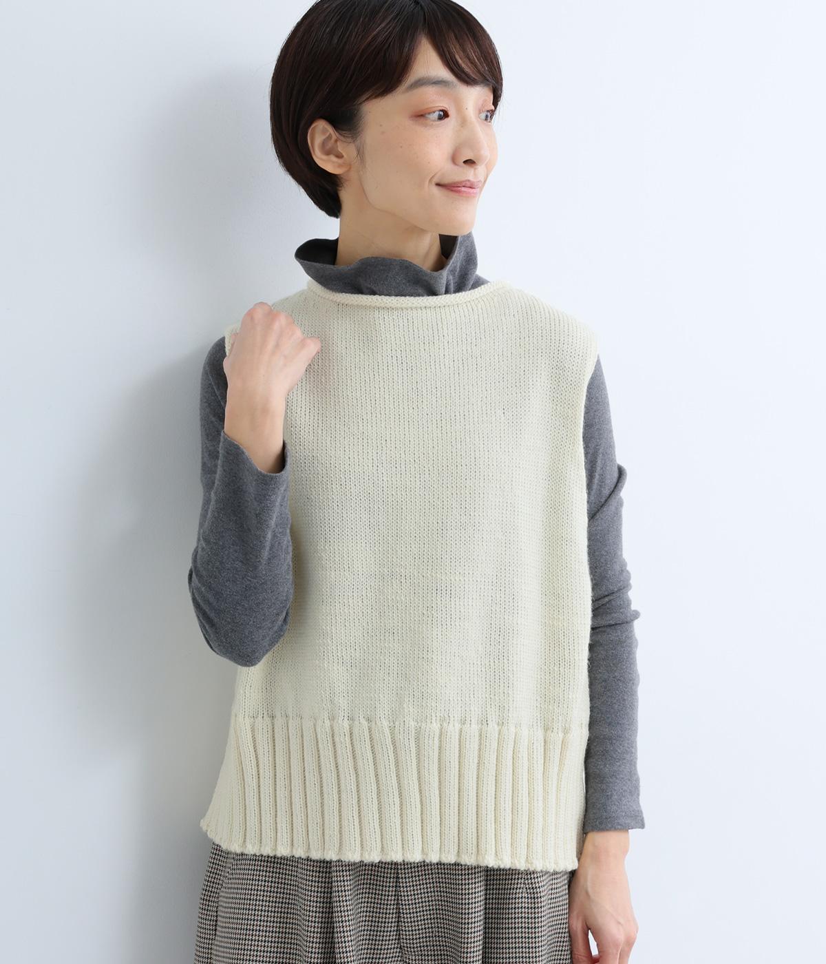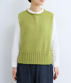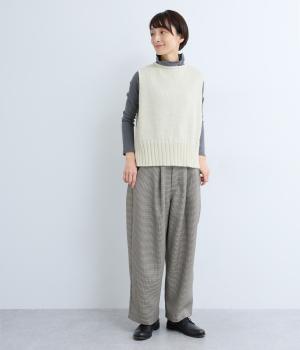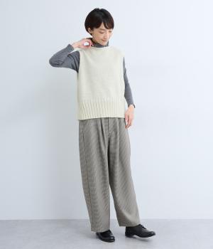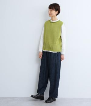 甘く撚ったロービングウールをざっくり編み上げ、ふわりと空気をふくんだような軽やかな生地に仕上げました。やわらかな風合いで、肌に触れたときの心地よさも魅力。伸縮性があり、フィット感もばつぐんです。