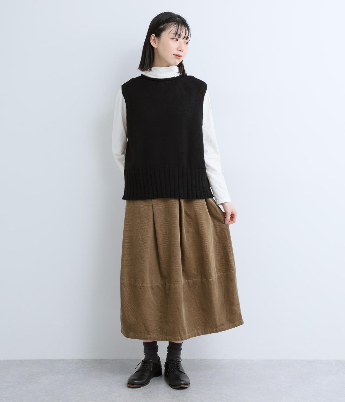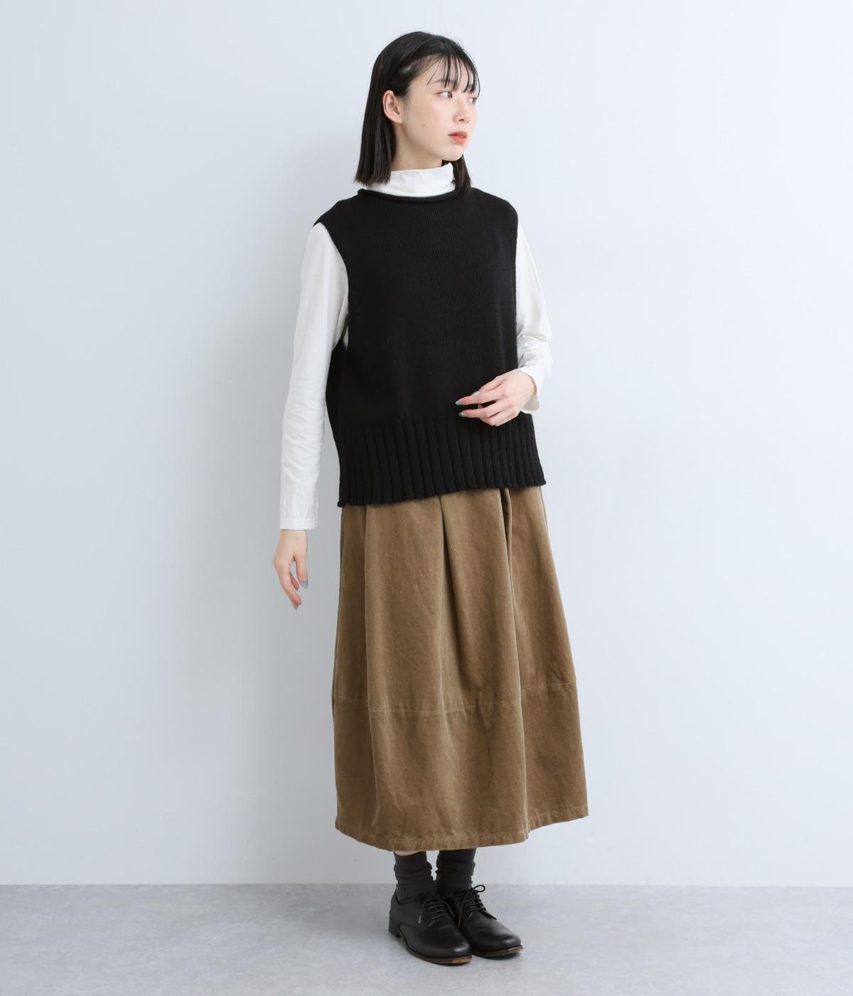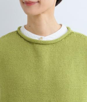 無駄のないすっきりとしたシルエットのなかに、太めの裾リブがさりげないアクセントを添えます。首元はほどよく詰まったクルーネックで仕立て、くるんと丸まった生地が、ナチュラルさと上品さをプラスします。広めのアームホールで重ね着もしやすく、使い勝手のよい一枚です。