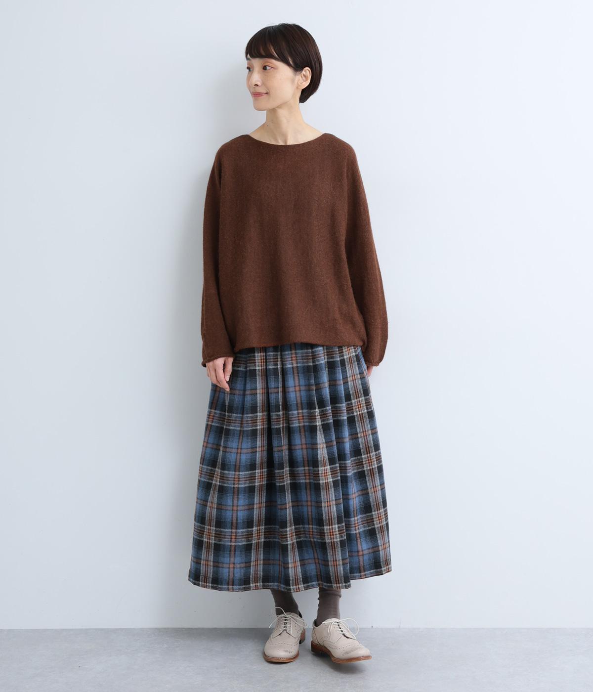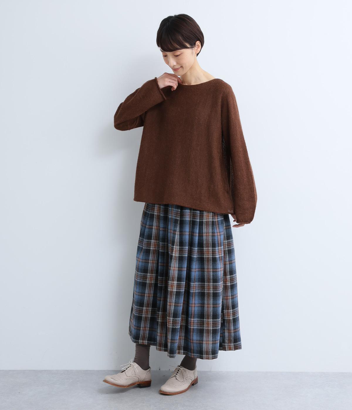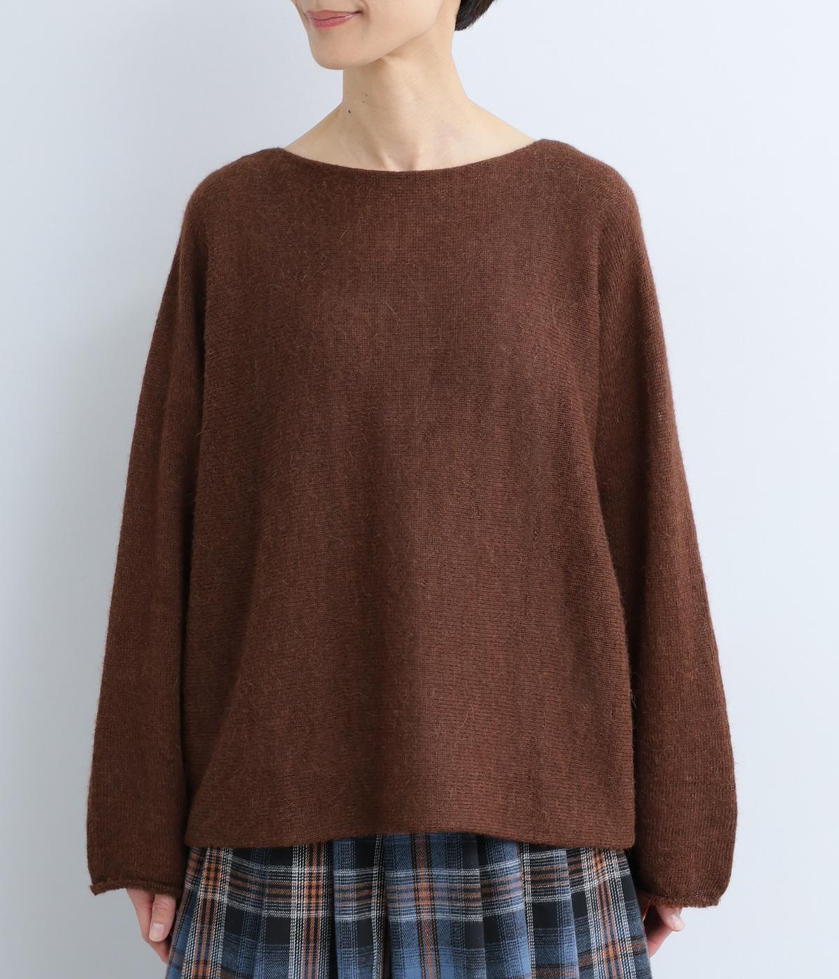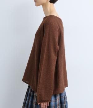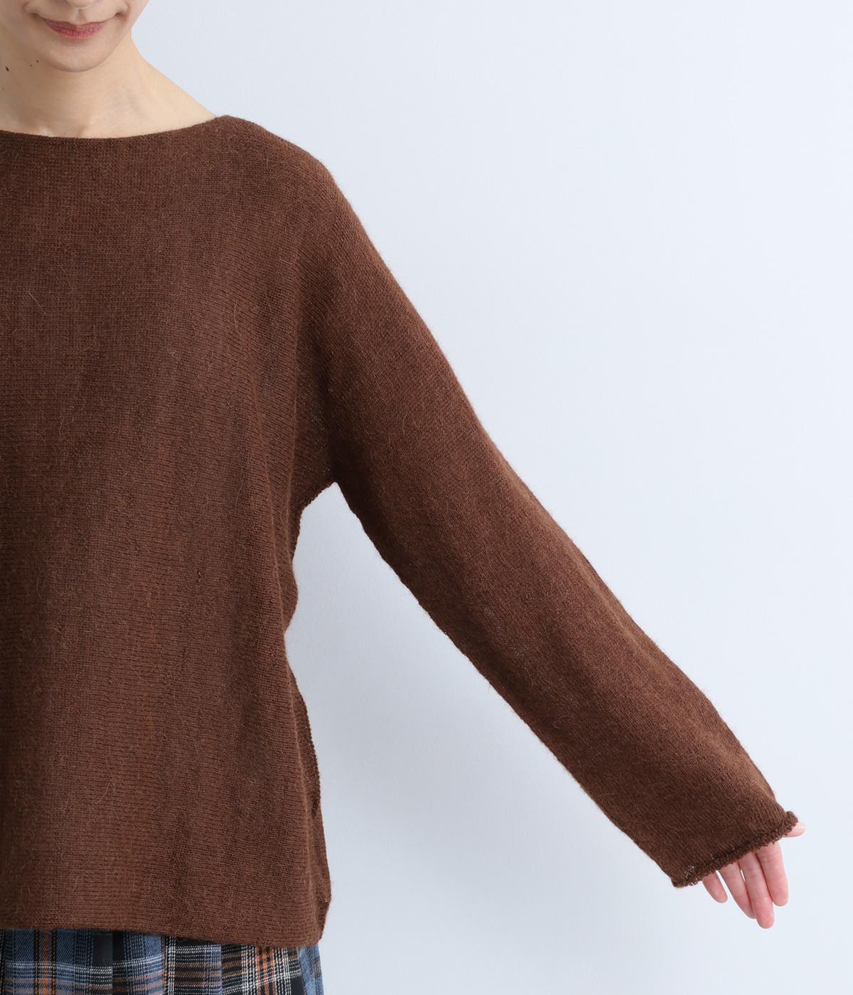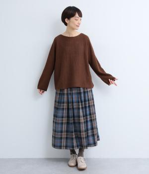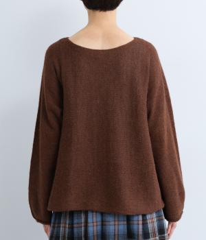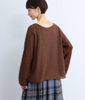 シンプルなシルエットに、横網ならではのやわらかな落ち感を活かしたプルオーバーです。どこから見てもフラットに見える編み地が上品な印象を添え、袖のカールがかわいらしいアクセントになります。体のラインを拾いにくい、ゆったりとしたシルエットもうれしいポイント。