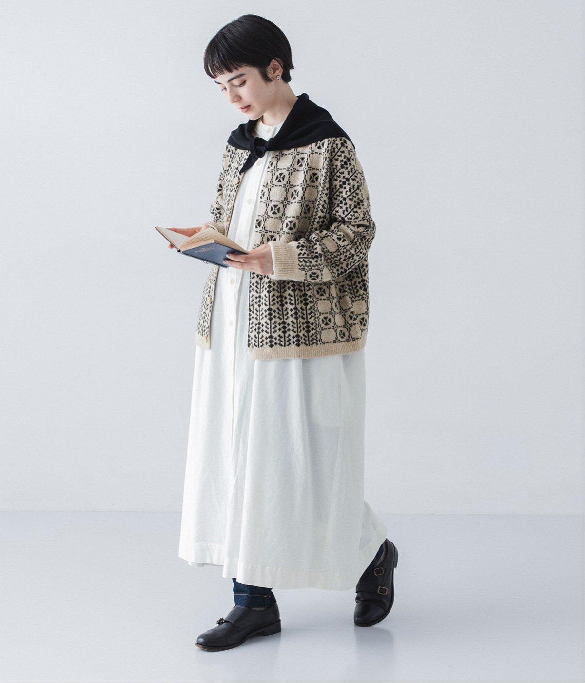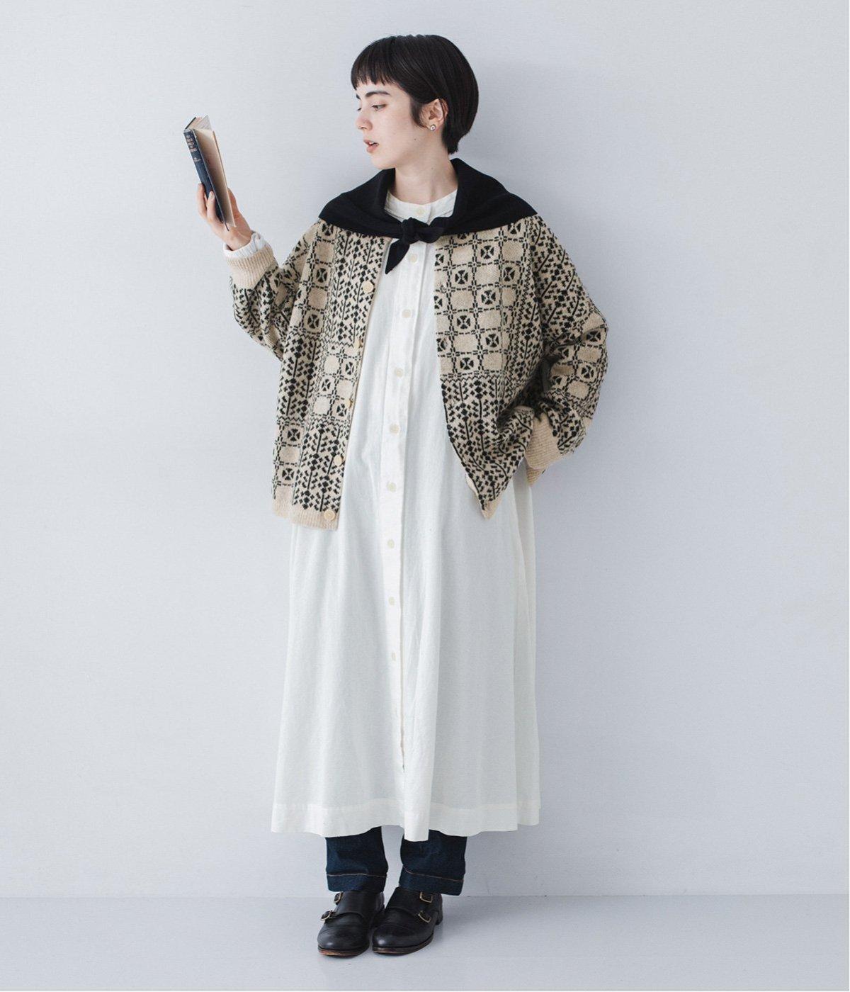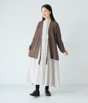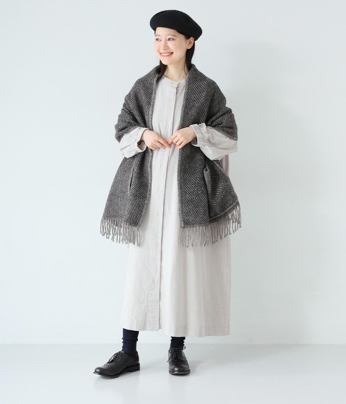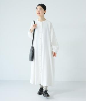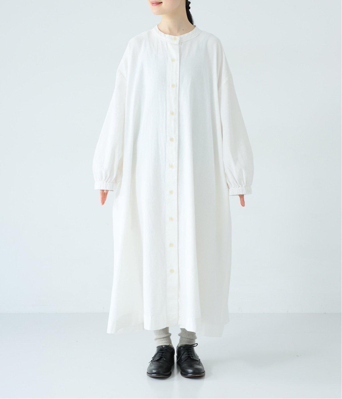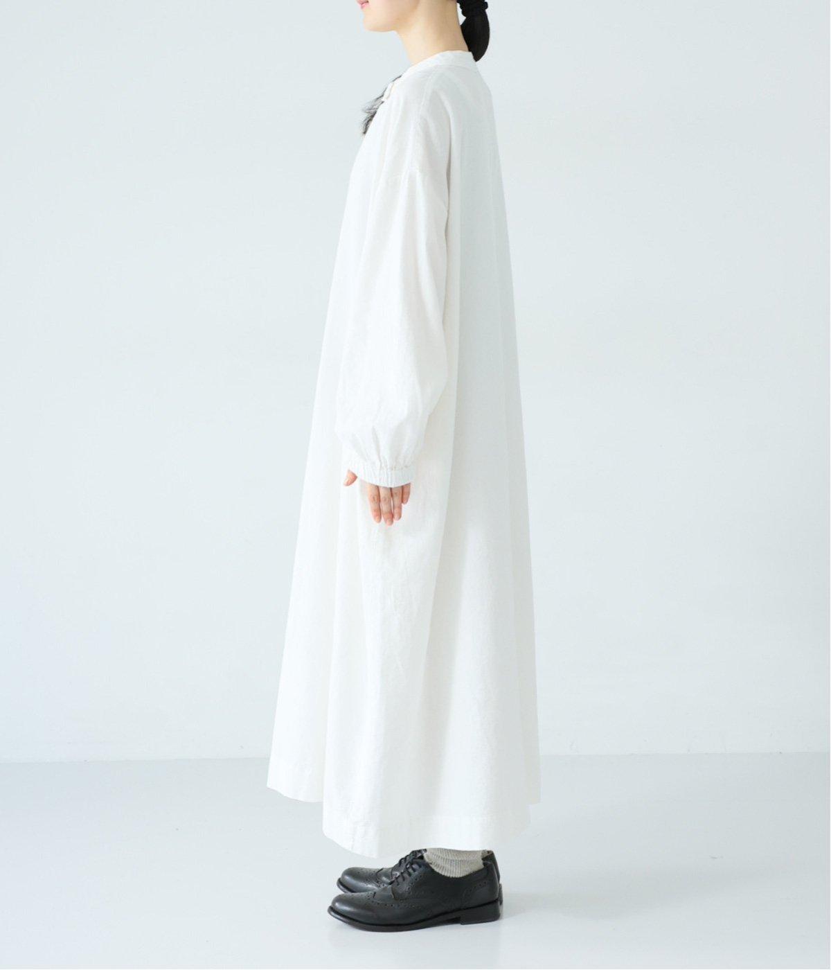 体がゆったりと泳ぐAラインシルエットのワンピース。ふくらみのあるギャザー袖が女性らしい柔らかな印象を醸します。袖口にはゴムを入れているので、袖をたくし上げても落ちてきにくいのが◎。両サイドには便利なポケットをつけました。