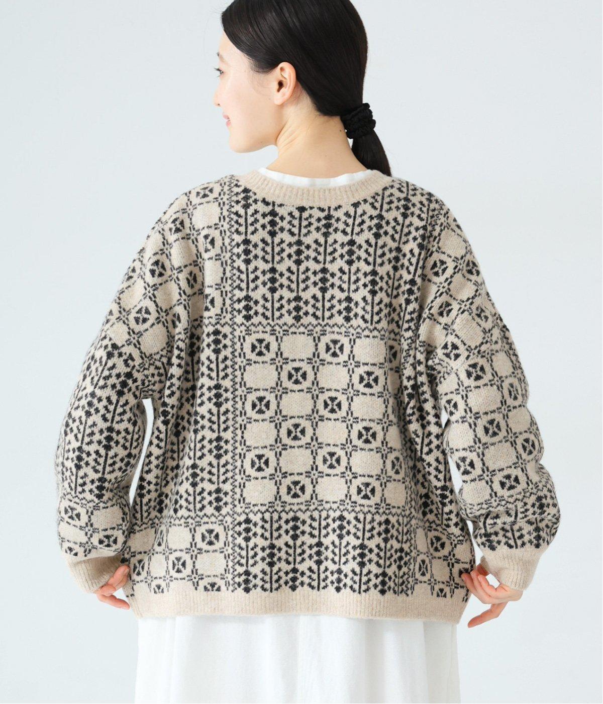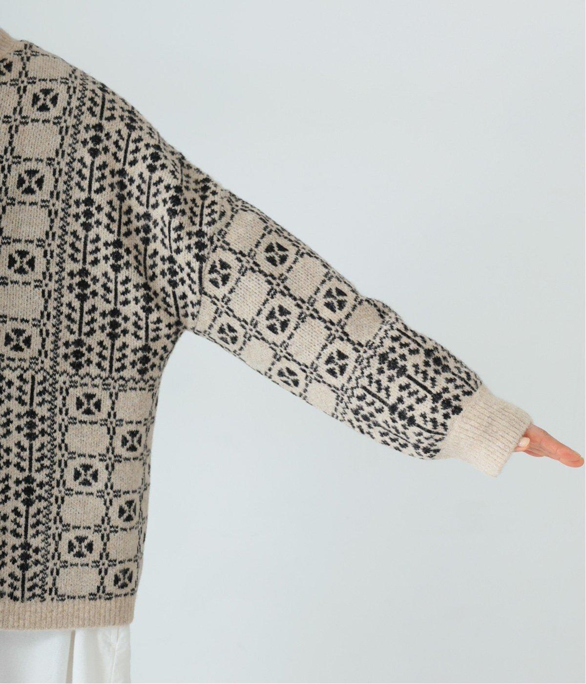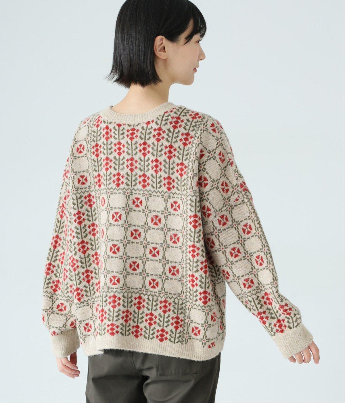 どこか懐かしさをまとった北欧タッチの総柄が、心を弾ませます。いつもの着こなしに加えるだけで、冬の装いをとっておきの印象に仕上げてくれる一着です。