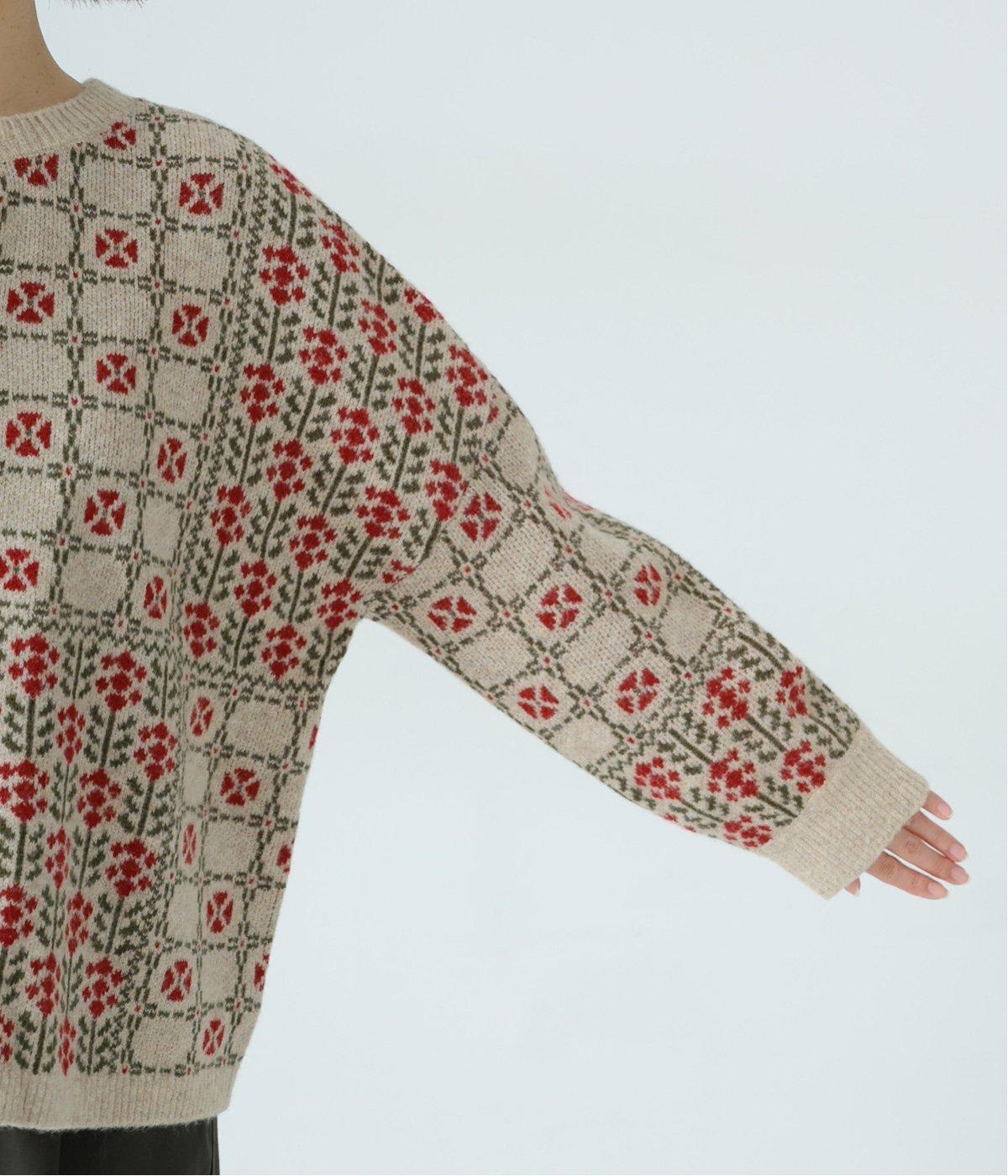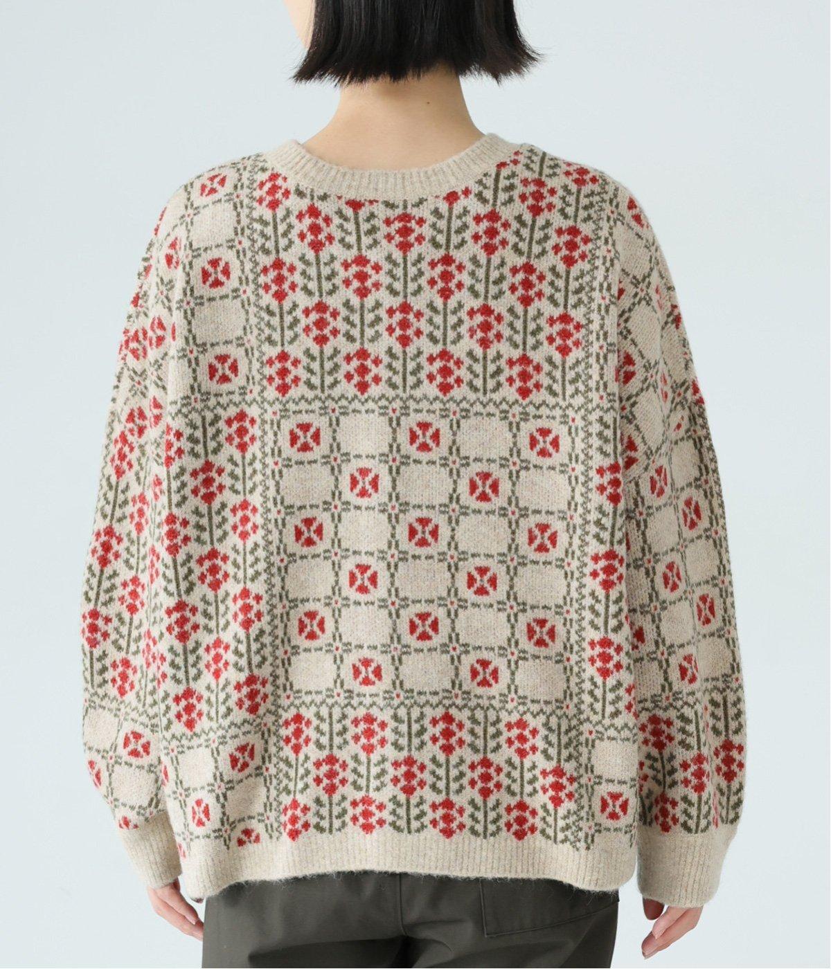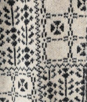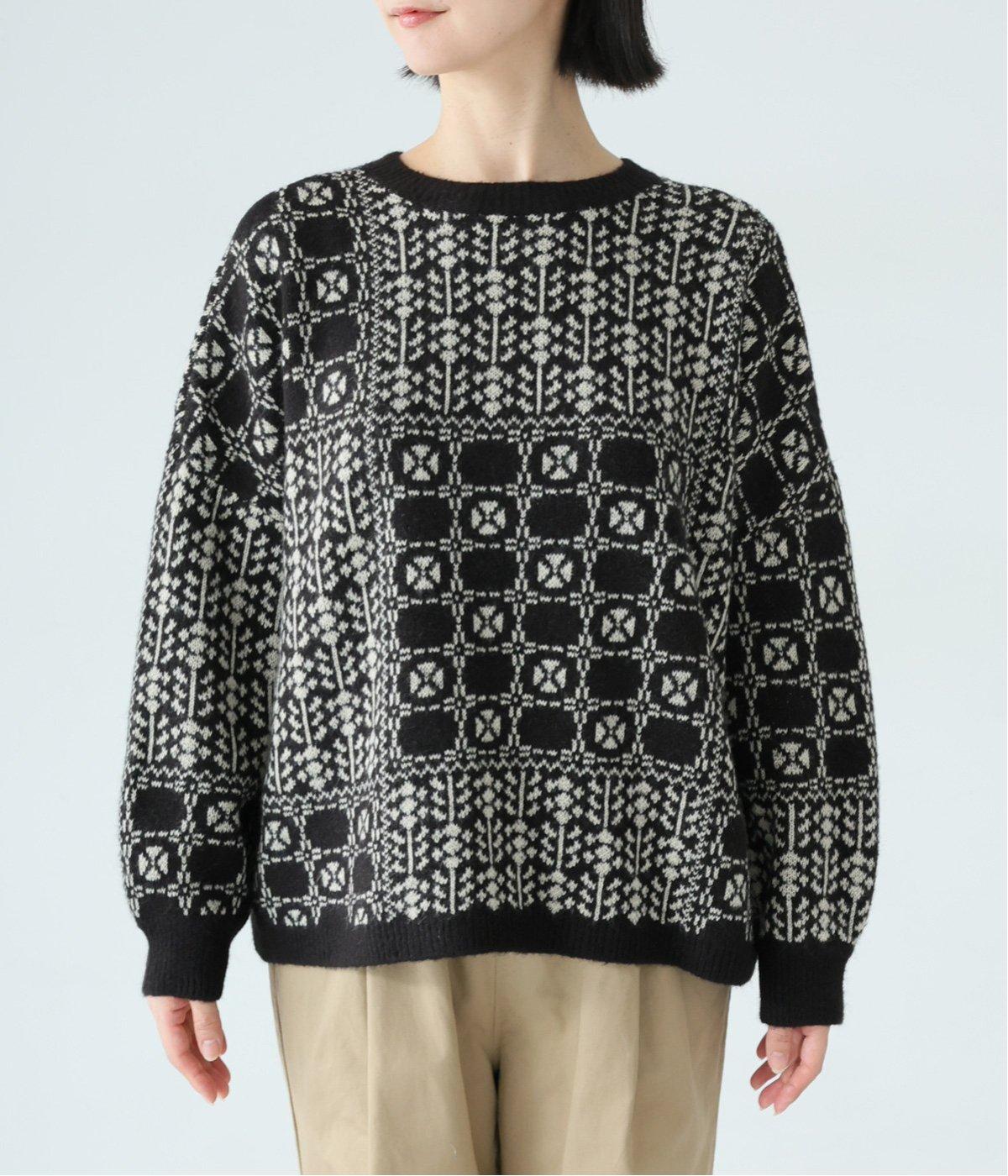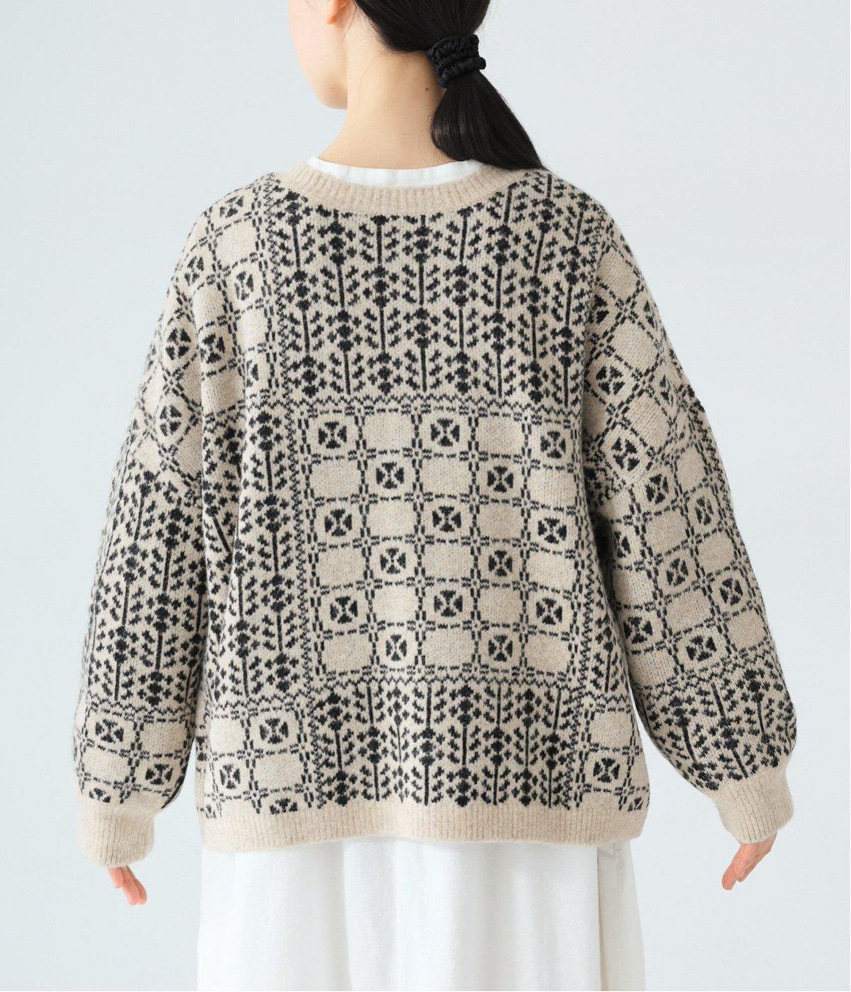 どこか懐かしさをまとった北欧タッチの総柄が、心を弾ませます。いつもの着こなしに加えるだけで、冬の装いをとっておきの印象に仕上げてくれる一着です。