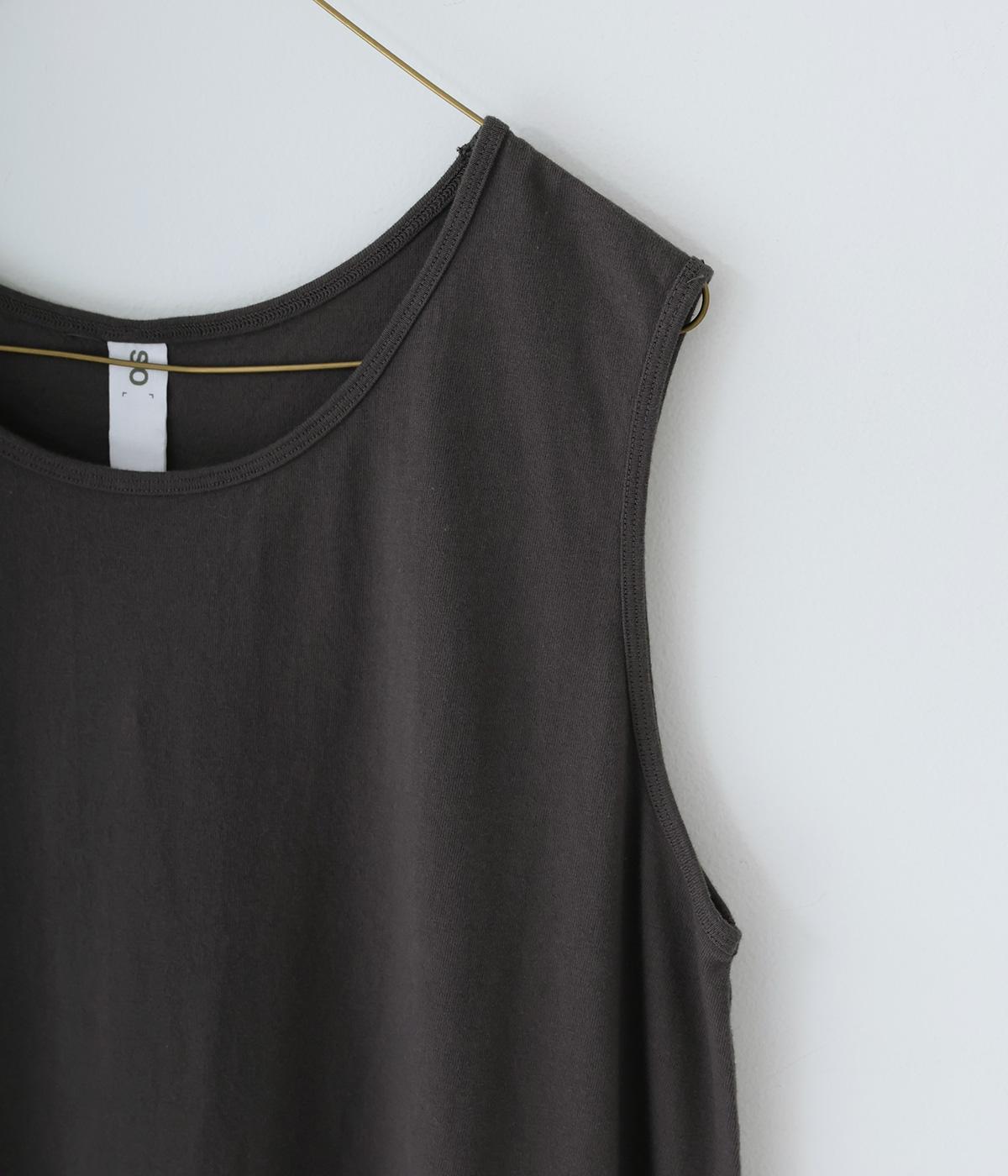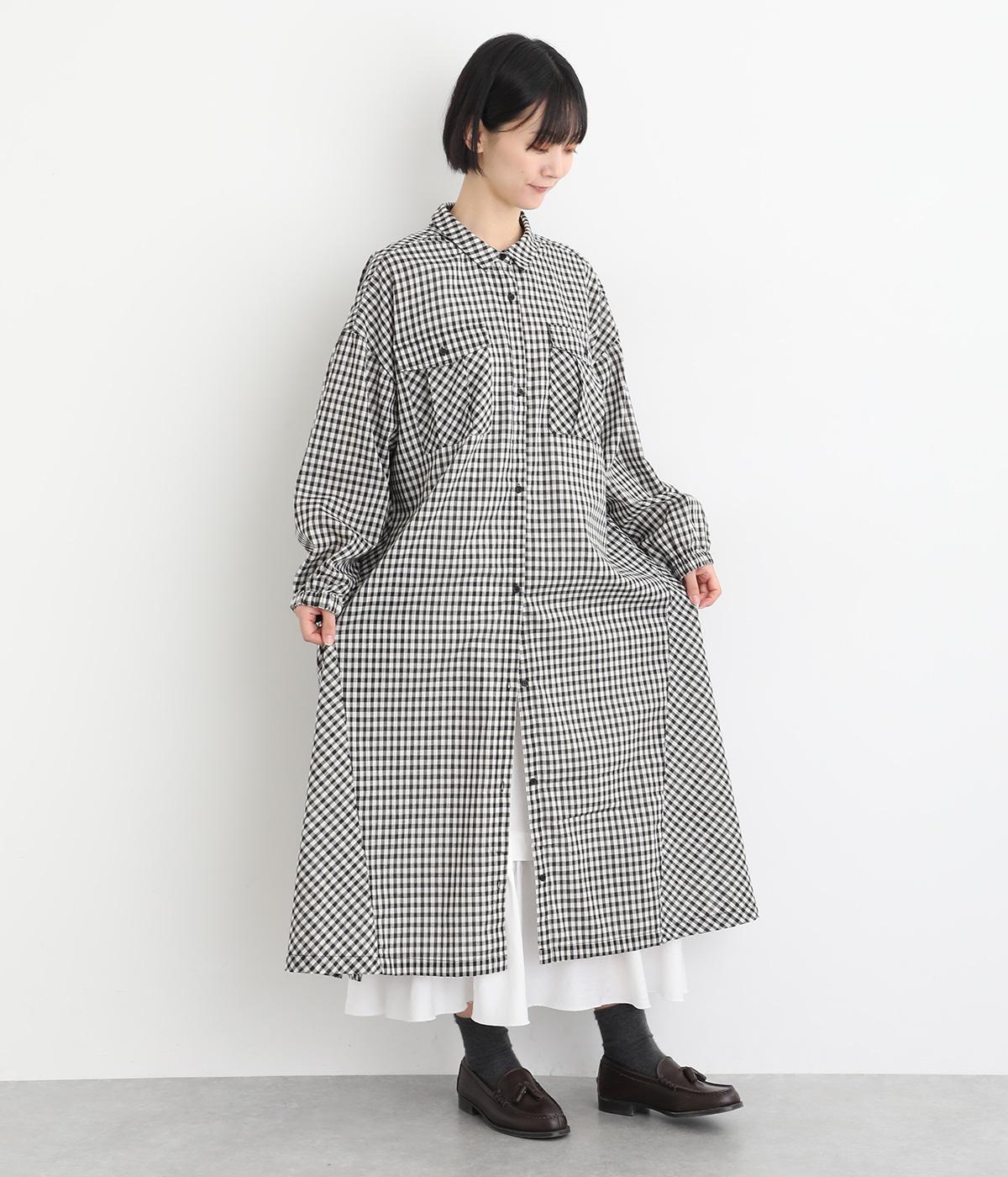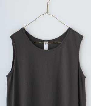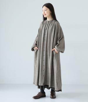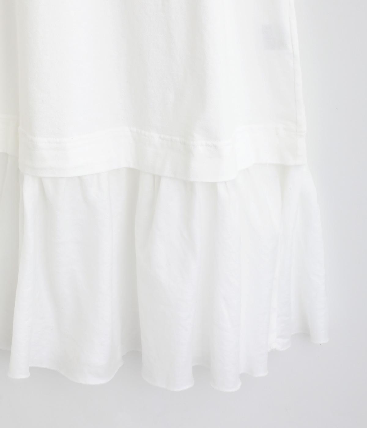 製品染めの風合いや素材ごとの色差が活きるよう、シンプルな形のワンピースに大ぶりなフリルをあしらいました。Tシャツや羽織りと合わせたメイン使いはもちろん、インナーワンピースとして裾のフリルをのぞかせた着まわしも◎。