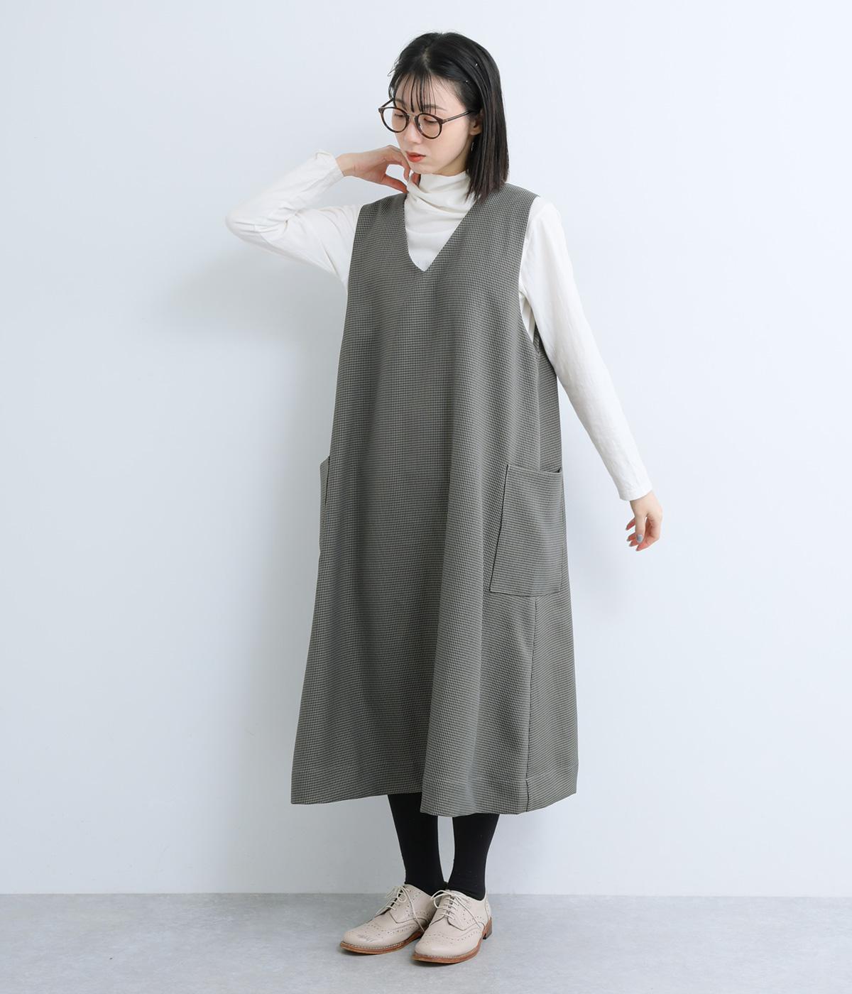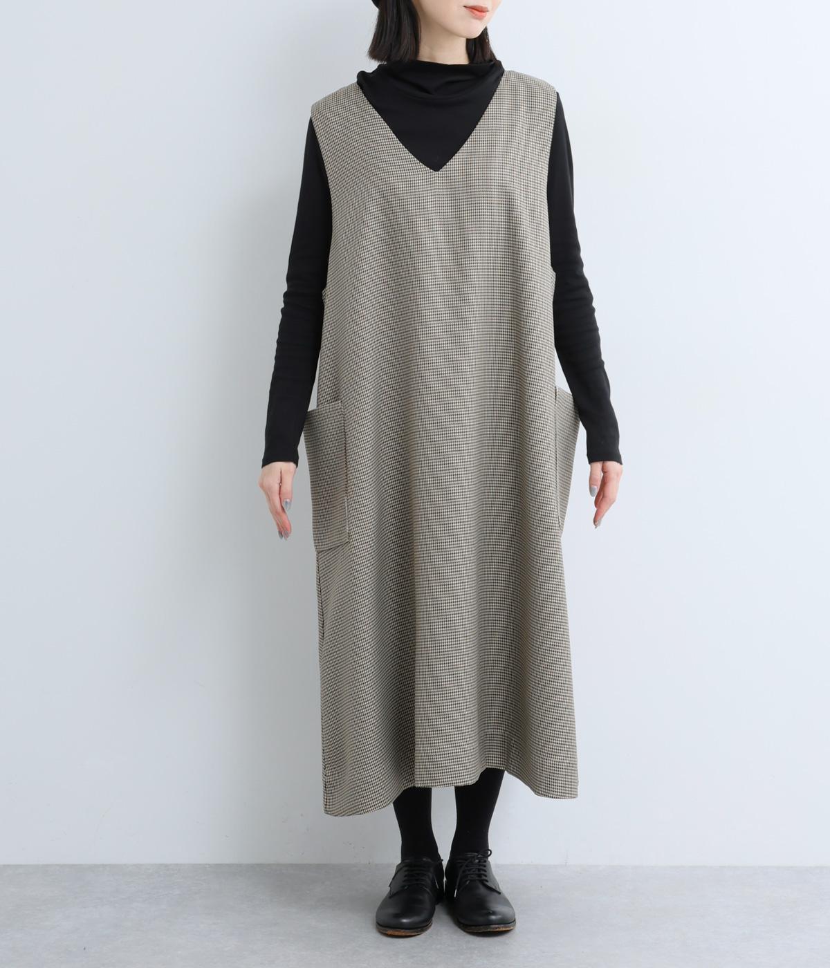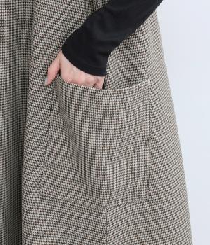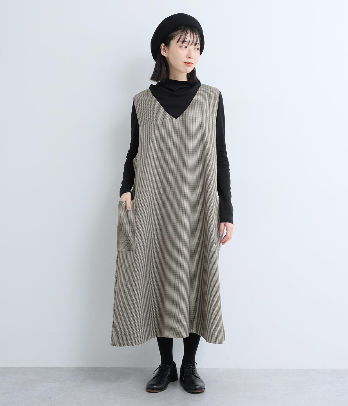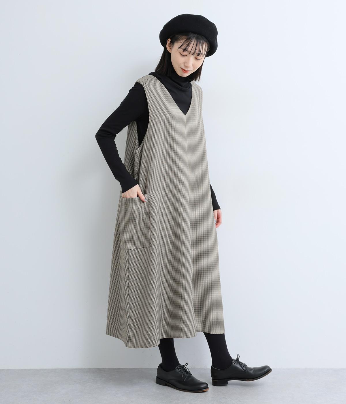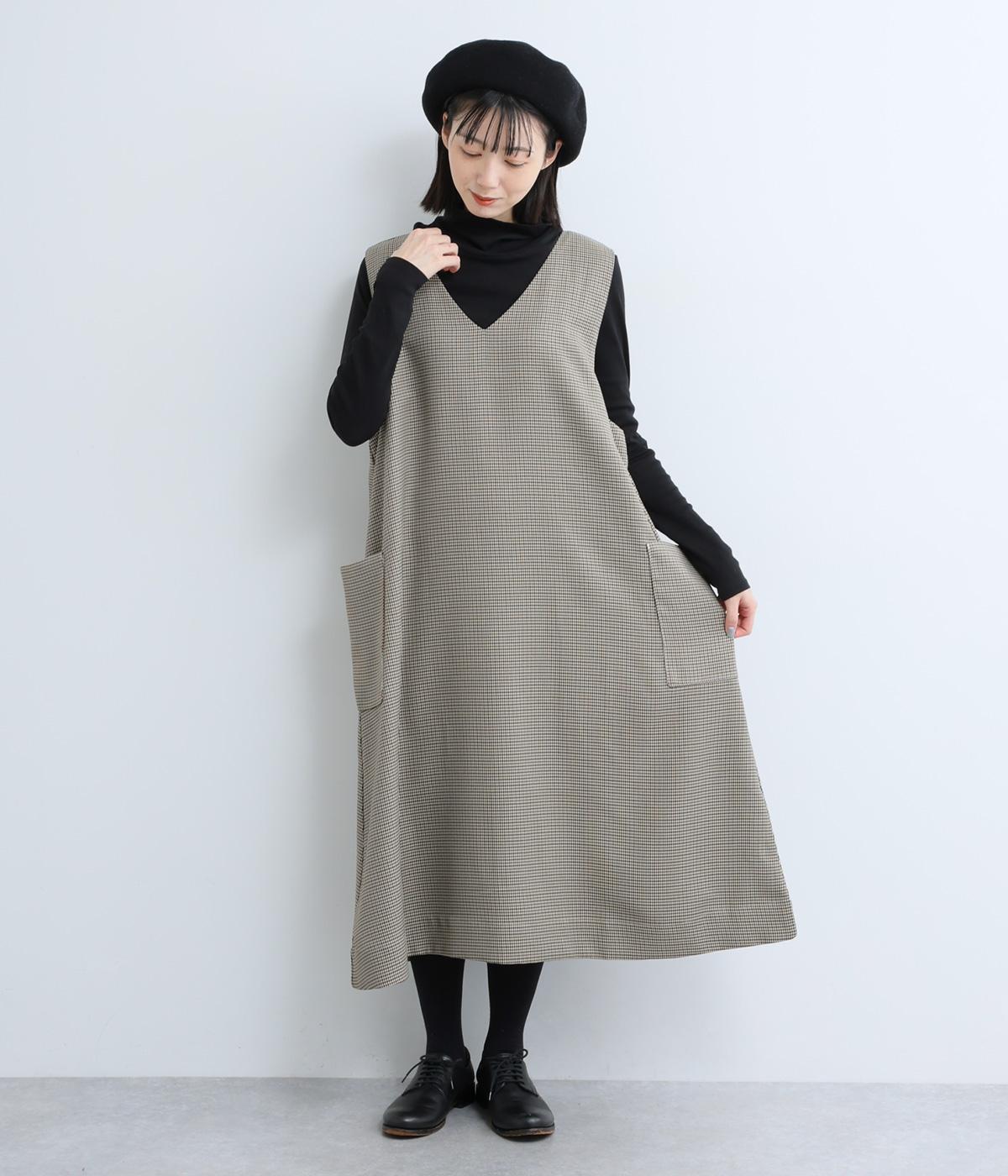 クラシカルな千鳥格子柄が、上品な雰囲気をつくるAラインワンピースです。ほどよく広がるシルエットが、体のラインをカバーしてくれます。深すぎないVネックでレイヤードのしやすさも◎。両サイドには大きめのポケットをあしらい、実用性とデザイン性を両立させました。