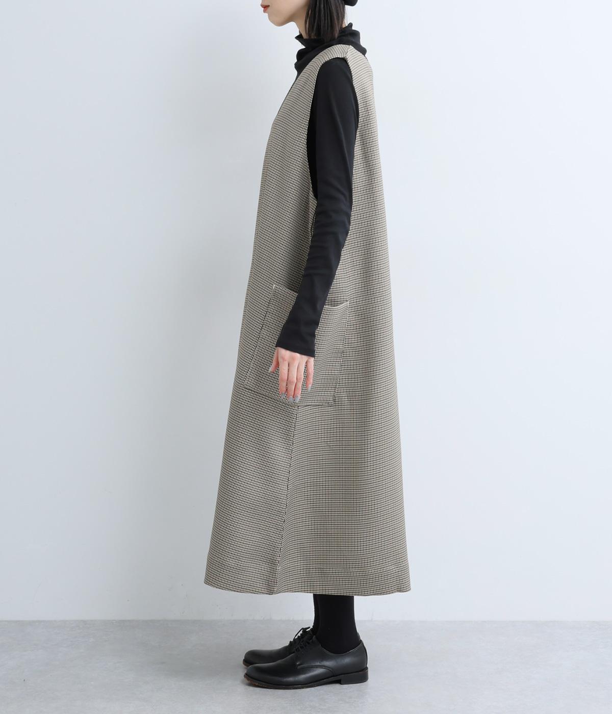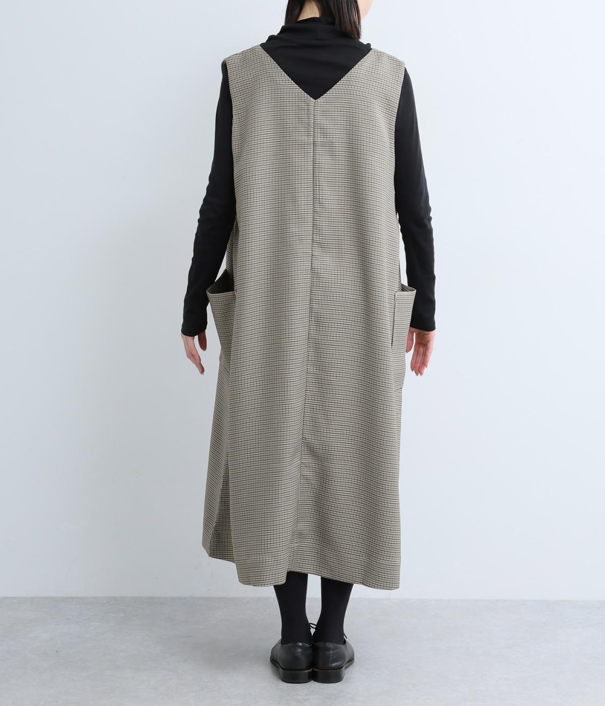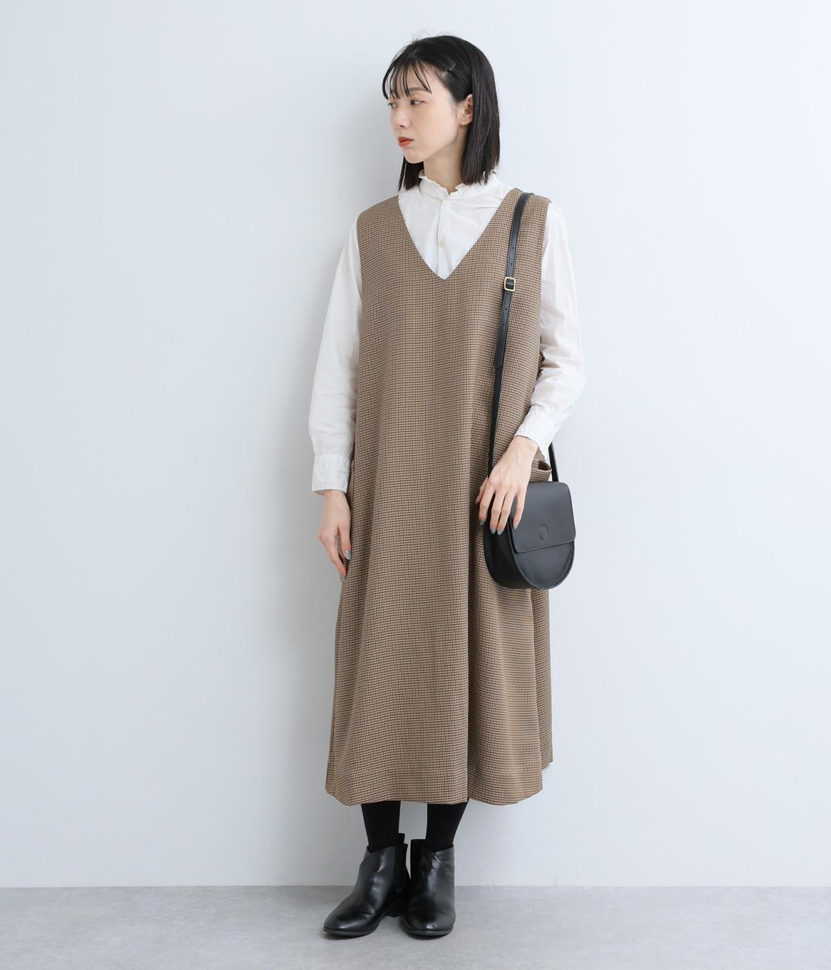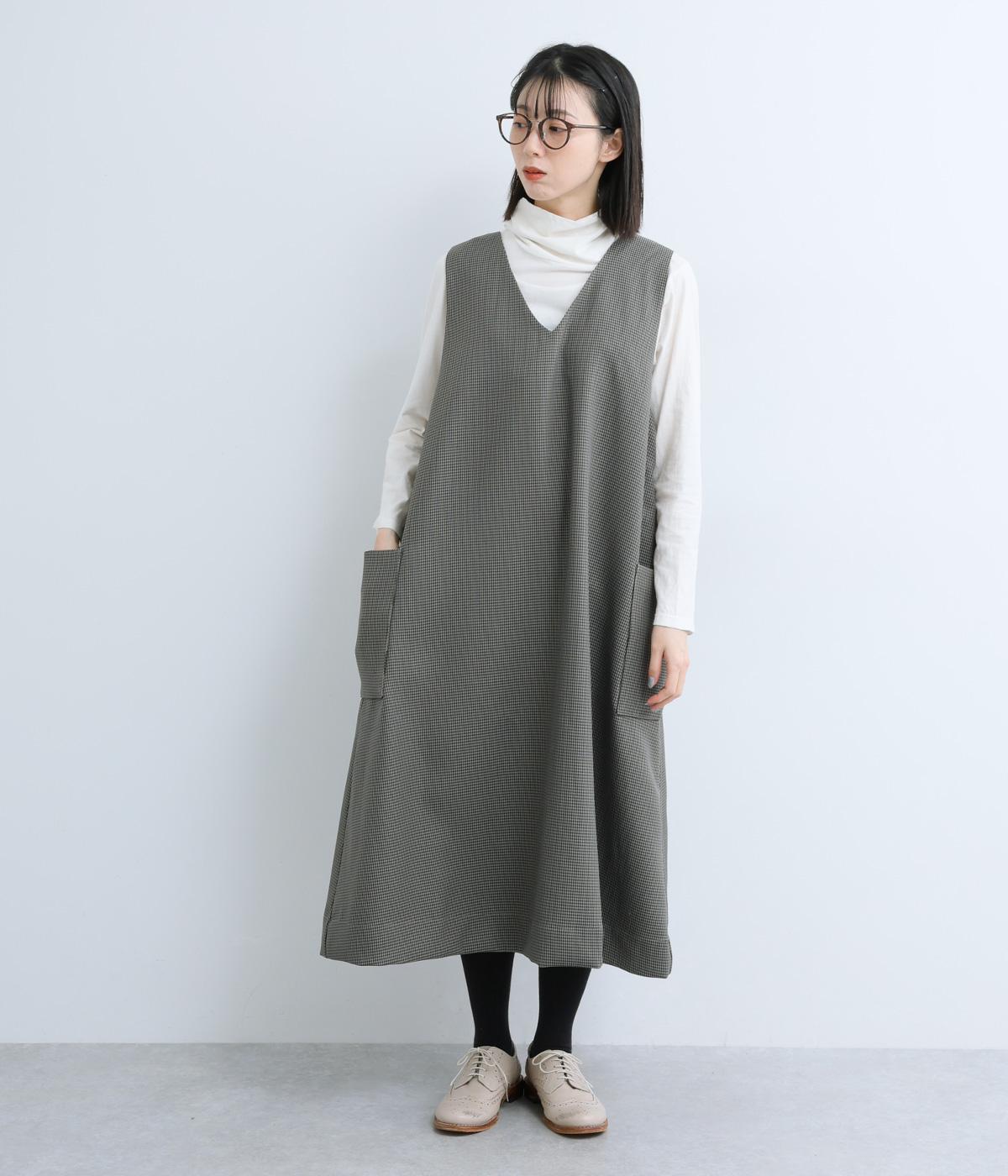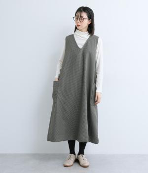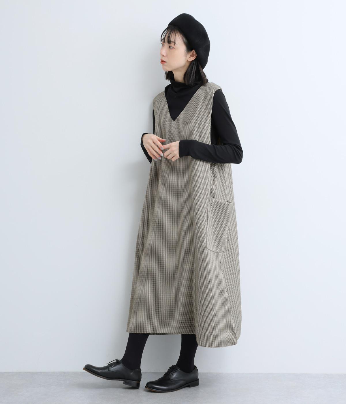 クラシカルな千鳥格子柄が、上品な雰囲気をつくるAラインワンピースです。ほどよく広がるシルエットが、体のラインをカバーしてくれます。深すぎないVネックでレイヤードのしやすさも◎。両サイドには大きめのポケットをあしらい、実用性とデザイン性を両立させました。