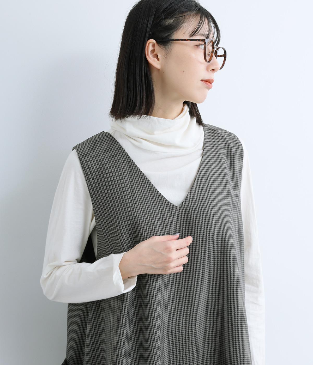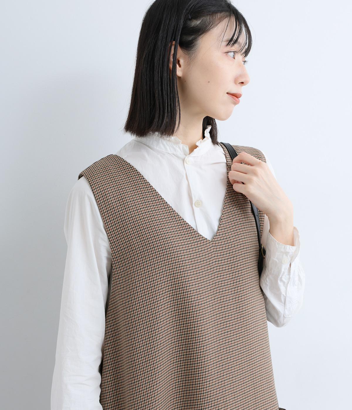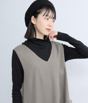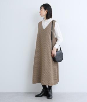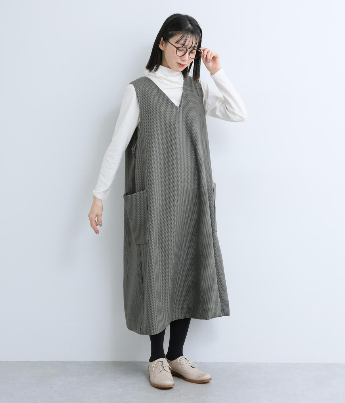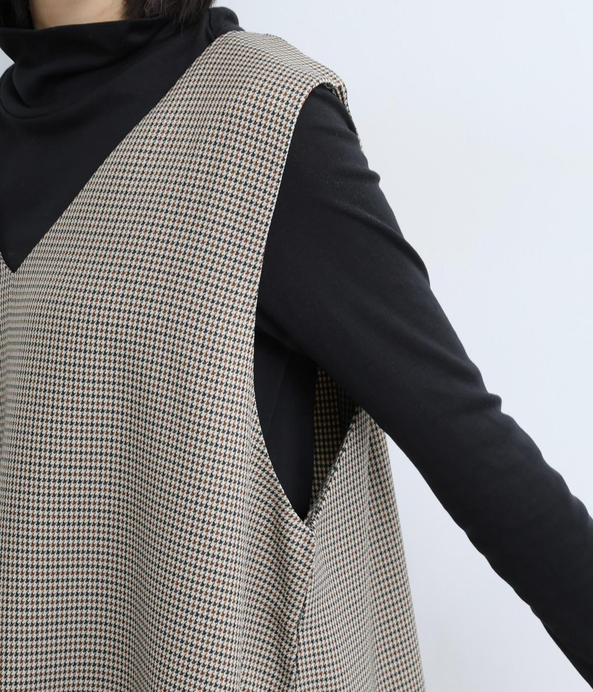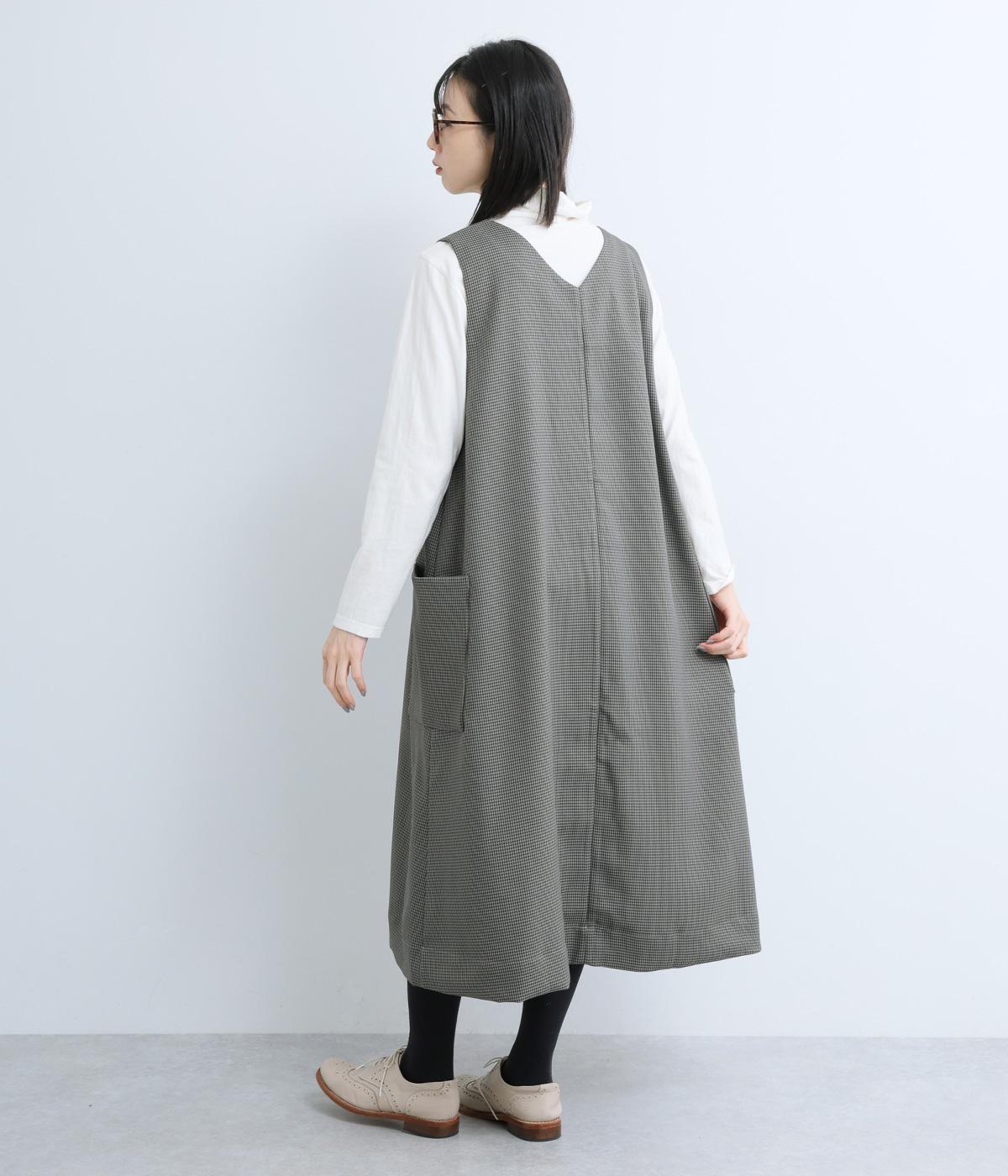 クラシカルな千鳥格子柄が、上品な雰囲気をつくるAラインワンピースです。ほどよく広がるシルエットが、体のラインをカバーしてくれます。深すぎないVネックでレイヤードのしやすさも◎。両サイドには大きめのポケットをあしらい、実用性とデザイン性を両立させました。