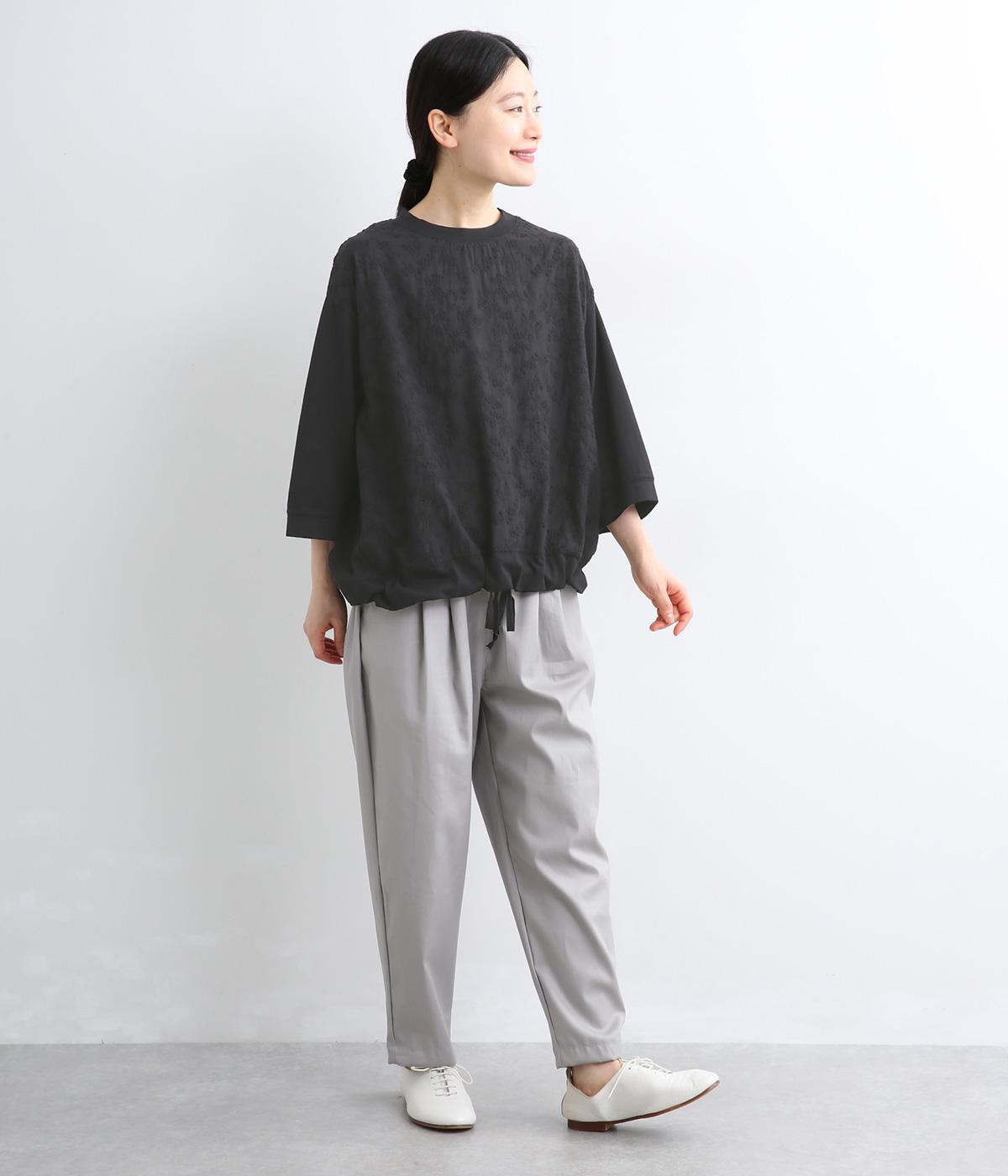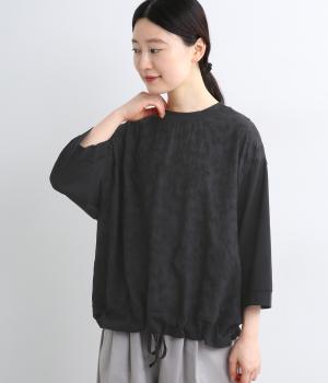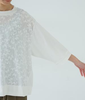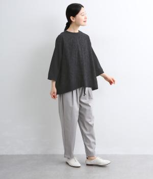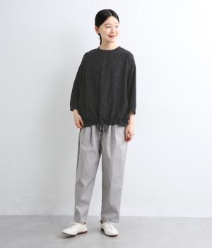 上品なレースが軽やかな雰囲気を運ぶプルオーバー。ほどよくゆとりのあるシルエットでやさしい印象に仕上げました。七分袖が手元を明るく見せ、抜け感をプラス。裾に配した紐をキュッと絞れば、フォルムの変化も楽しめます。