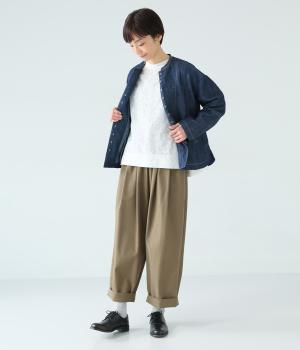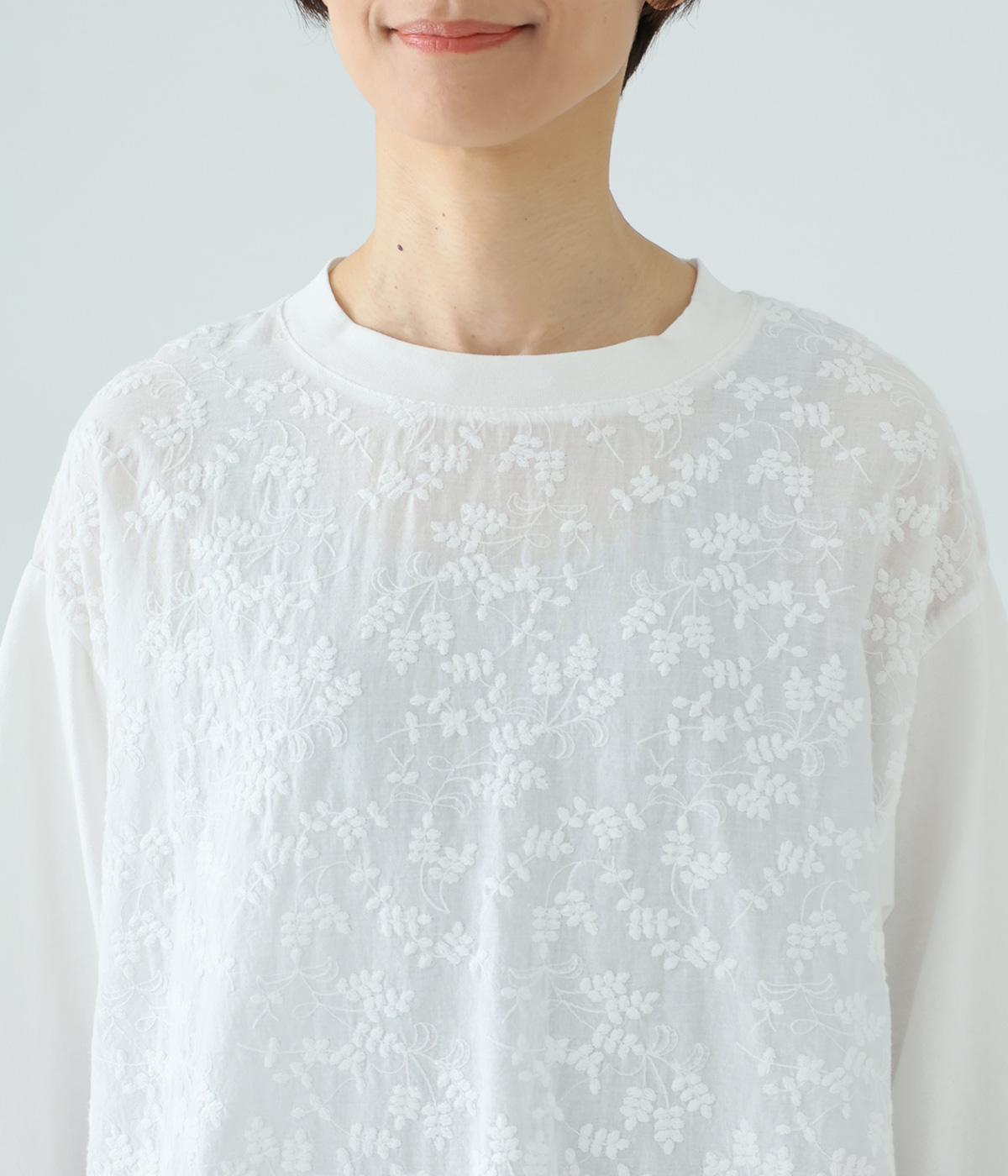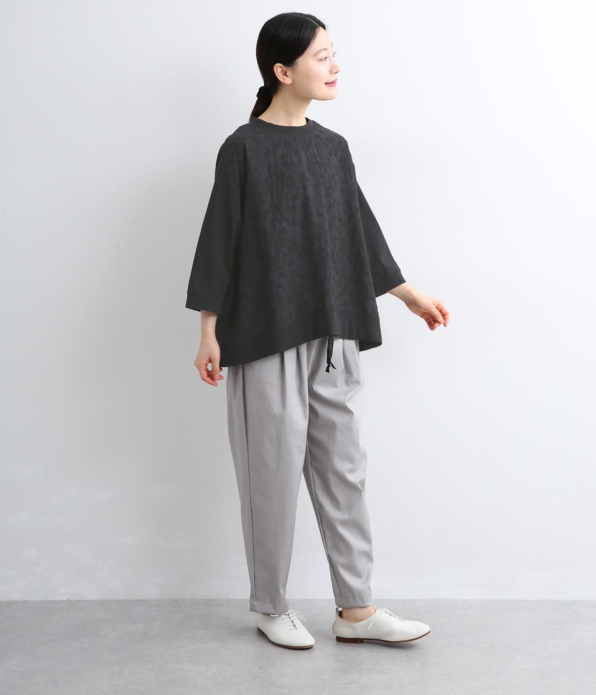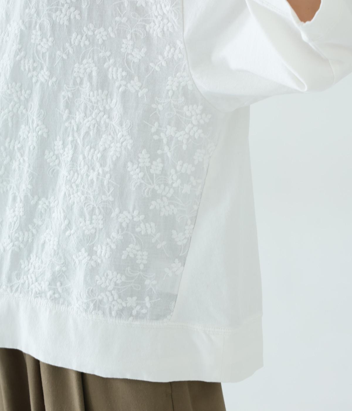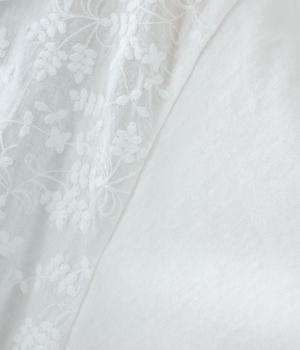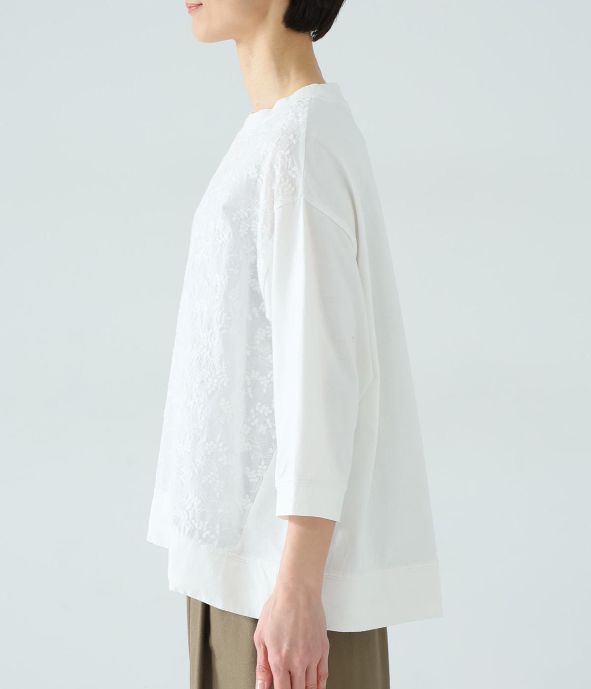 やわらかなコットン生地と繊細なレース柄を切り替えて軽やかな風合いに仕上げました。肌なじみがよく、ほどよい通気性で心地よく着られる、ナチュラルな素材感です。