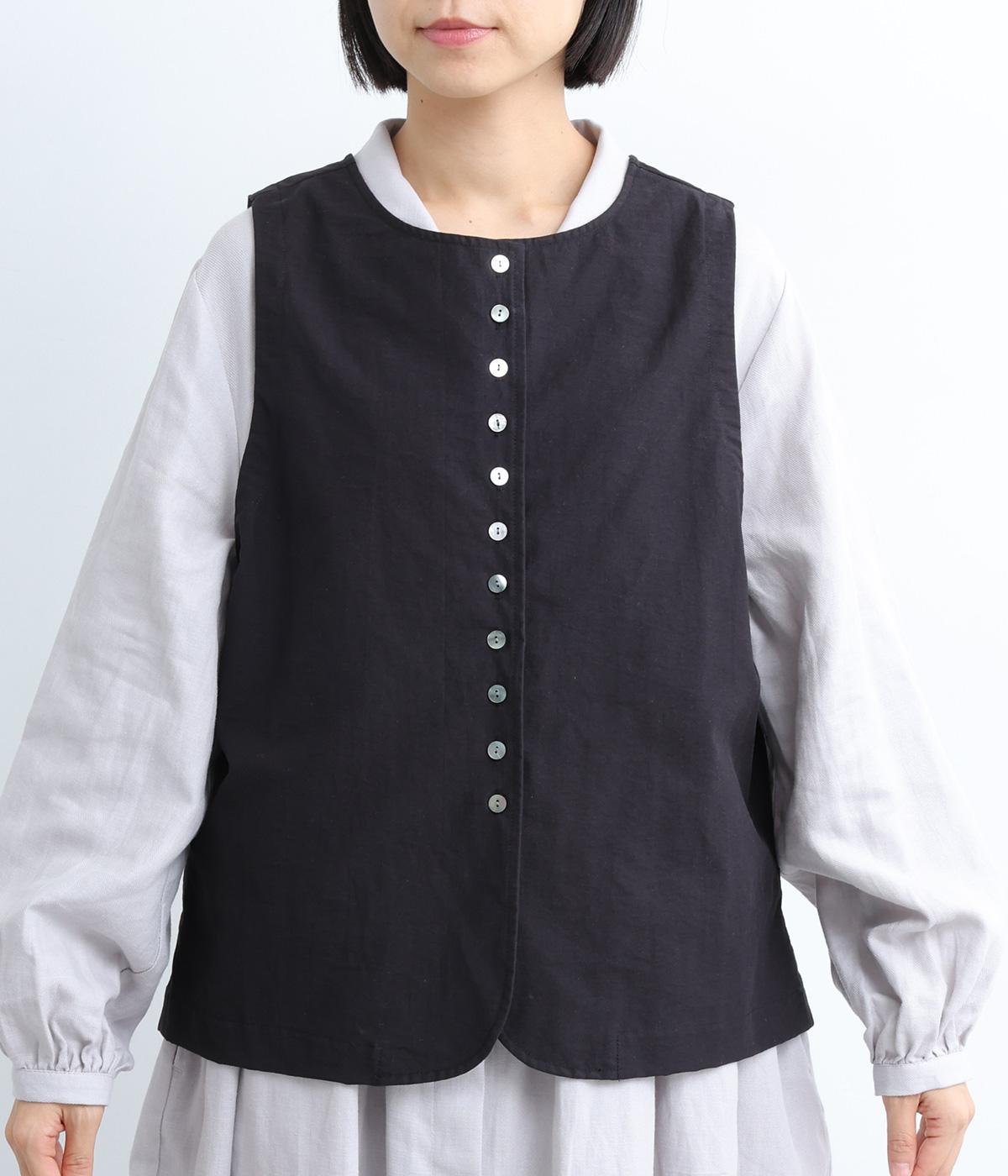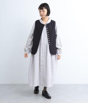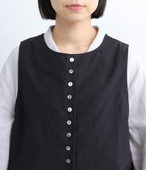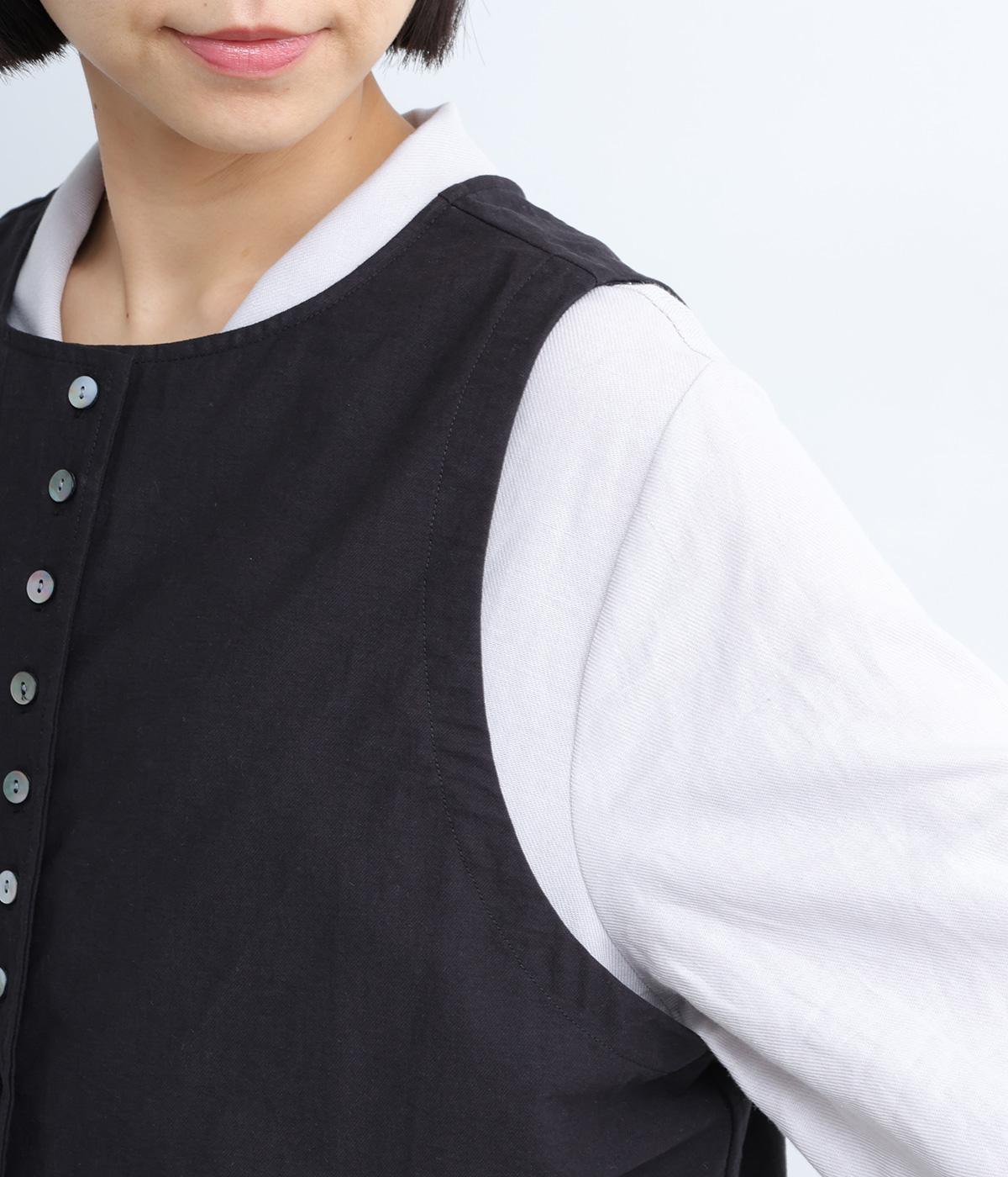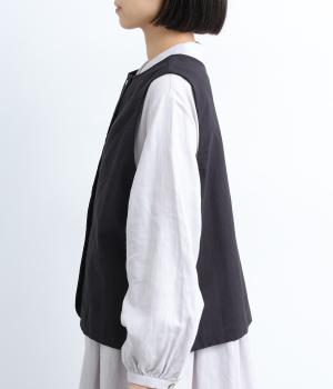 たくさん並んだ貝ボタンの前開きと、かわいらしいポケットがアクセントのプルオーバーの2way仕様のベストです。レイヤード次第でロングシーズン活躍し、いろいろな表情を楽しめるのも魅力のアイテムです。