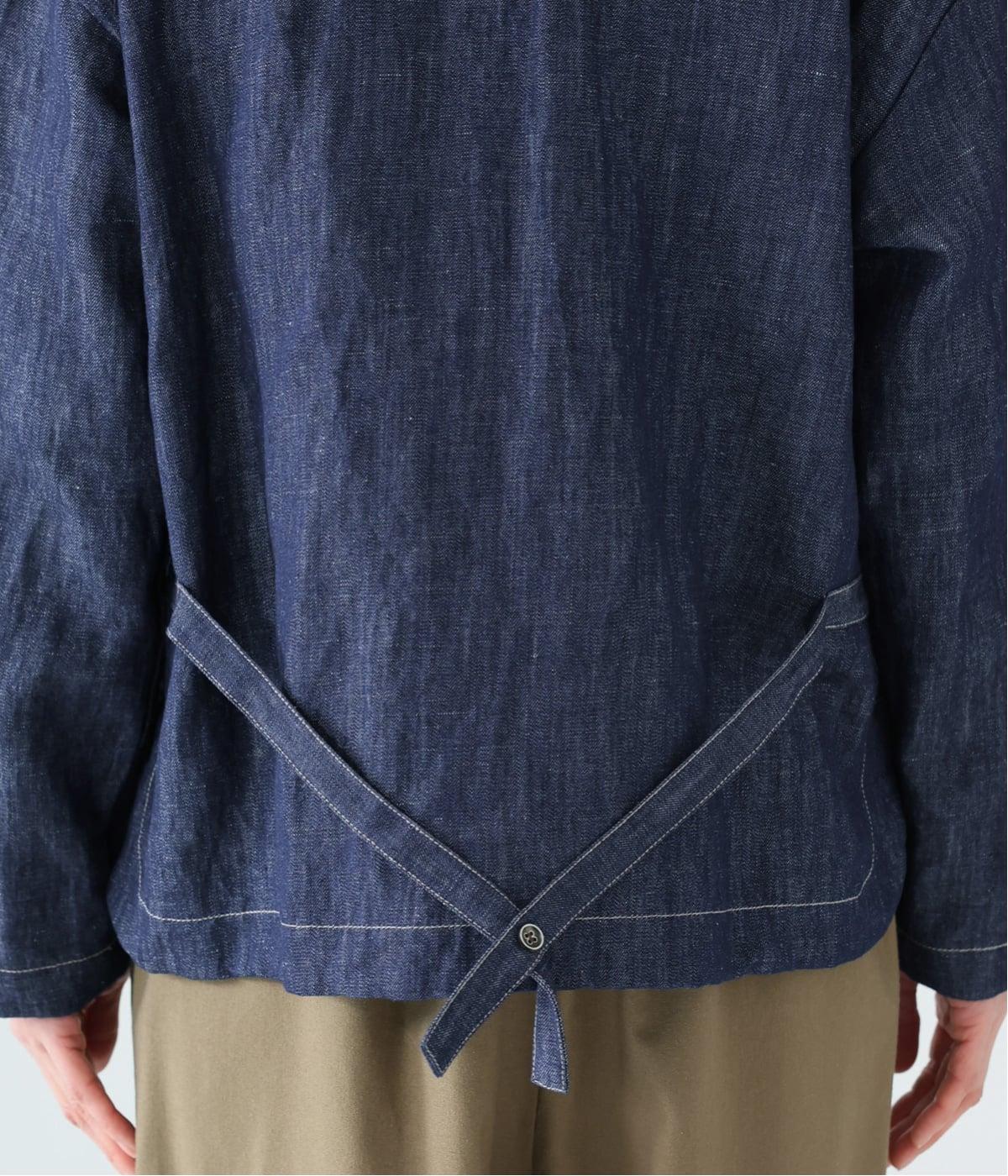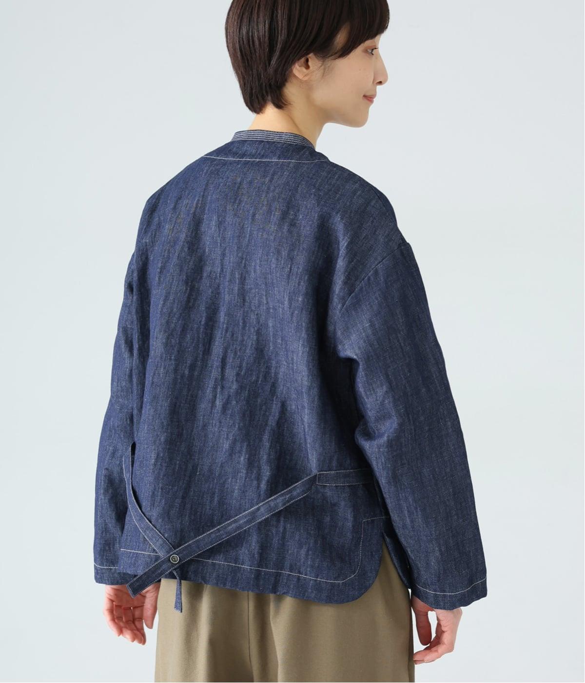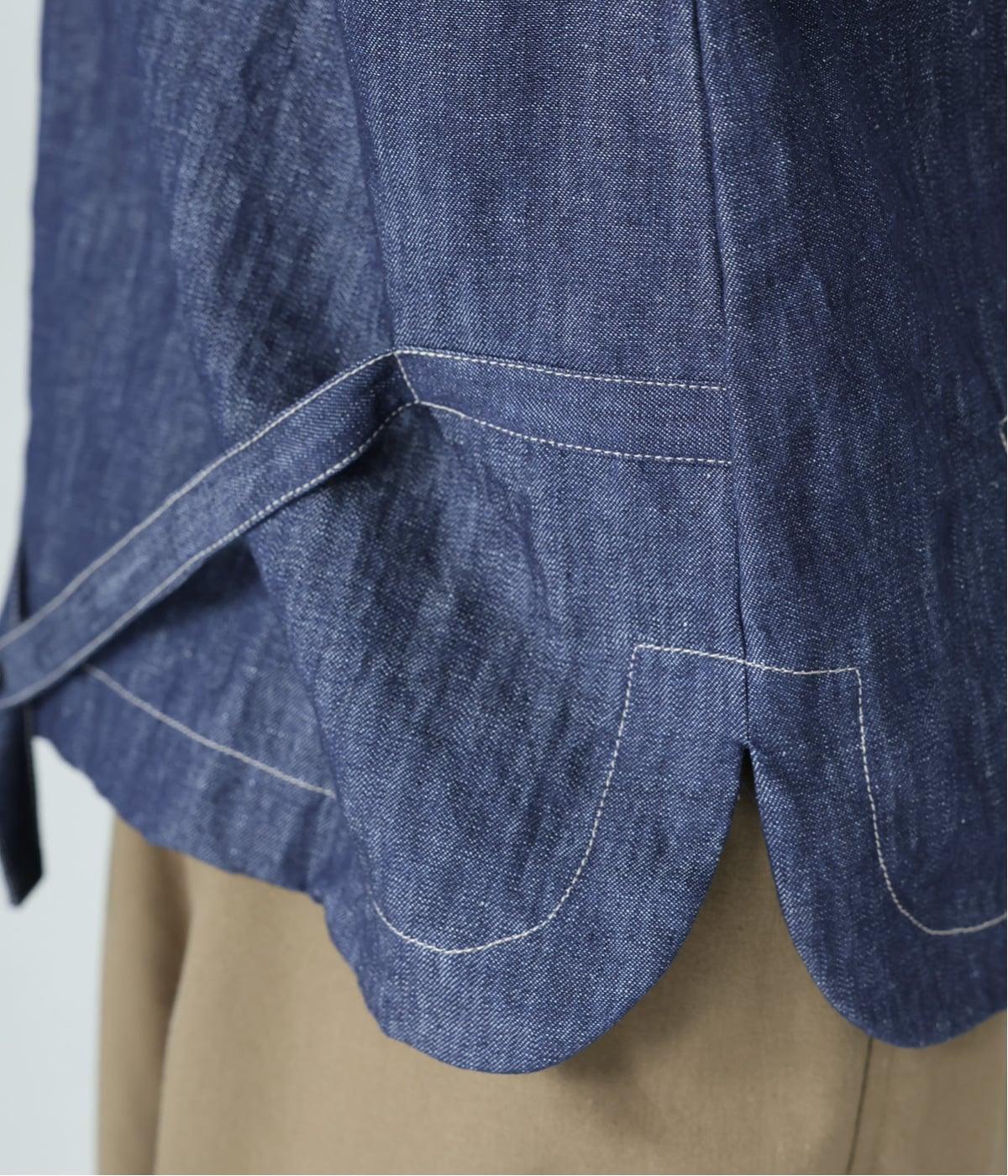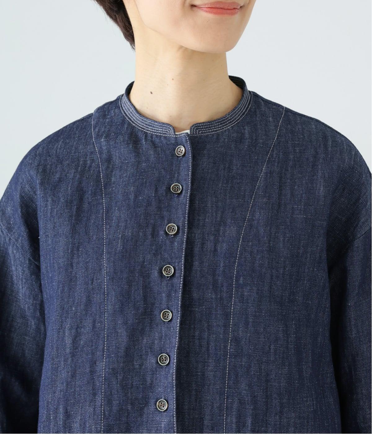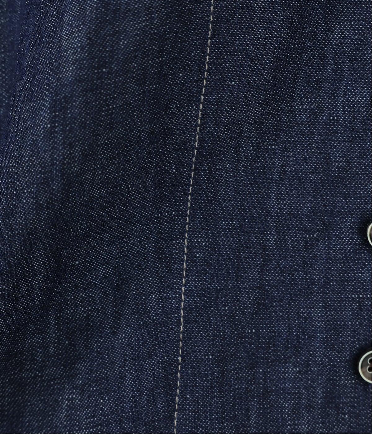 自然に馴染むグレーベージュのステッチと、ヴィンテージ調のボタンがポイント。着るほどに馴染む、コットンリネンデニムの表情を存分に楽しめるアイテムです。