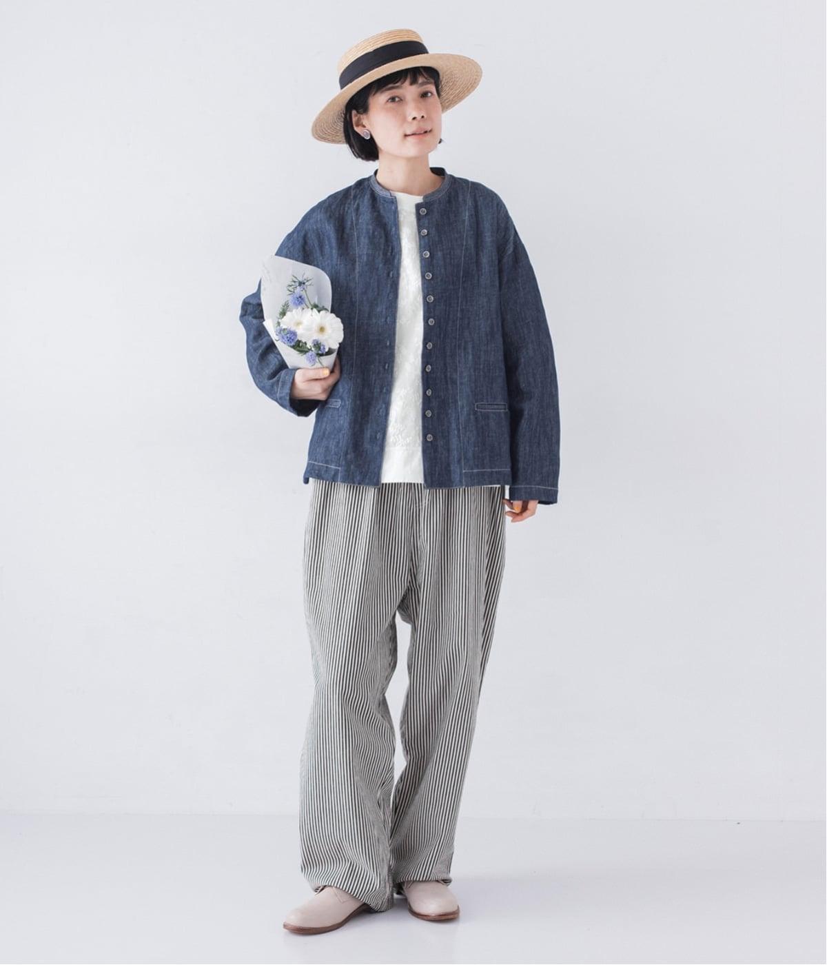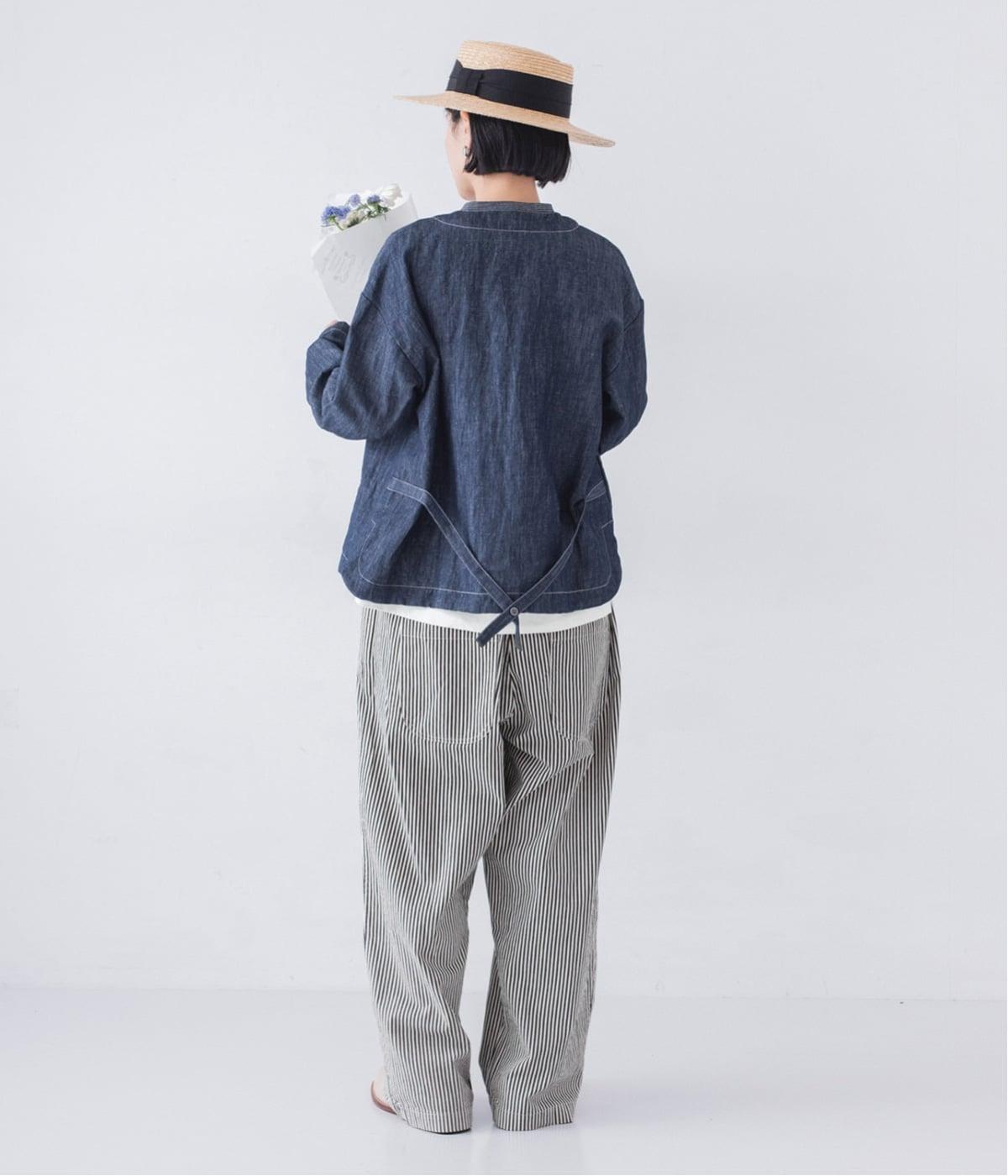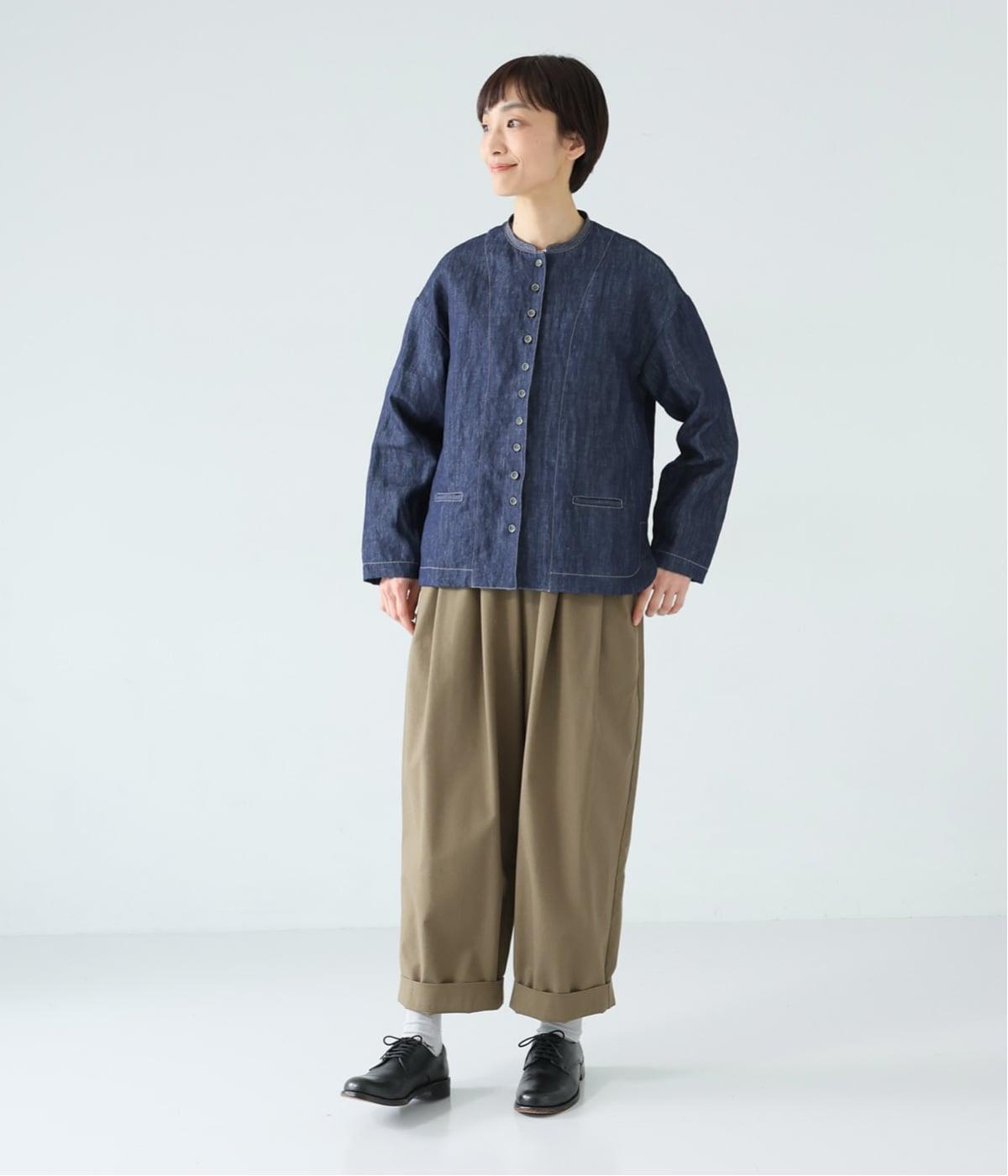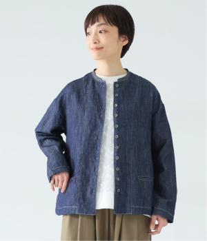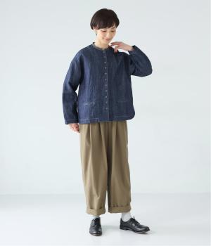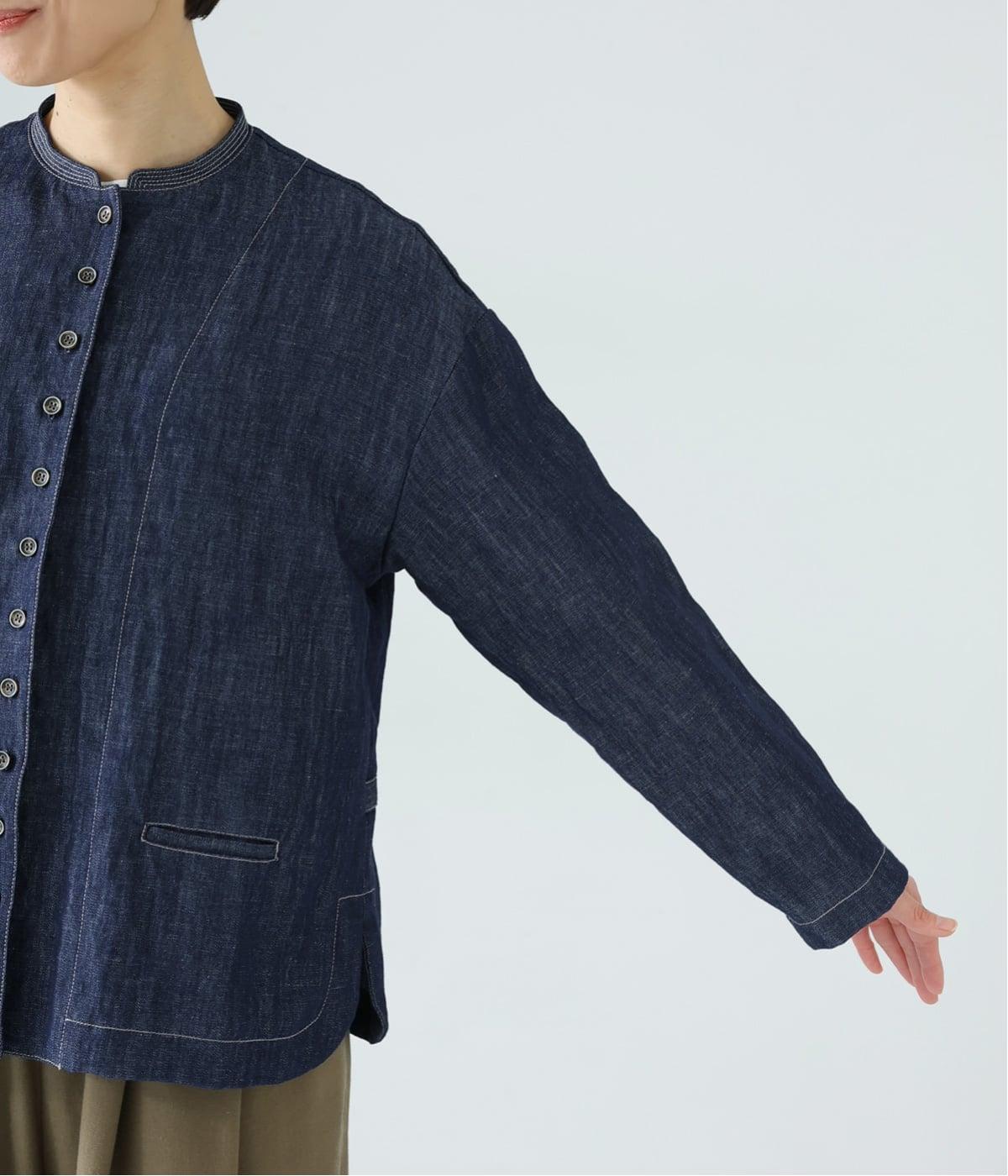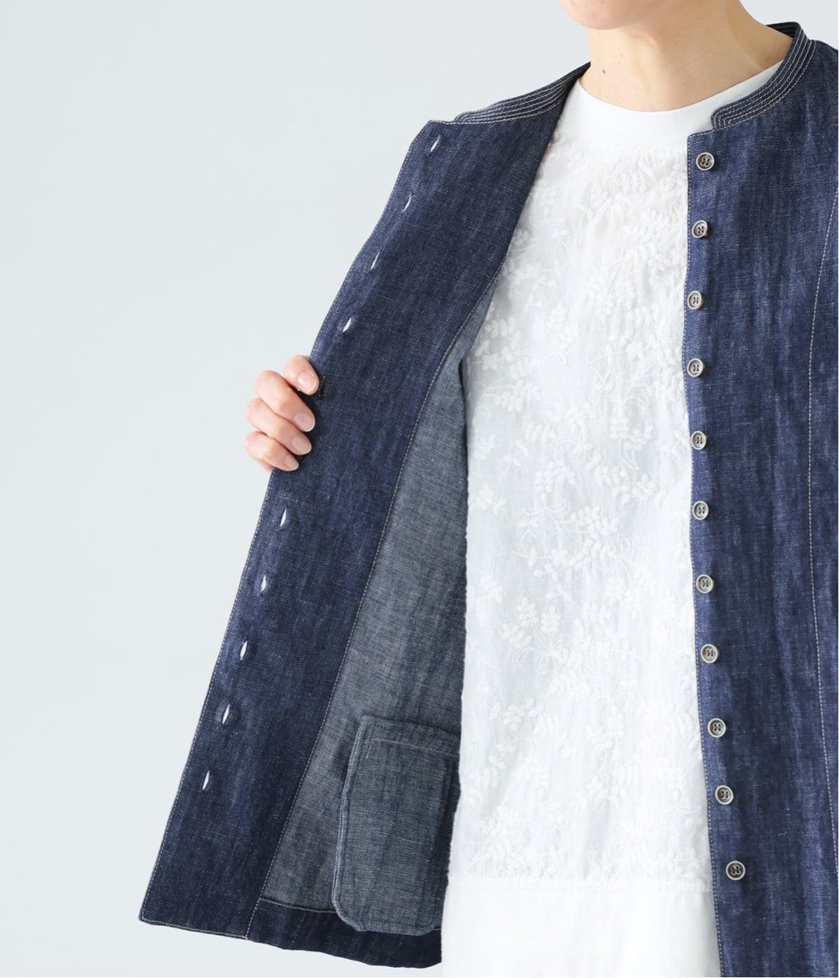 自然に馴染むグレーベージュのステッチと、ヴィンテージ調のボタンがポイント。着るほどに馴染む、コットンリネンデニムの表情を存分に楽しめるアイテムです。