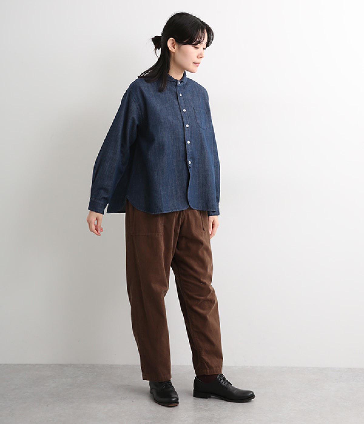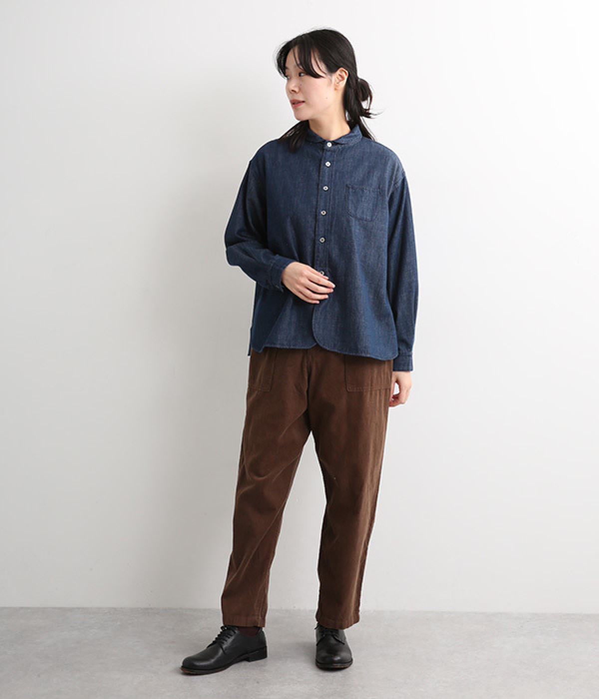 前後差をつけたラウンドヘムがこなれた装いを演出