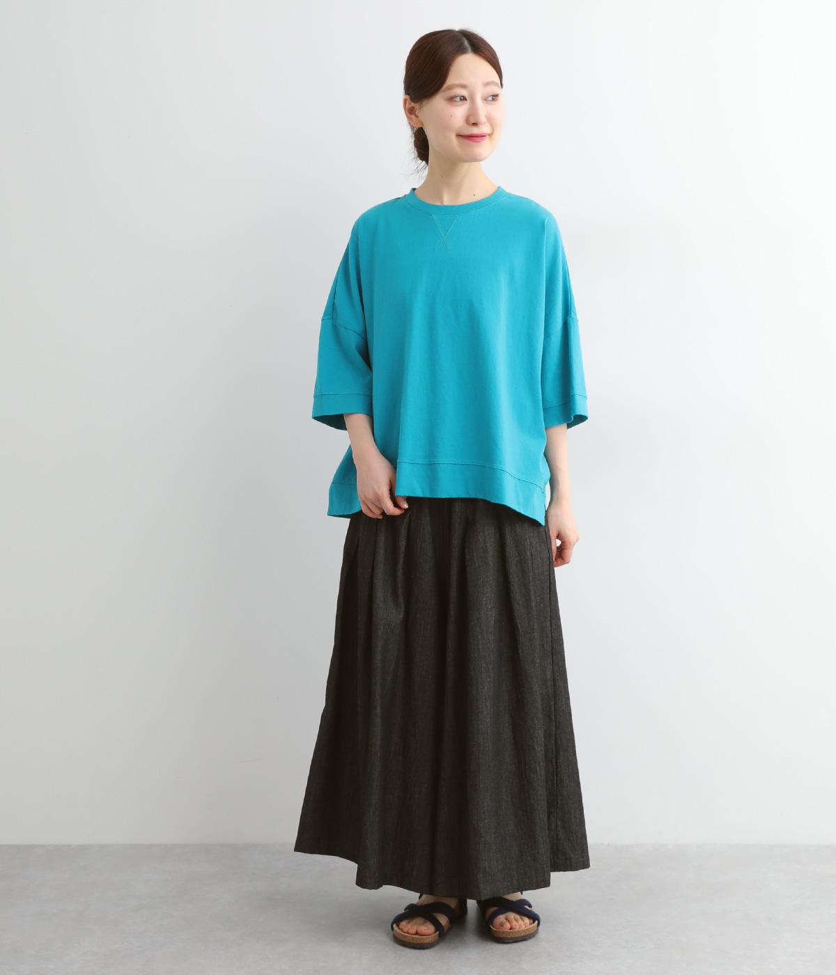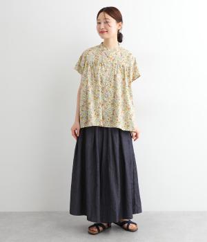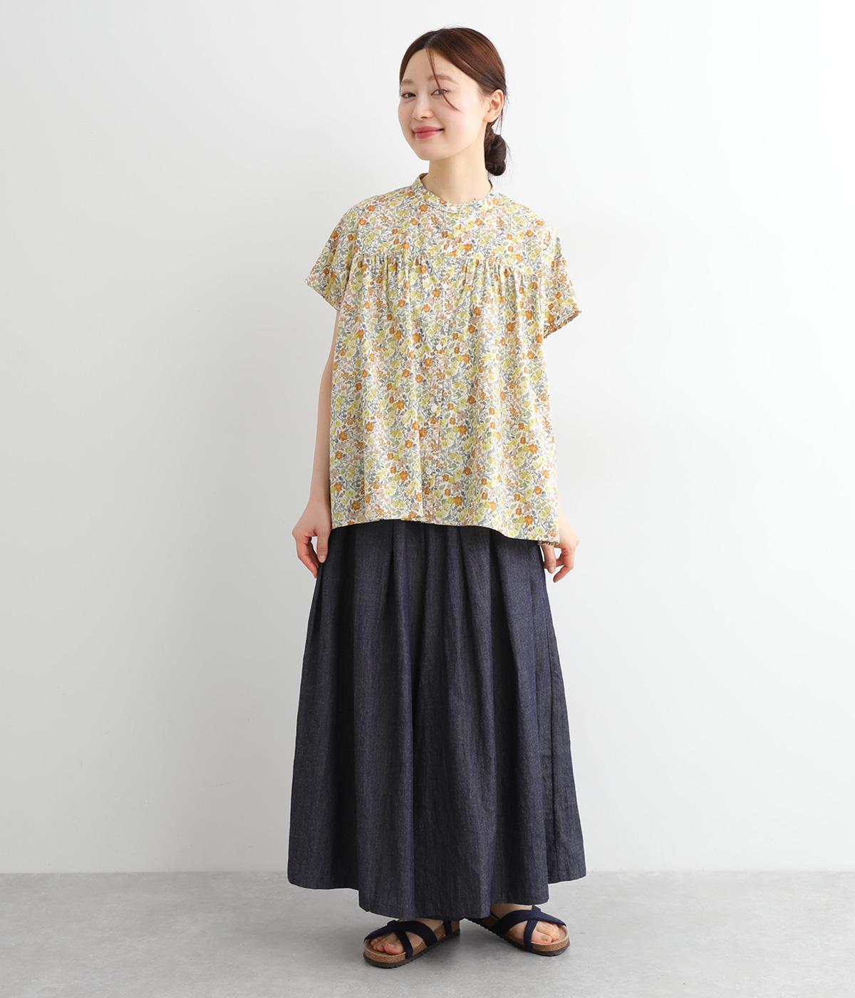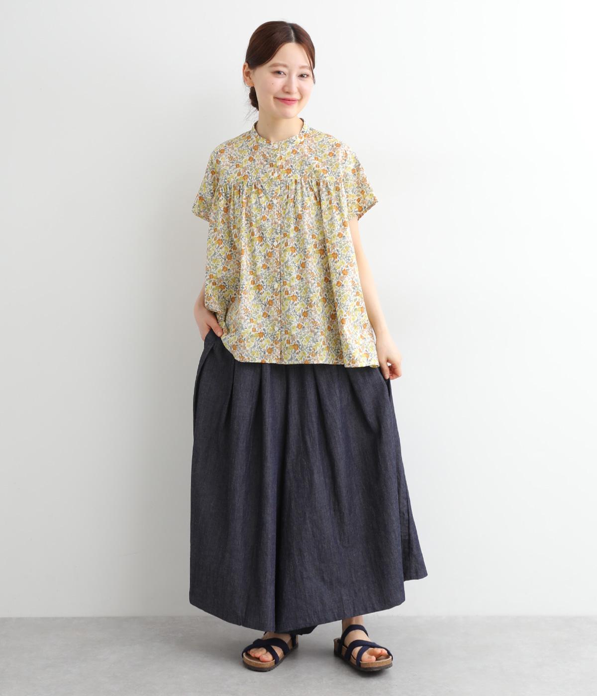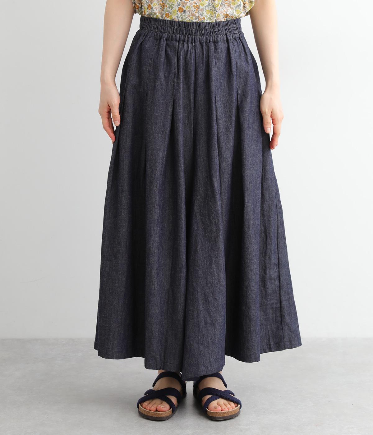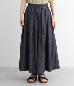 コットンにリネンをまぜてナチュラル感を高めたデニム生地で仕立てました。薄手で着用初期からやわらかく、軽やかなはき心地です。インディゴならではのエイジングもたのしみのひとつ。