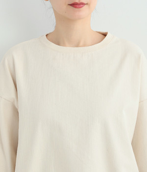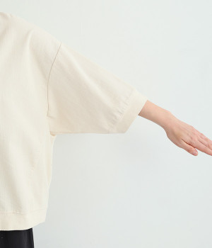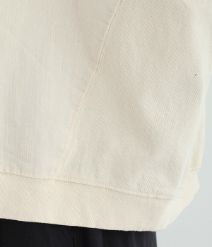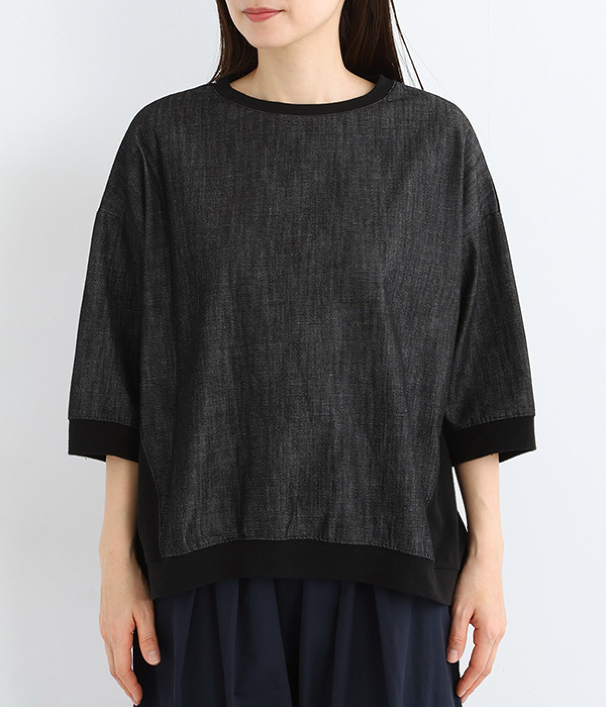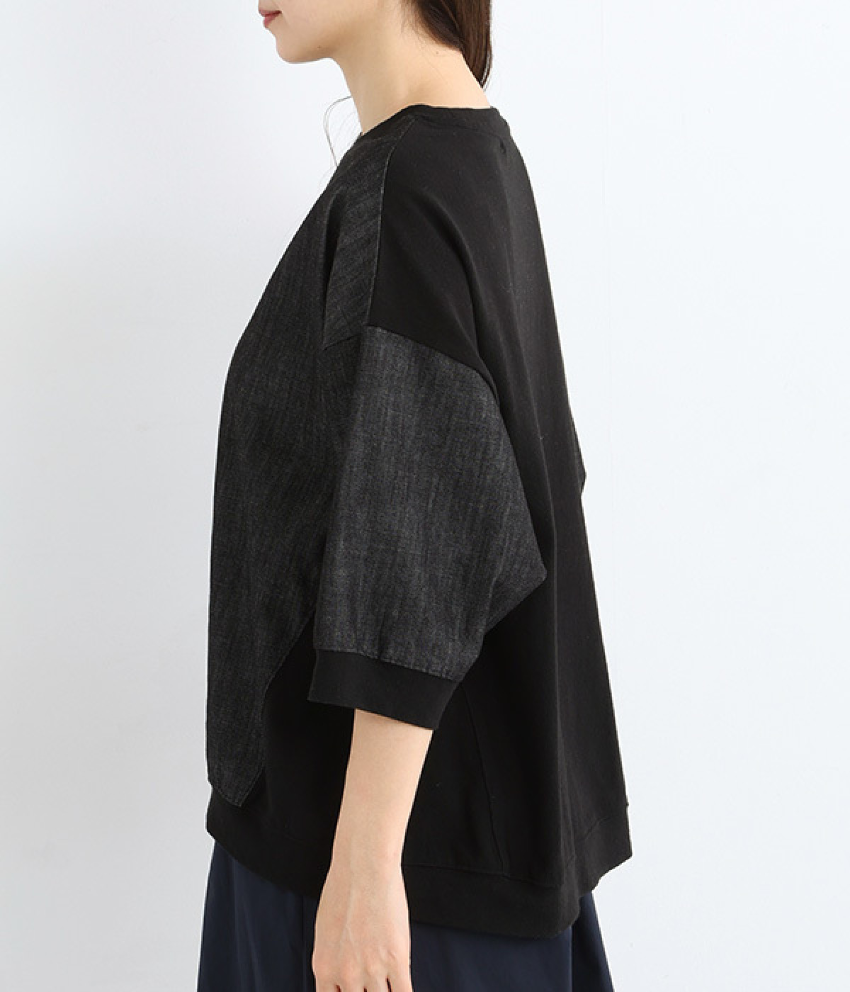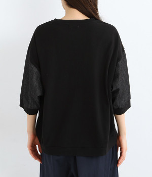 後ろ身頃を切り替えた表情豊かな異素材ミックスで、カジュアルスタイルをワンランク上へ。カラートーンを合わせているので統一感があり、着まわしやすく仕上がっています。