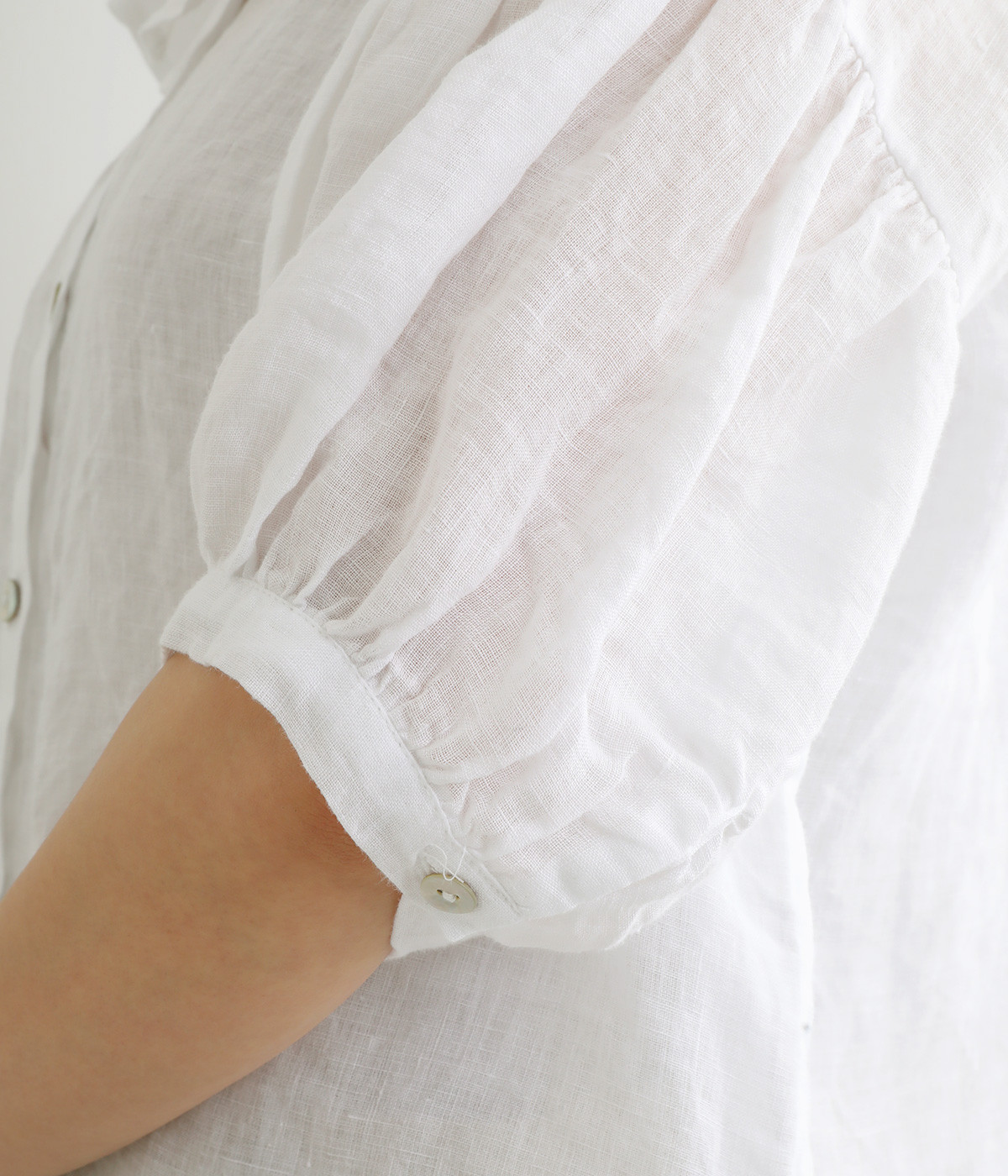 ハリコシのある薄手の麻素材を使用。お洗濯を重ねるごとにやわらかく、肌なじみもアップ。汗ばむ季節もさらっと肌離れがよく、爽やかな着心地が続きます。