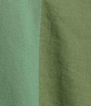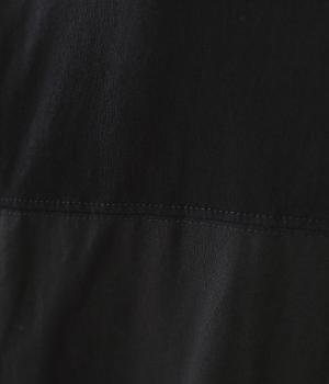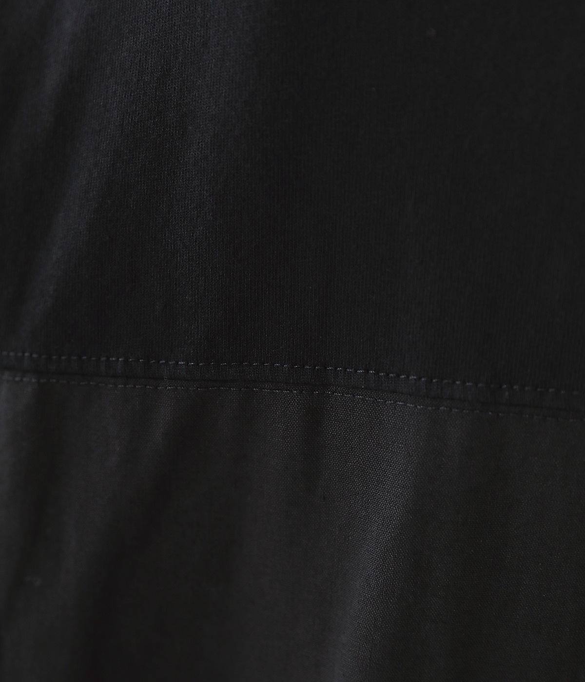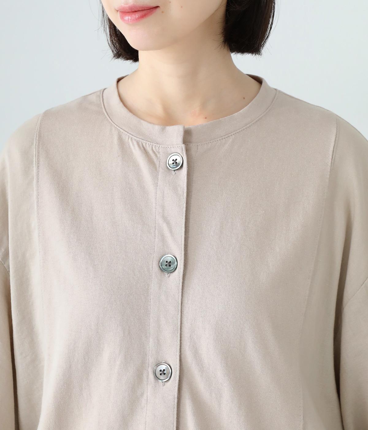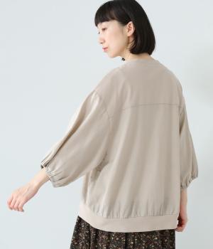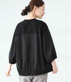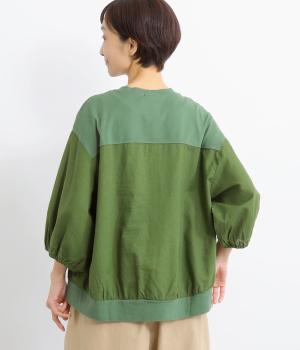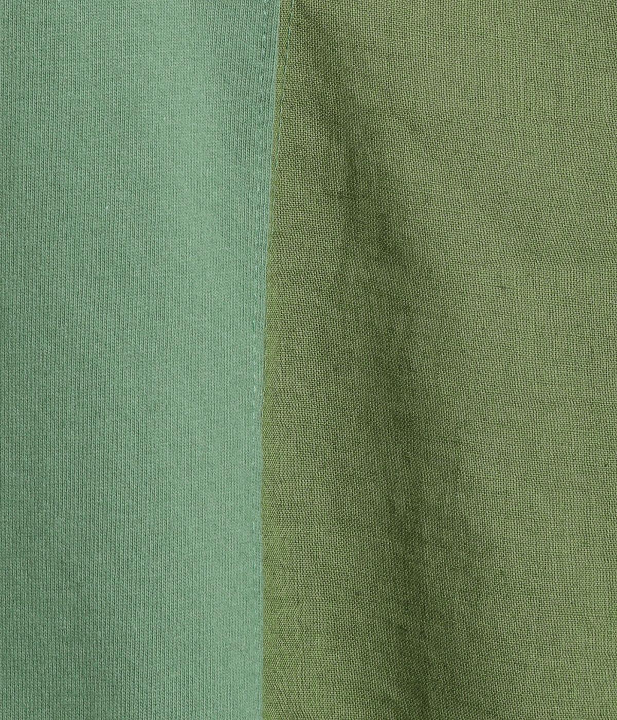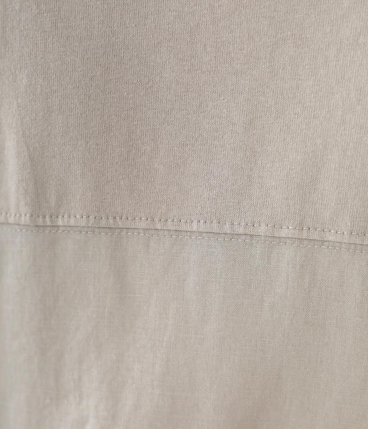 心地よく肌になじむやわらかな風合いが魅力のコットン天竺生地と、ナチュラルな表面感やシャリ感が特徴のコットンリネン布帛生地をドッキング。どちらもやや薄手の軽やかな質感なので、暑さの残る時期にも快適に着用できます。
