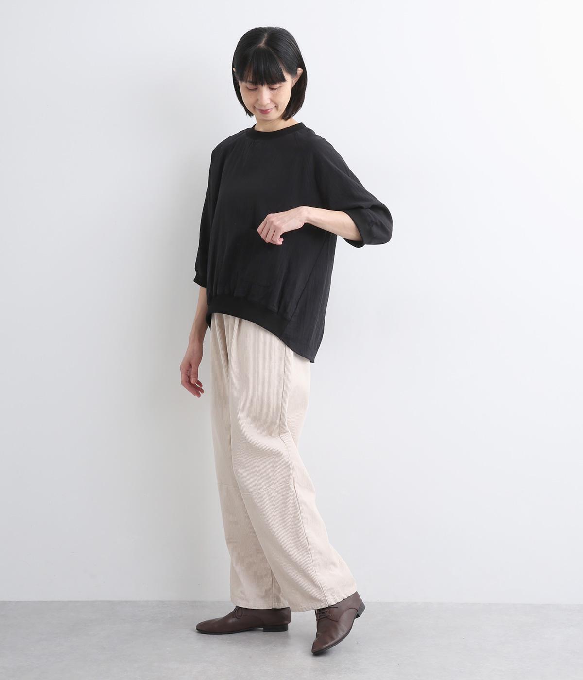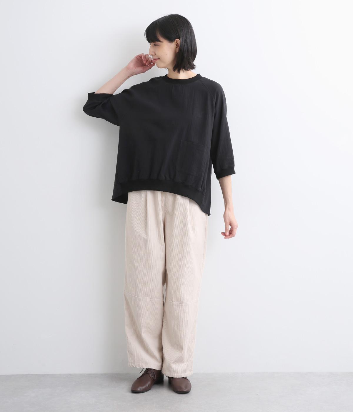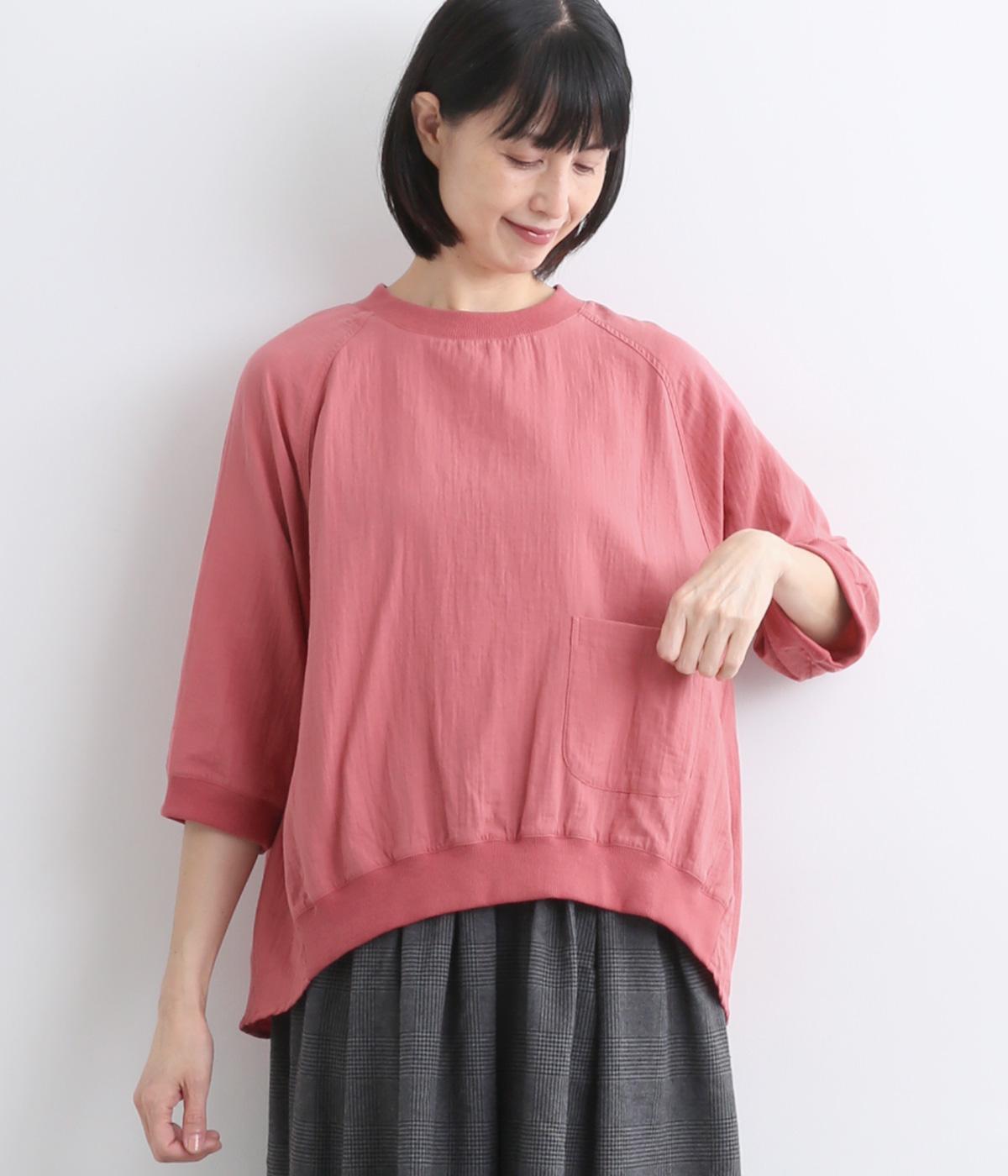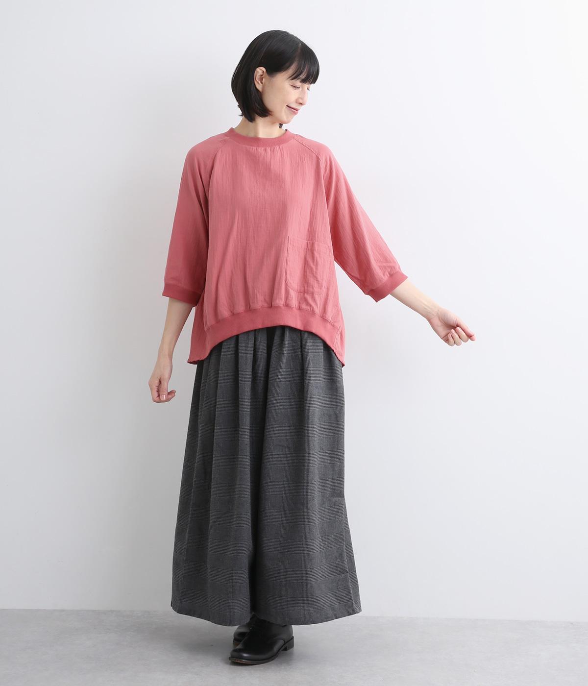 身幅をたっぷりと取ったワイドシルエットのプルオーバーです。首元や袖口、前裾はリブで切り替えてデザイン性と着心地のよさを高めています。肩まわりに窮屈さを感じにくいラグランスリーブも◎。