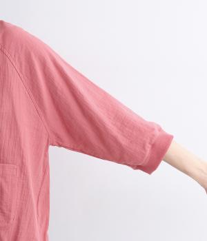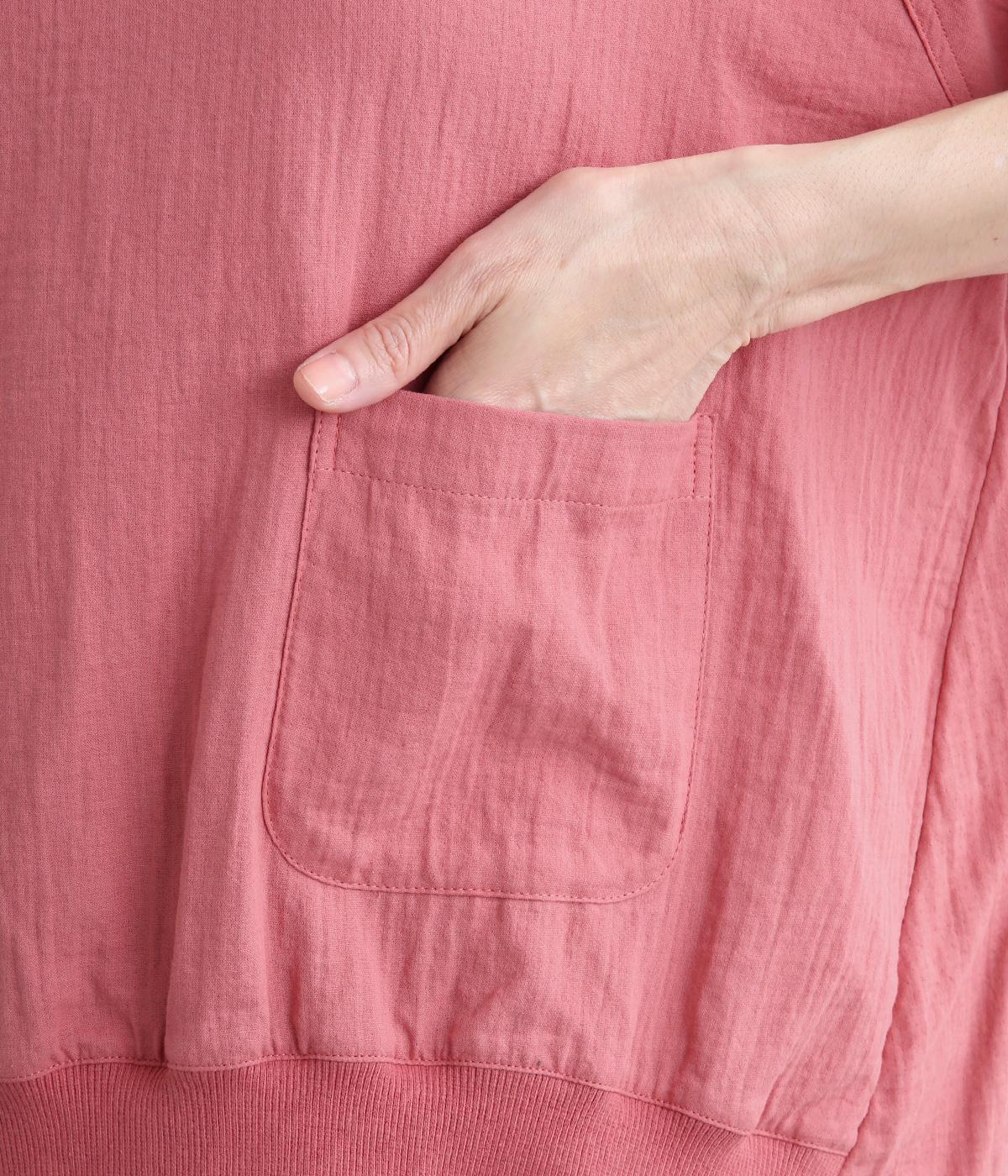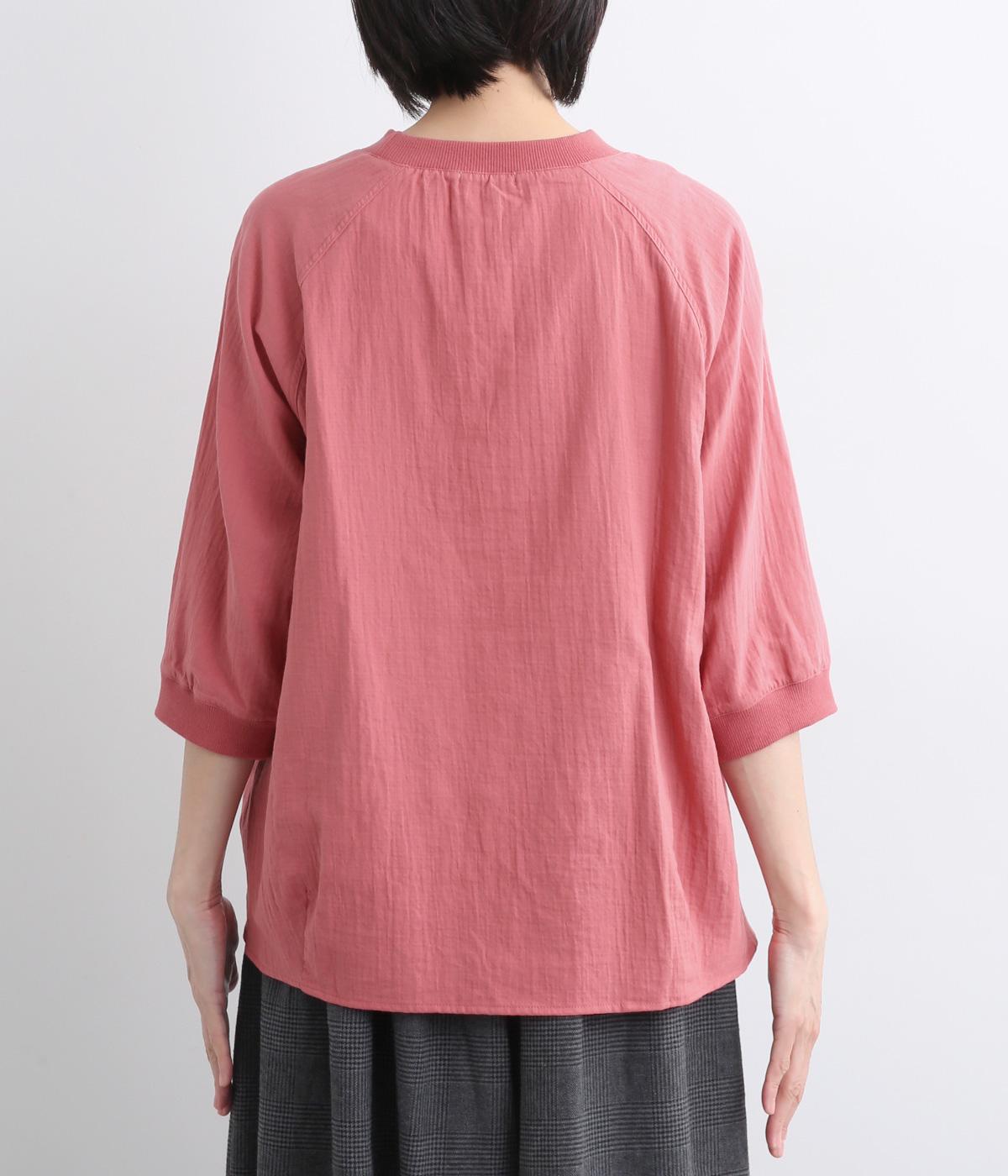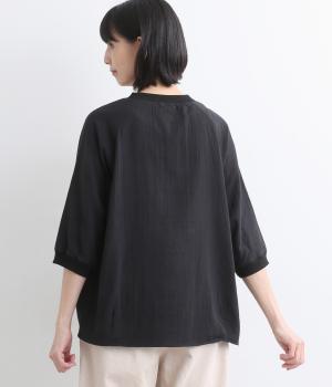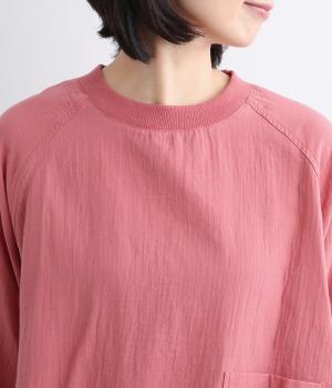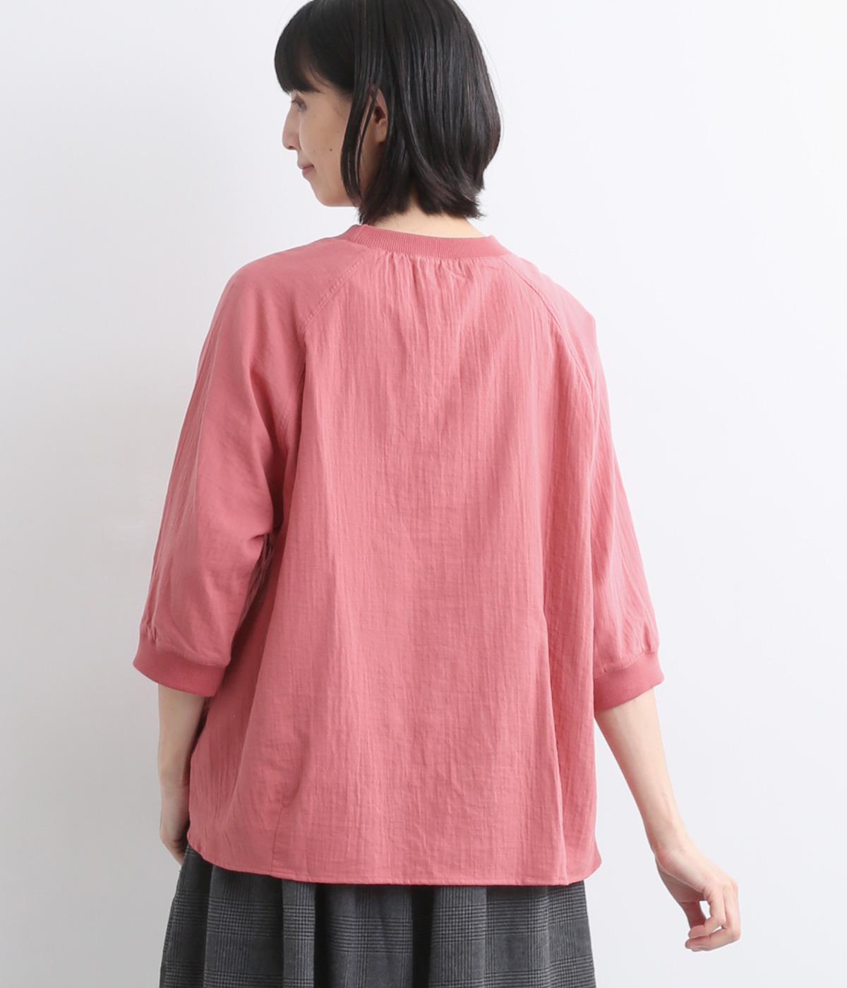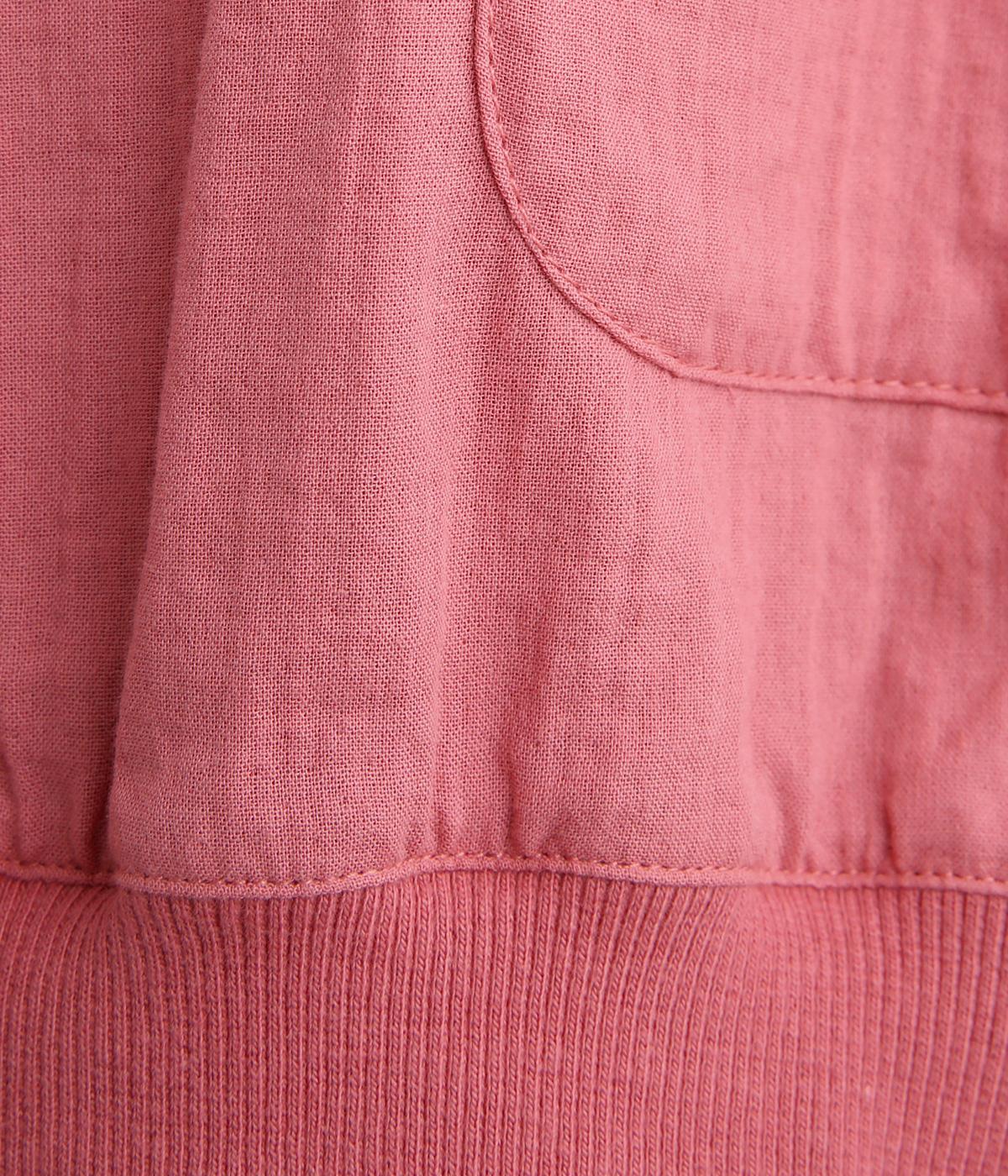 ふんわりとソフトな手ざわりをもつ、コットンのダブルガーゼを使用した薄手生地です。吸水性、通気性に優れており、着て洗うことを繰り返すことでやわらかさが増すのも特徴に。