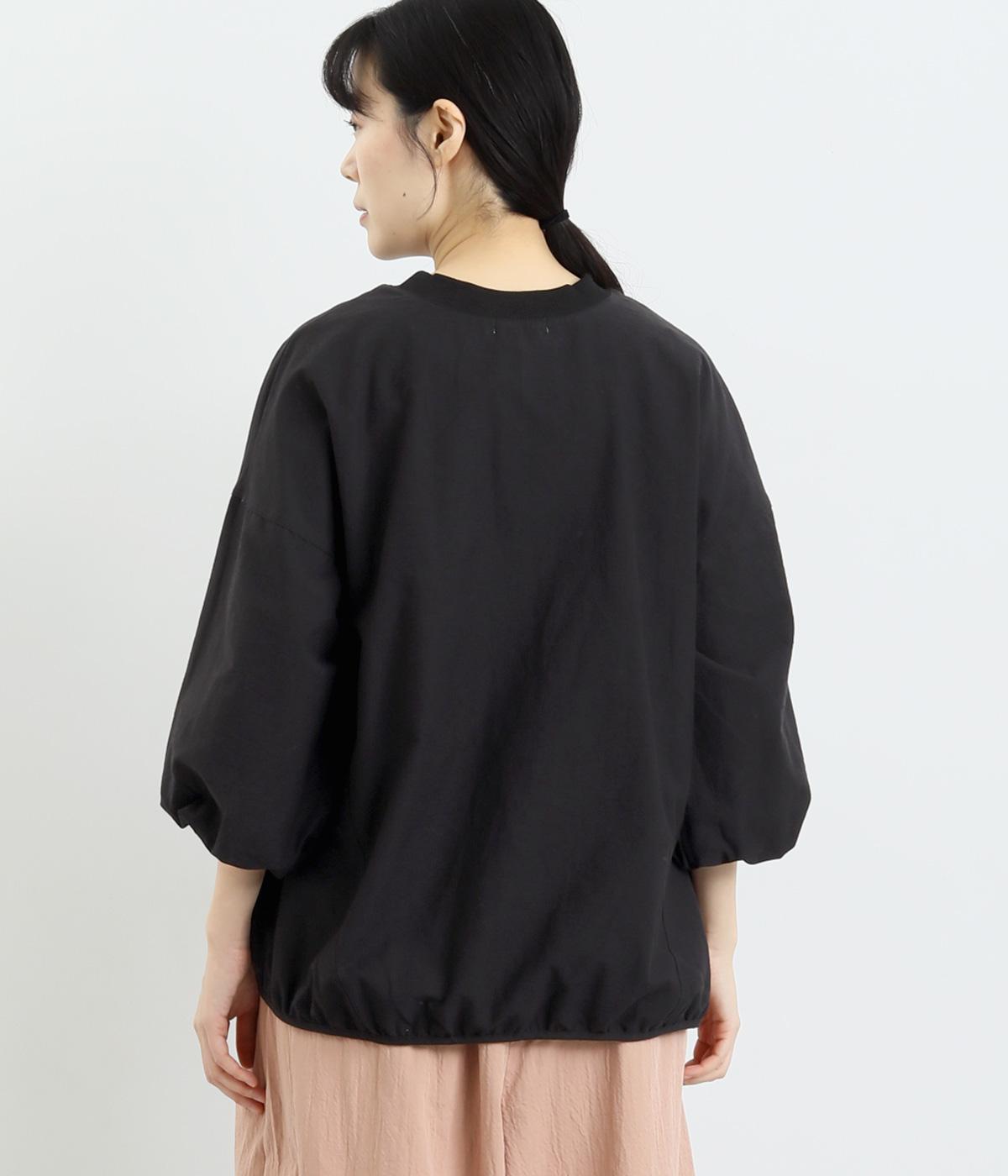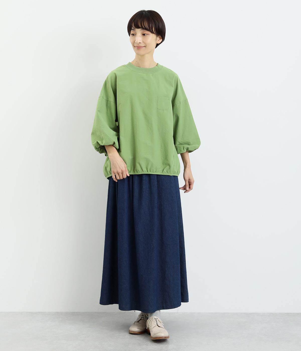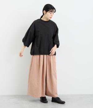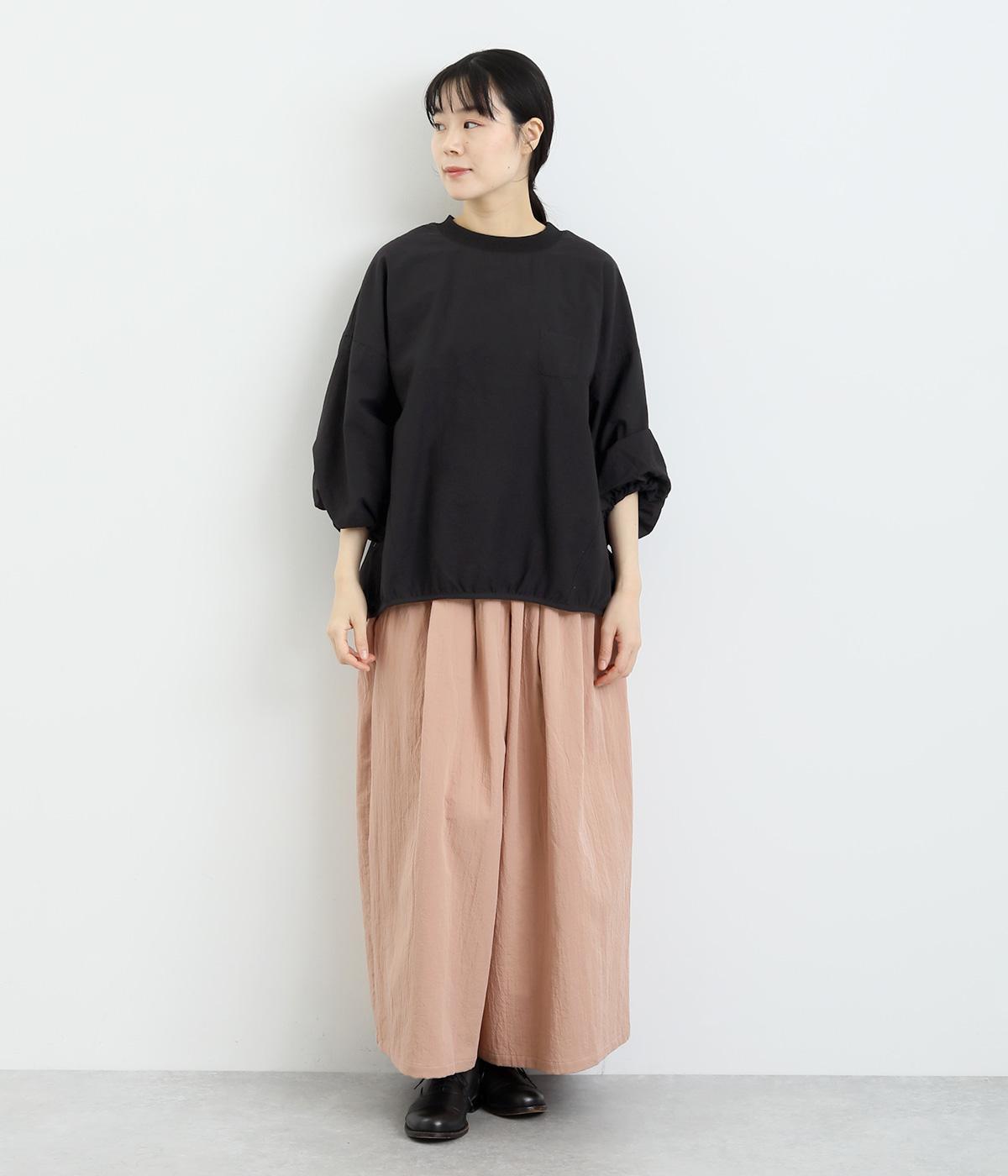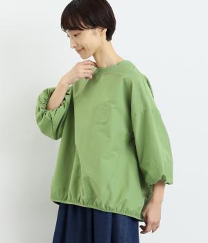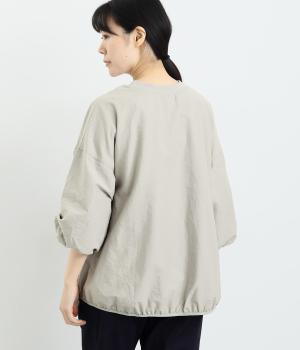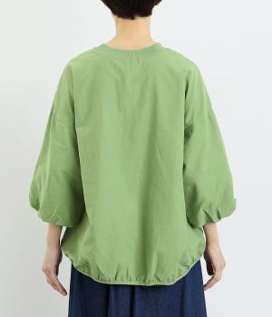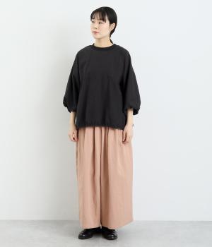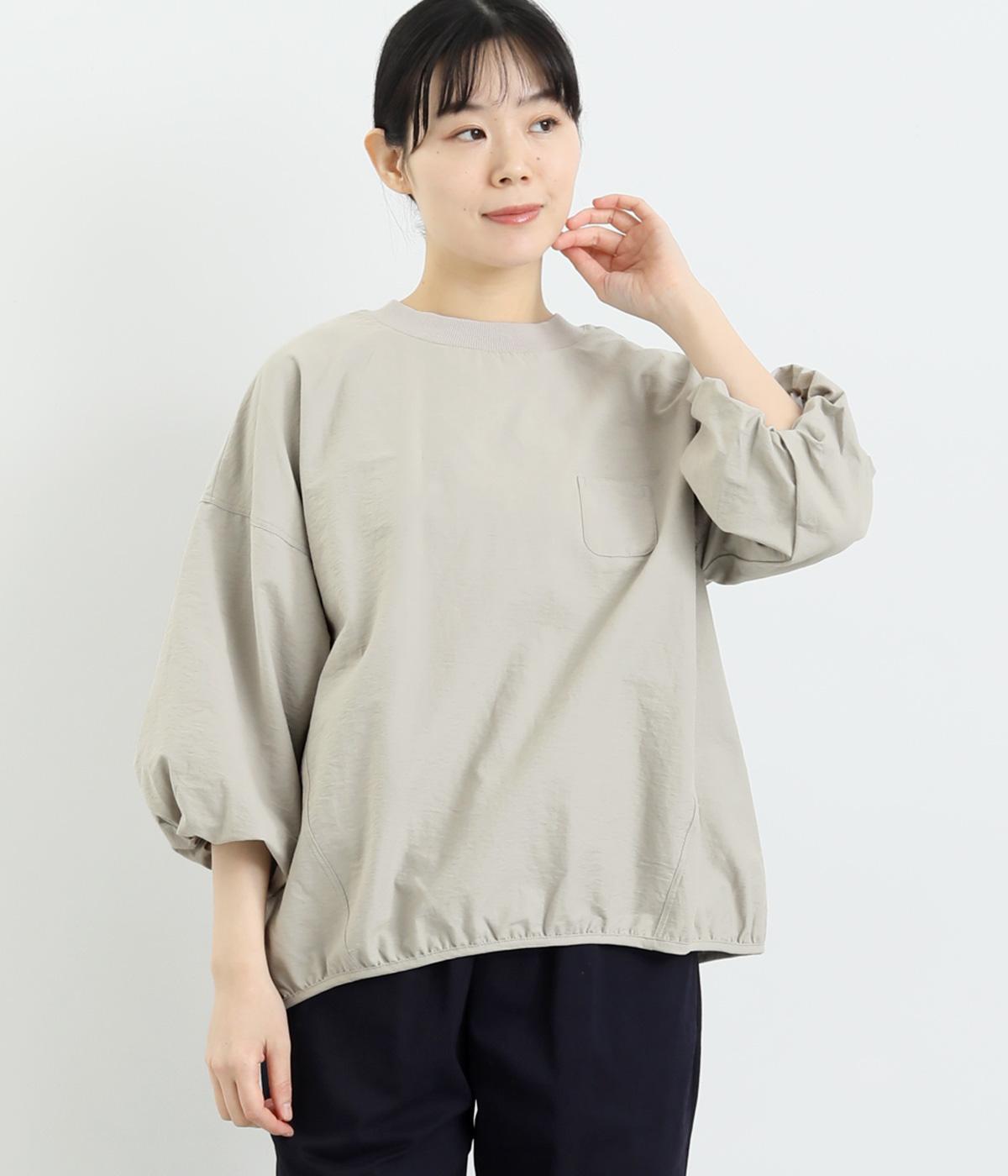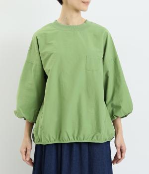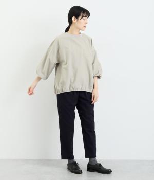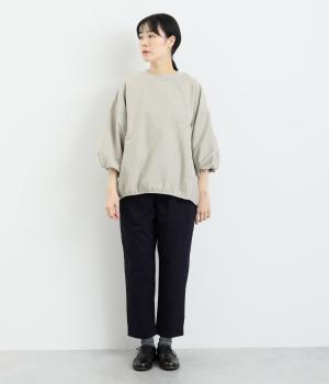 まるみのあるフォルムが印象的なプルオーバーです。やさしく腕を包み込む七分丈のバルーンスリーブと、裾のギャザーで程よい立体感を演出してくれます。エアリーな心地よさが◎。胸元にあしらった小さなポケットもアクセントに。