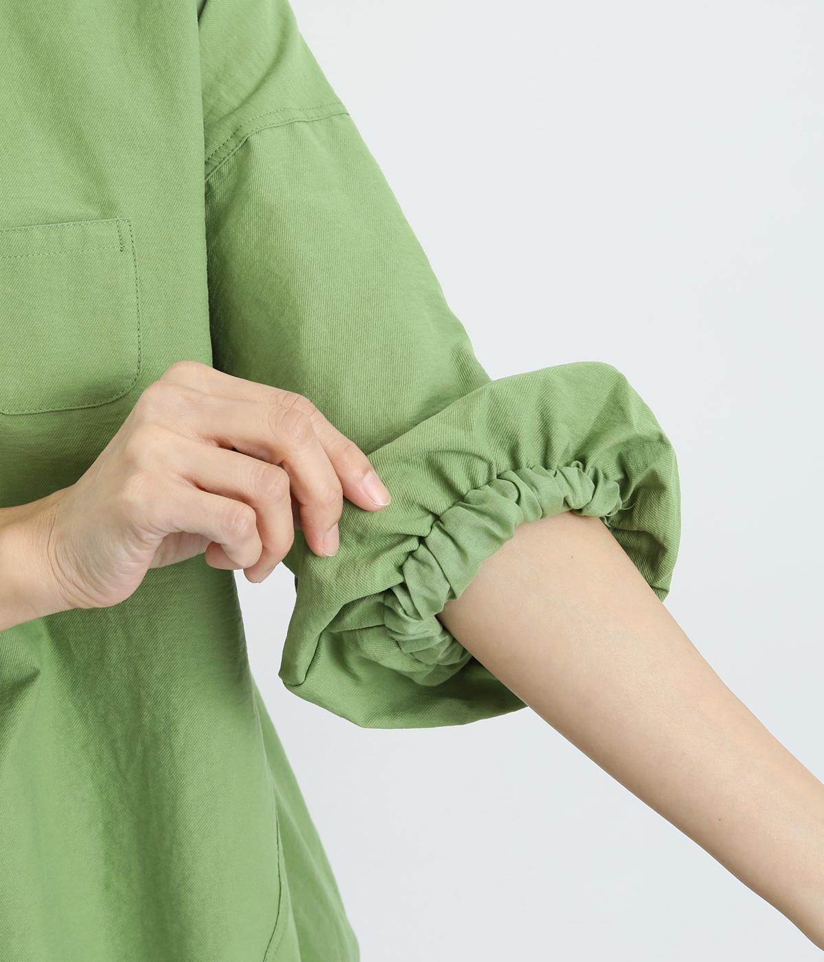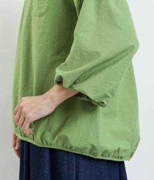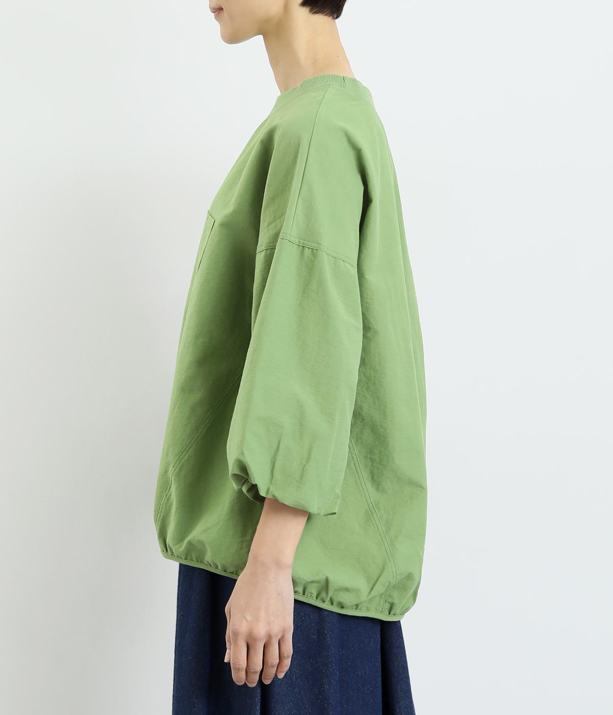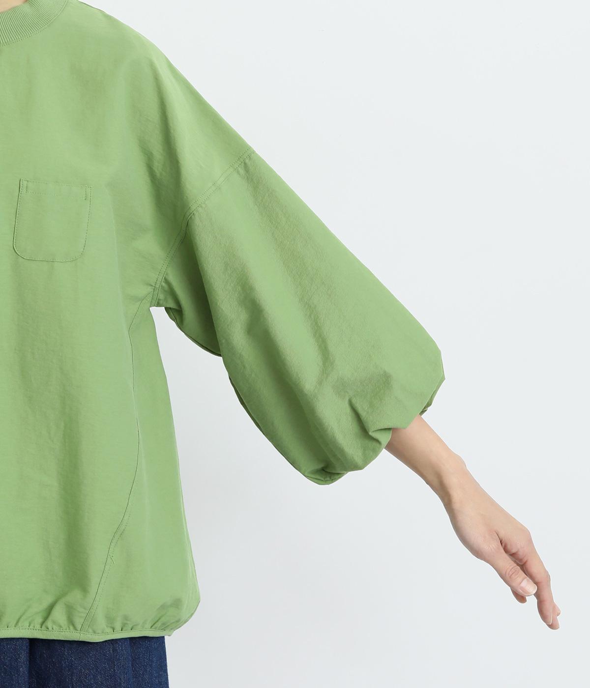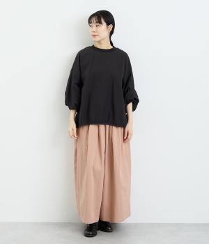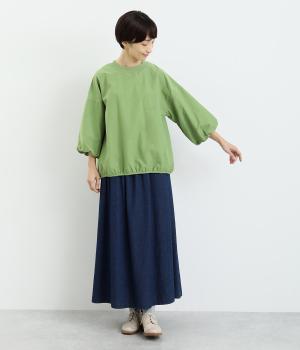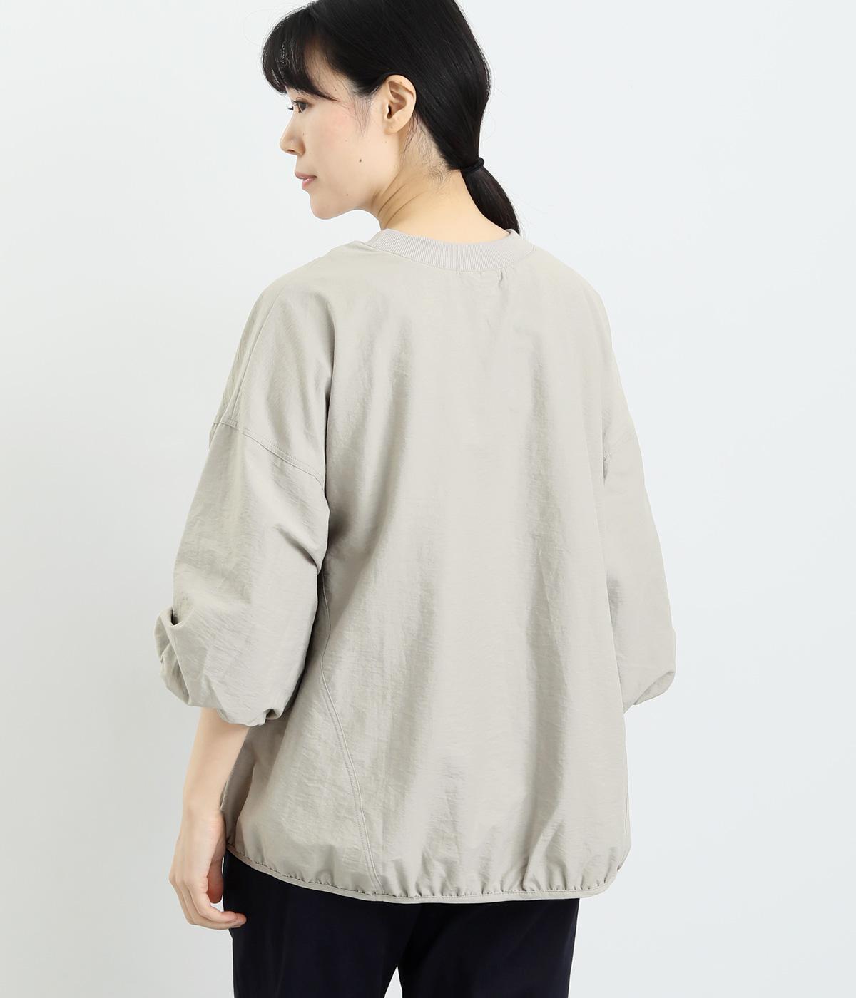 まるみのあるフォルムが印象的なプルオーバーです。やさしく腕を包み込む七分丈のバルーンスリーブと、裾のギャザーで程よい立体感を演出してくれます。エアリーな心地よさが◎。胸元にあしらった小さなポケットもアクセントに。