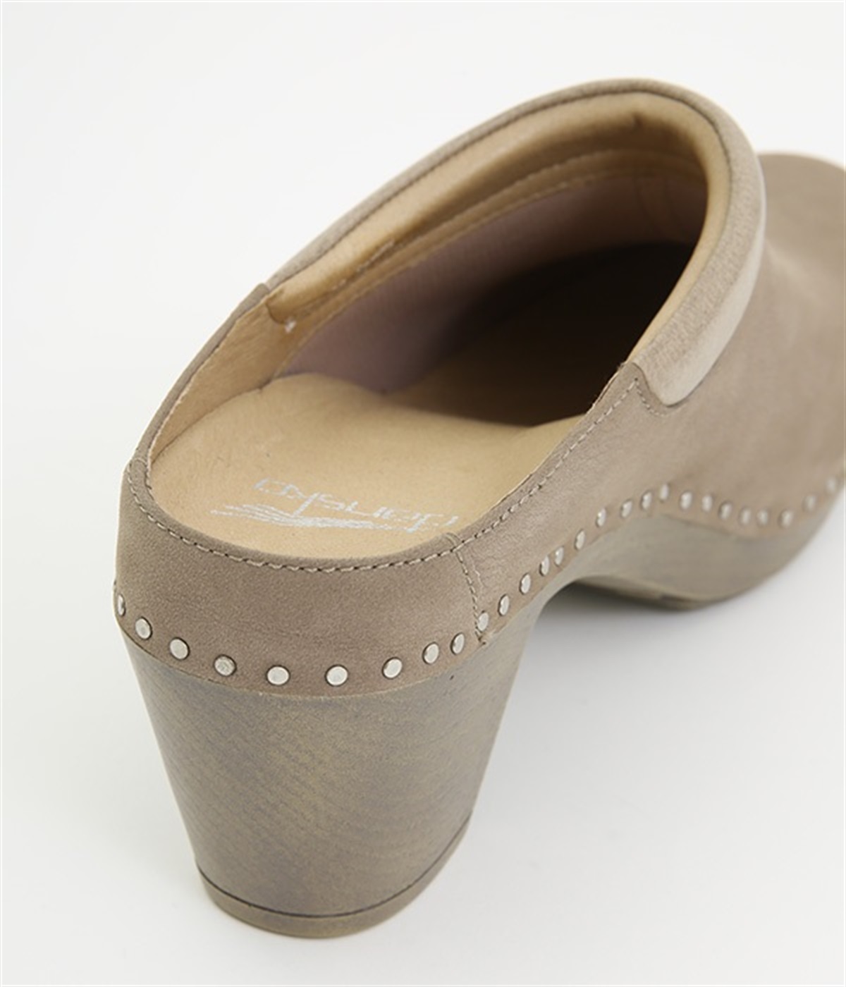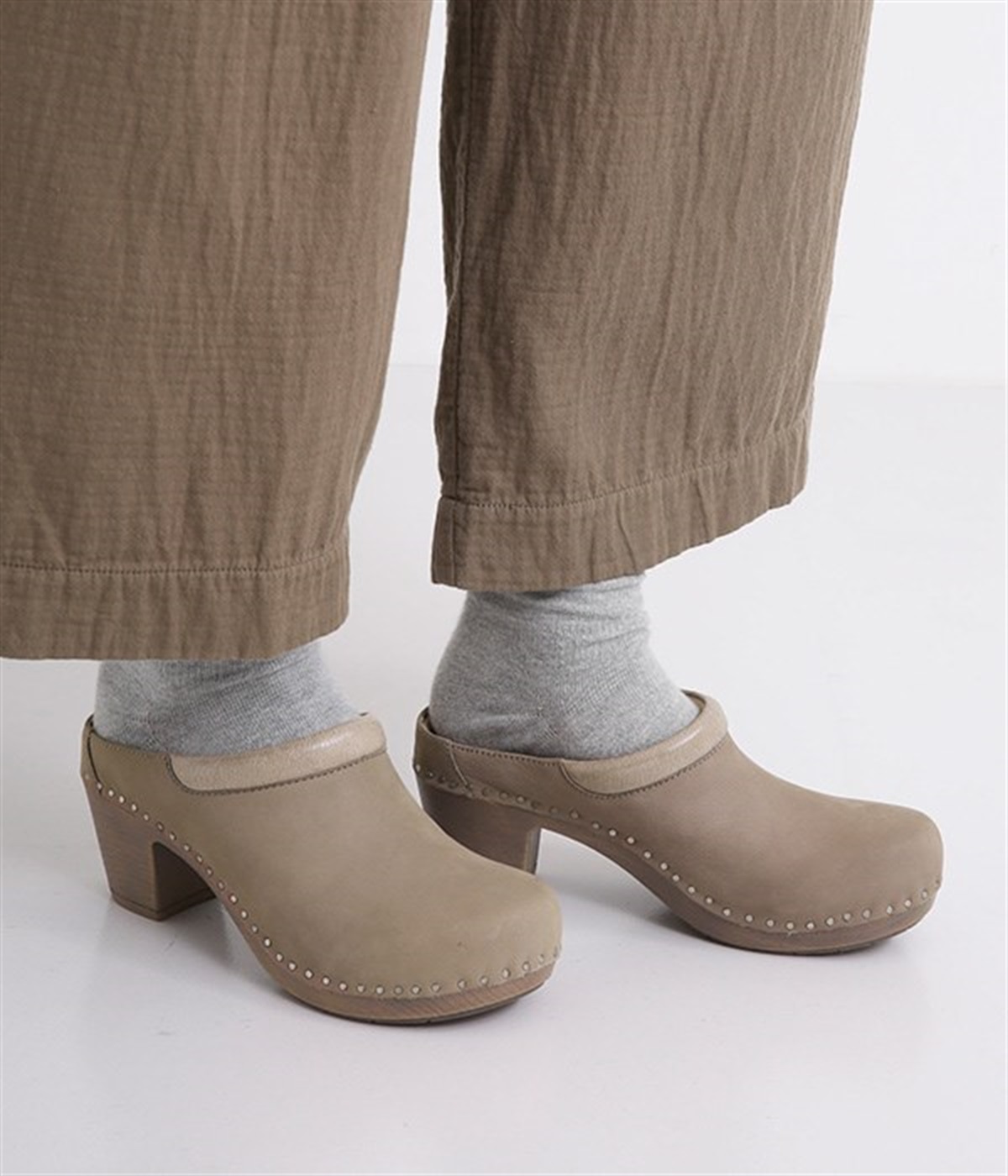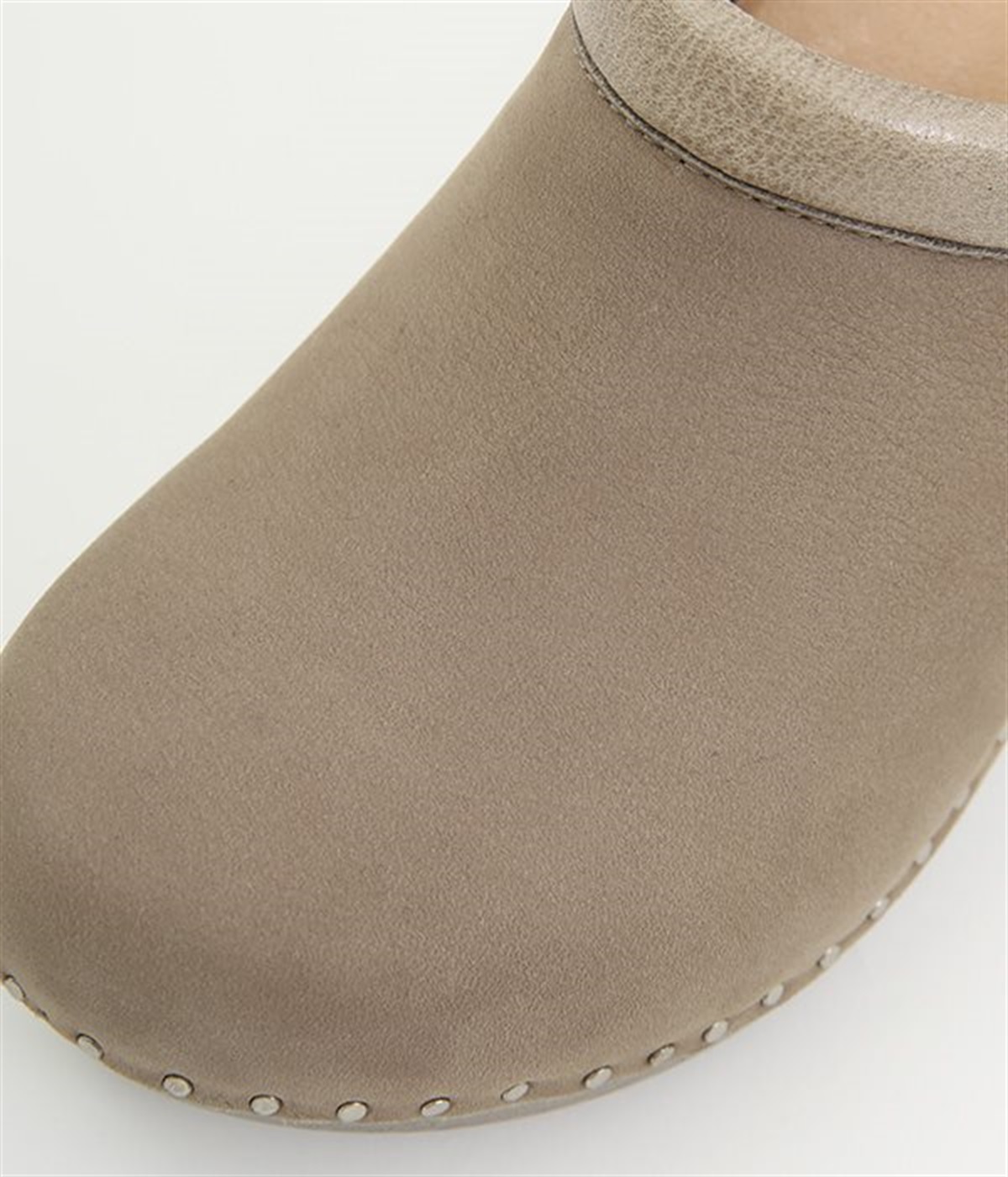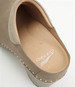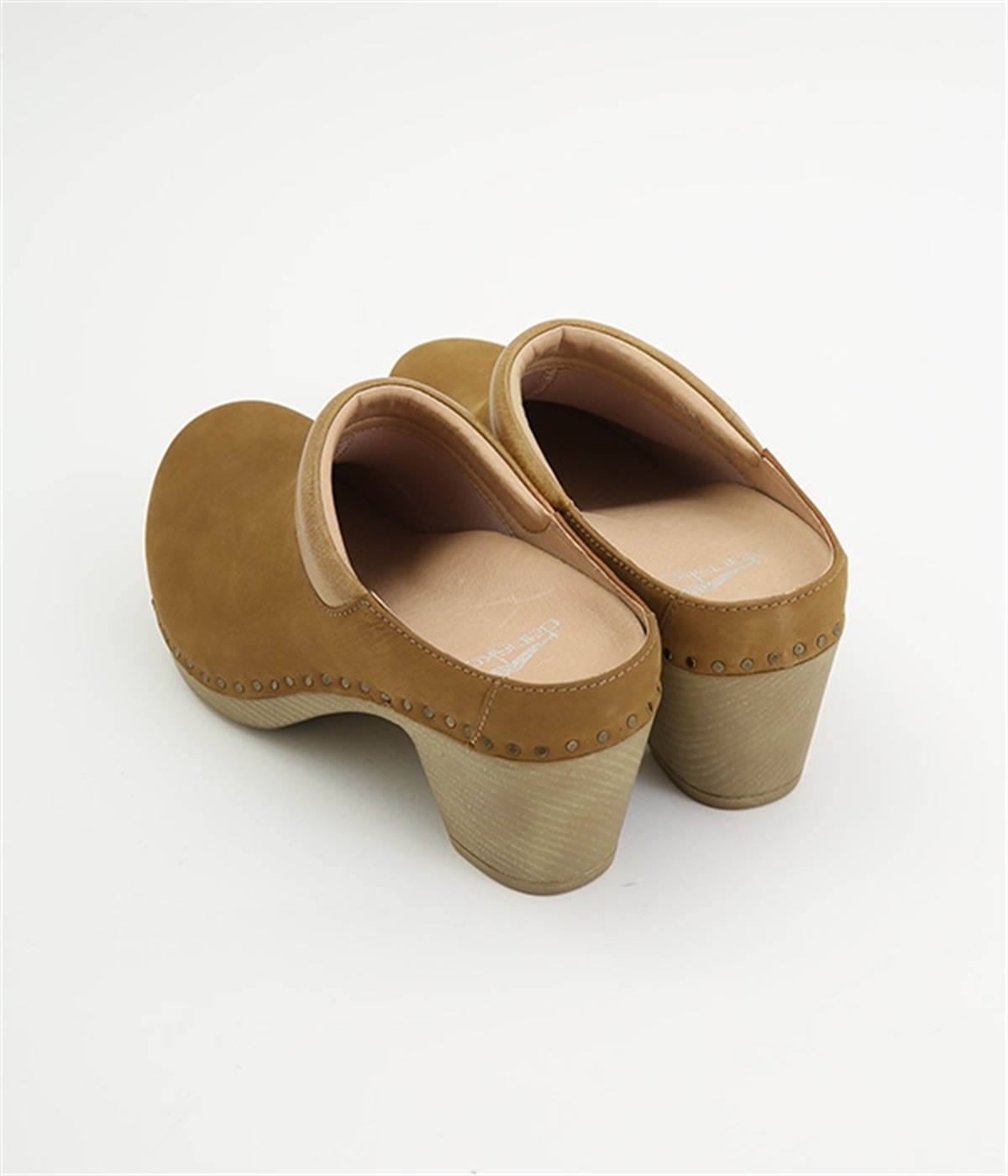 ぐるりと施したスタッズがポイントの、脱ぎ履きしやすいサボサンダルです。アッパーはスコッチガード加工のヌバックレザー、アッパーの裏側にはリサイクルテキスタイルを使用。フットベッドには足裏に優しくフィットするクロムフリーレザーのEVAメモリーフォームを採用し、ポリウレタンソールが衝撃を吸収してくれます。快適な歩行をサポートする一足です。