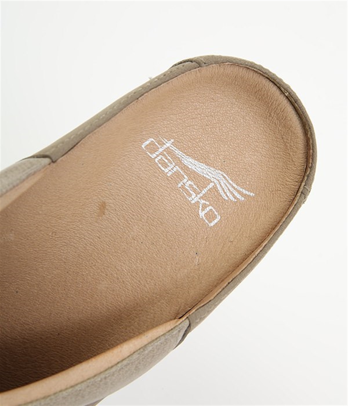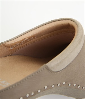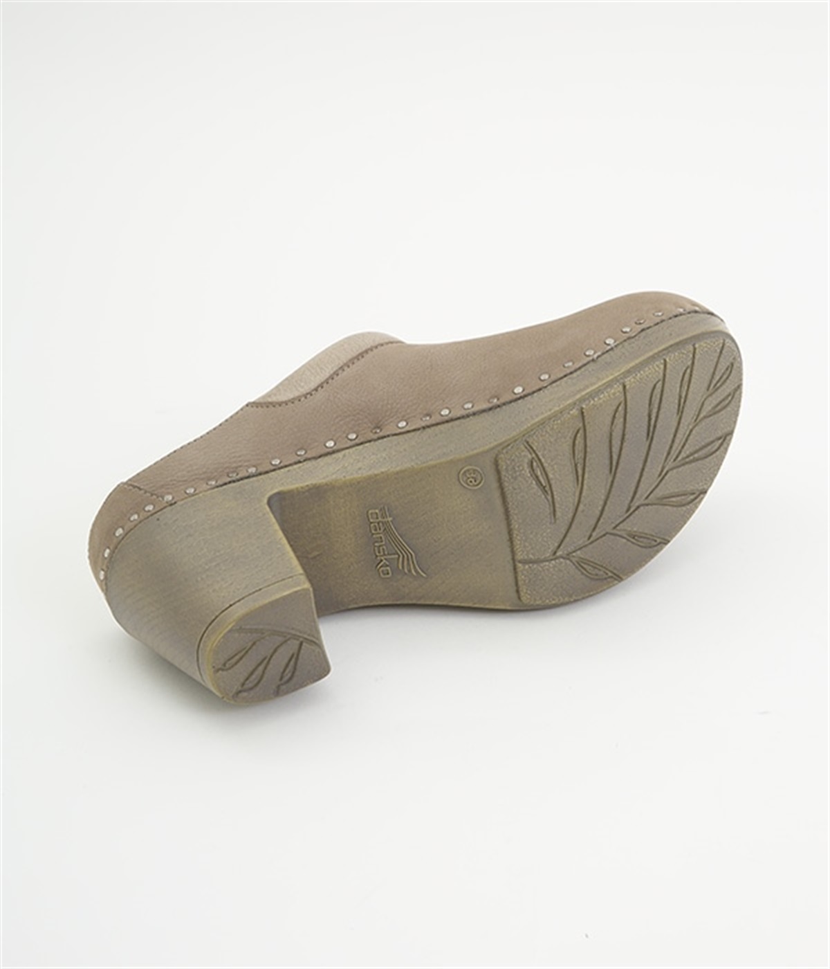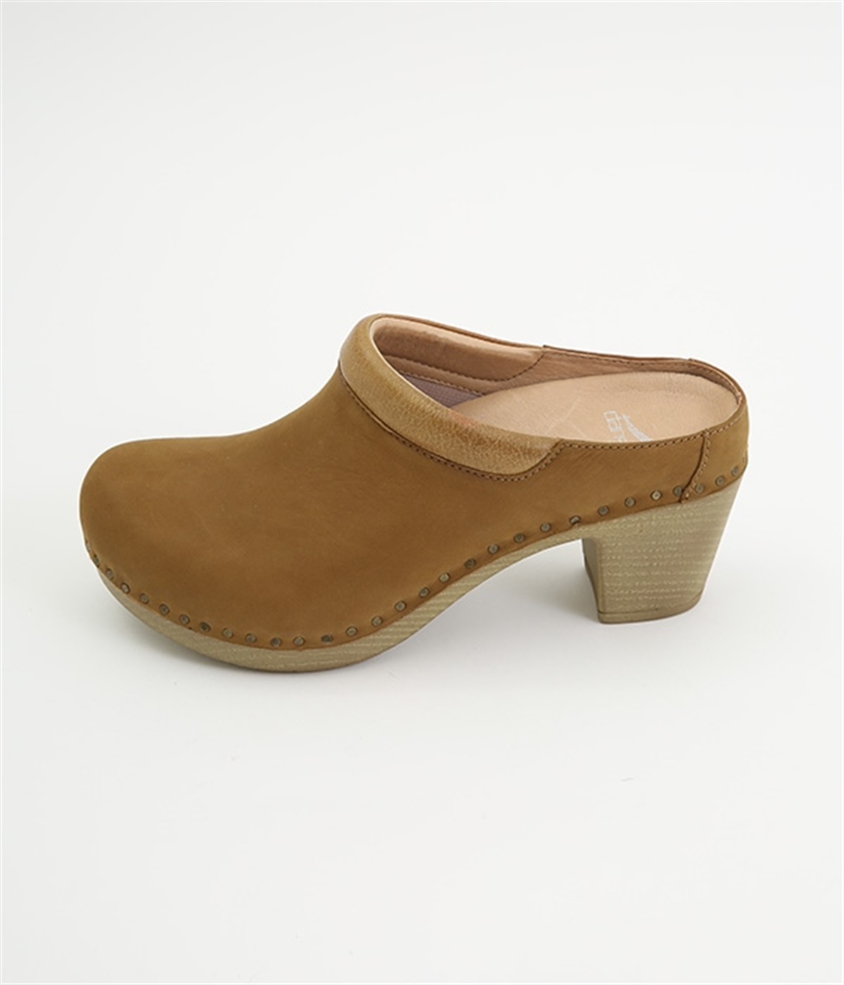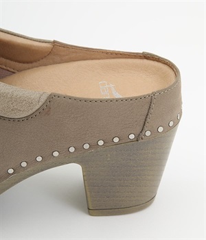 ぐるりと施したスタッズがポイントの、脱ぎ履きしやすいサボサンダルです。アッパーはスコッチガード加工のヌバックレザー、アッパーの裏側にはリサイクルテキスタイルを使用。フットベッドには足裏に優しくフィットするクロムフリーレザーのEVAメモリーフォームを採用し、ポリウレタンソールが衝撃を吸収してくれます。快適な歩行をサポートする一足です。