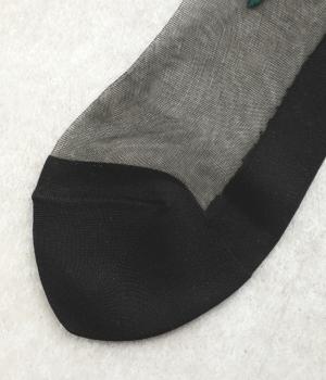 ソックスの一産地・奈良県の工場で丁寧に作られたシースルーソックス。ナイロンとポリエステルのさらりとした質感で、足もとに涼やかな抜け感を添えます。