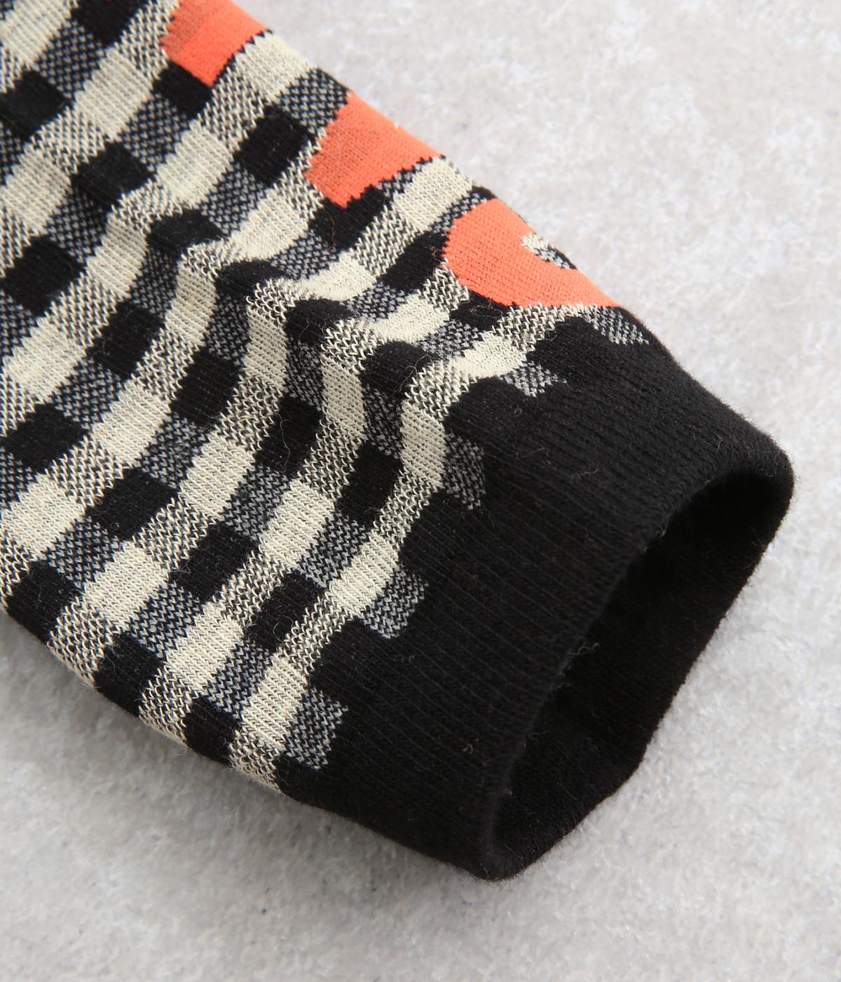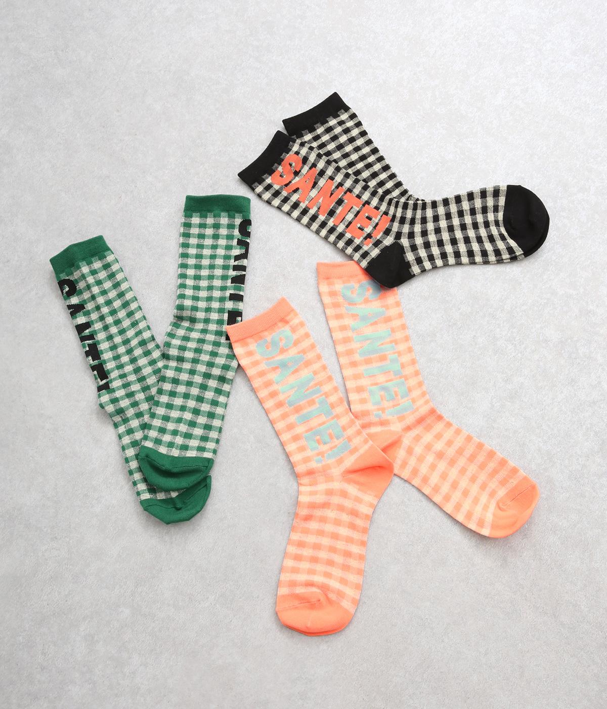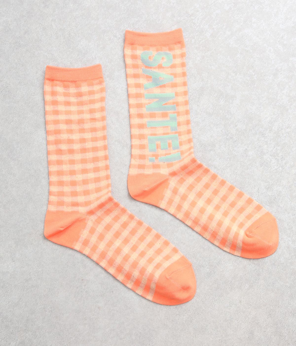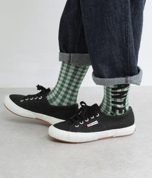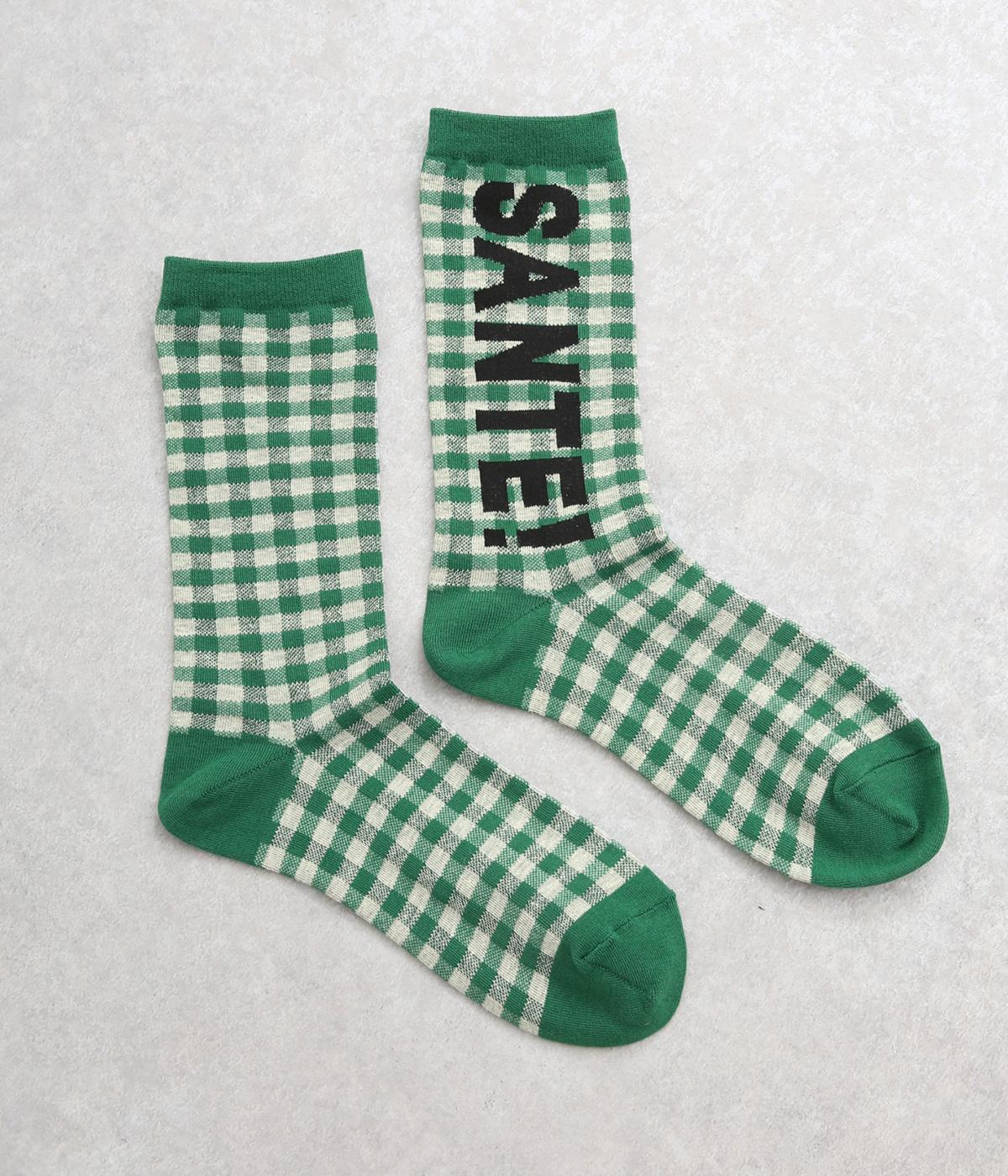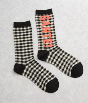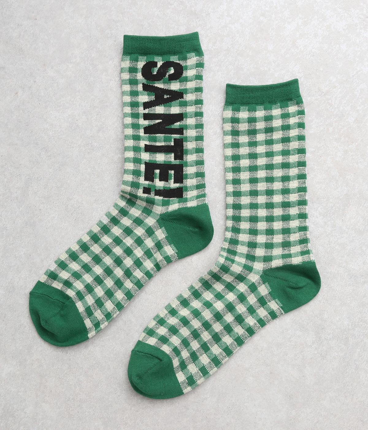 ギンガムチェッククロスが敷かれたテーブルで「SANTE!」と乾杯の声が聞こえてきそうな、にぎやかなシーンをイメージした柄ソックス。インパクト抜群な配色がポイントで、ボトムの裾からちらりとのぞくだけでも◎。