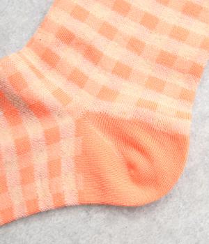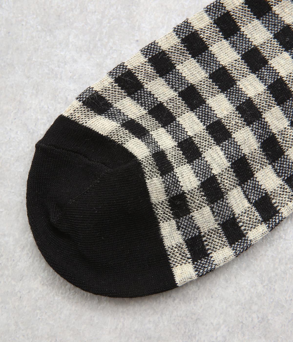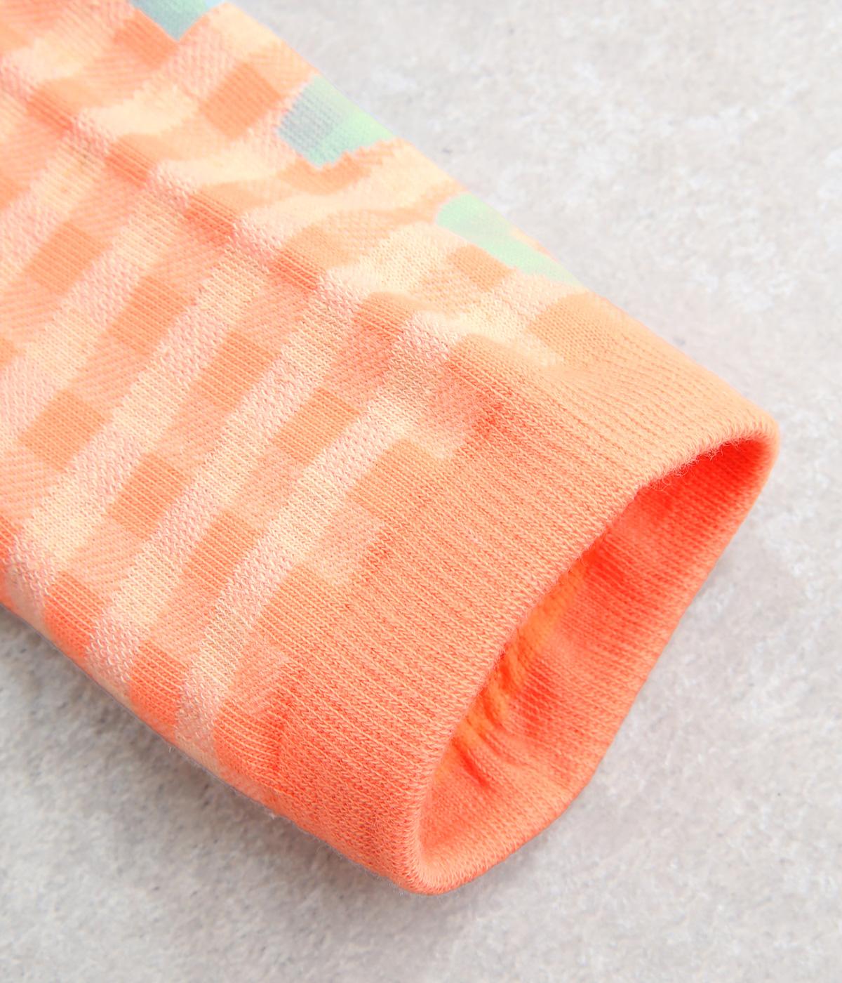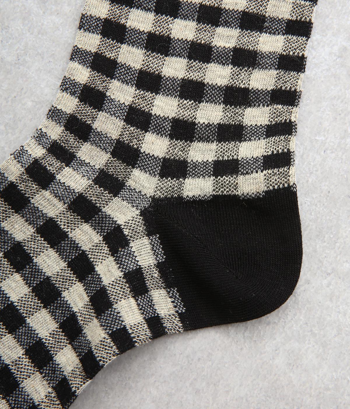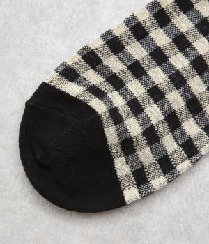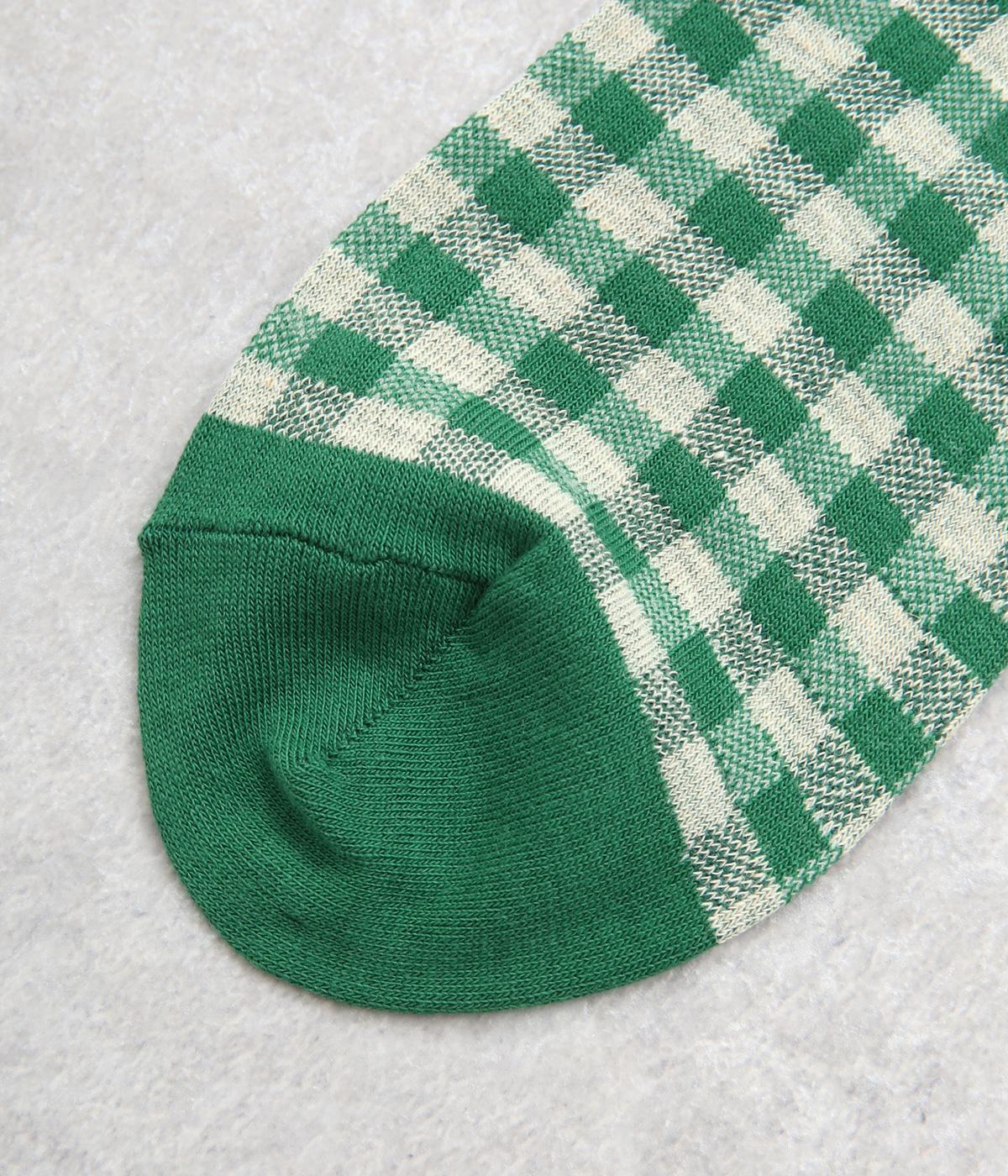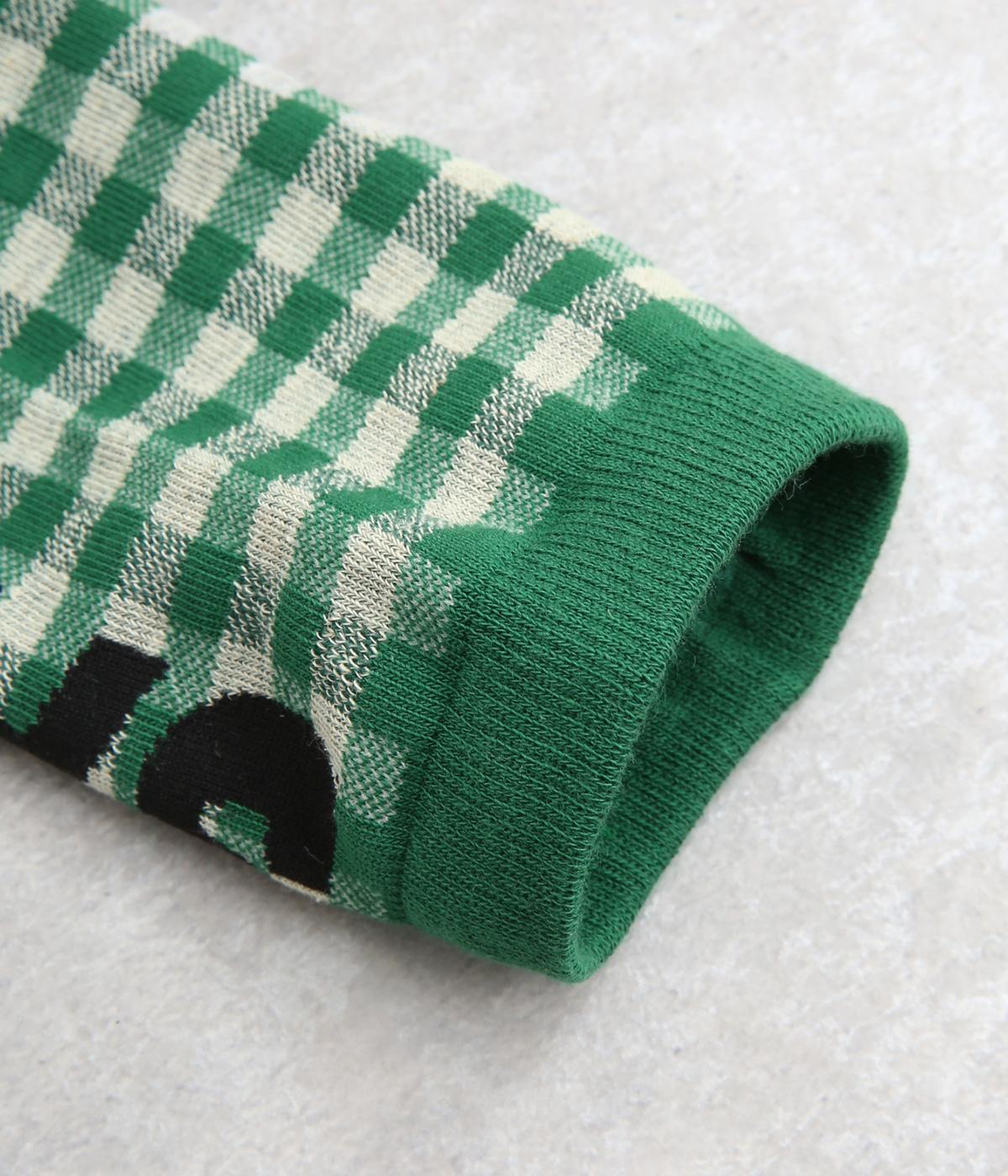 ギンガムチェッククロスが敷かれたテーブルで「SANTE!」と乾杯の声が聞こえてきそうな、にぎやかなシーンをイメージした柄ソックス。インパクト抜群な配色がポイントで、ボトムの裾からちらりとのぞくだけでも◎。