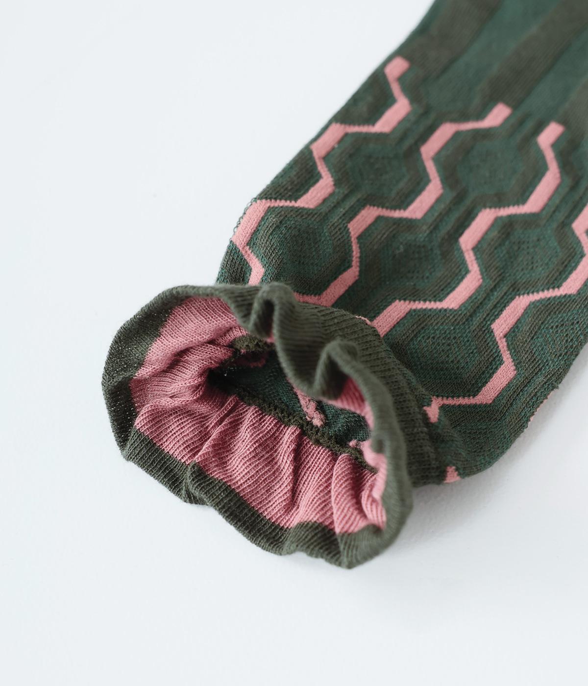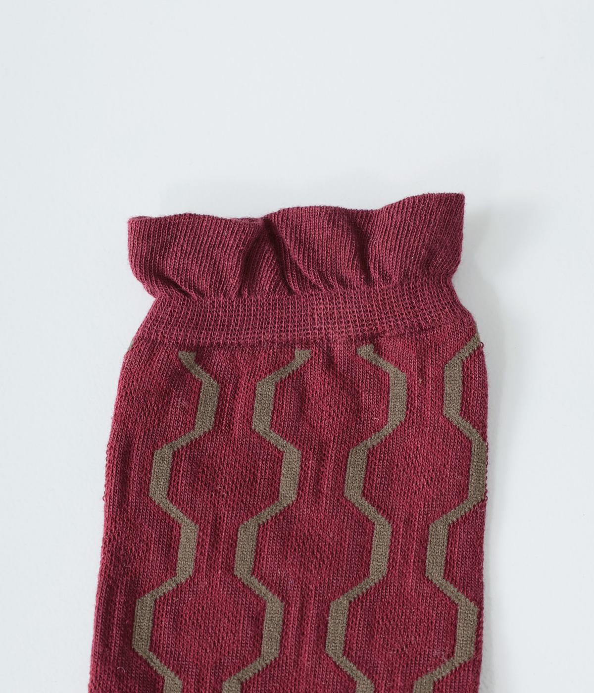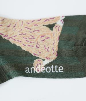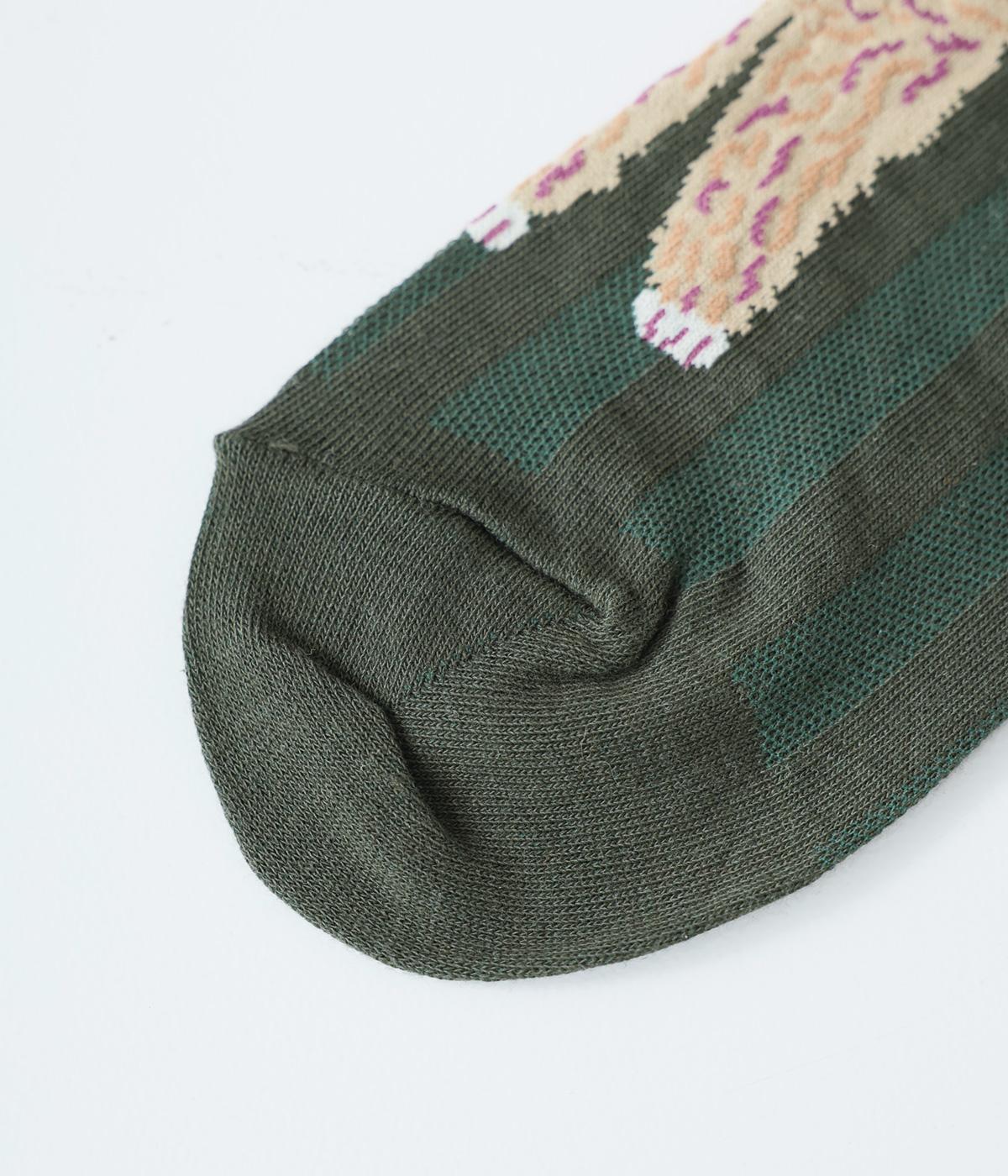 かわいらしい犬を大胆に描いたインパクトたっぷりなソックス。メインのデザインを甲部分にあしらった、新鮮なムードを運ぶ一足です。パンプスなど、甲が開いたシューズと合わせるのがおすすめ。
