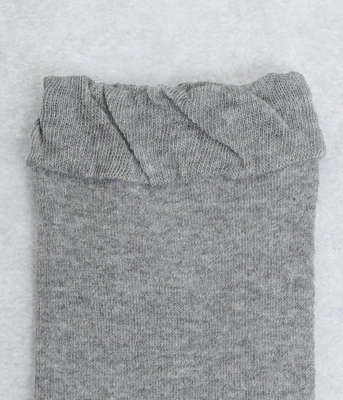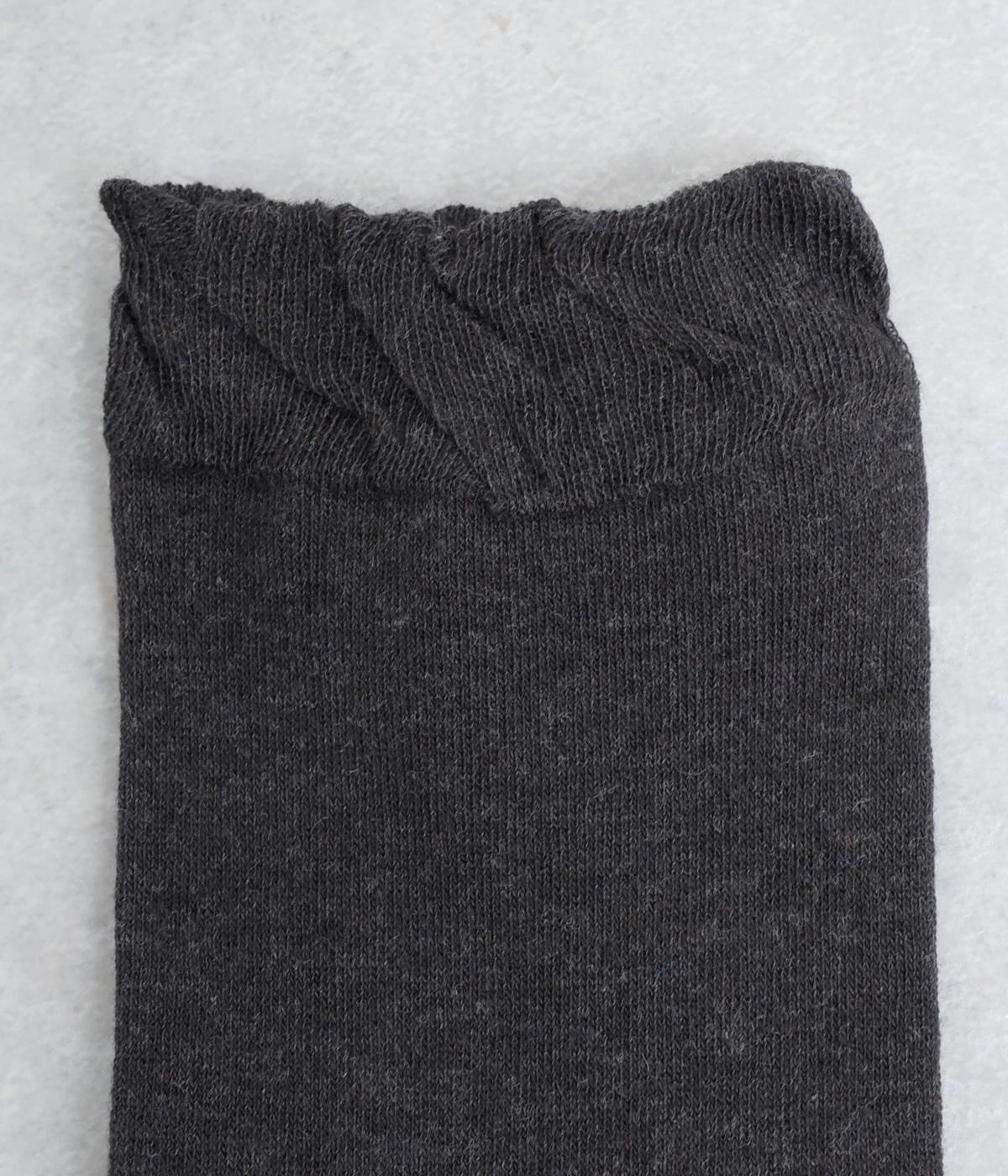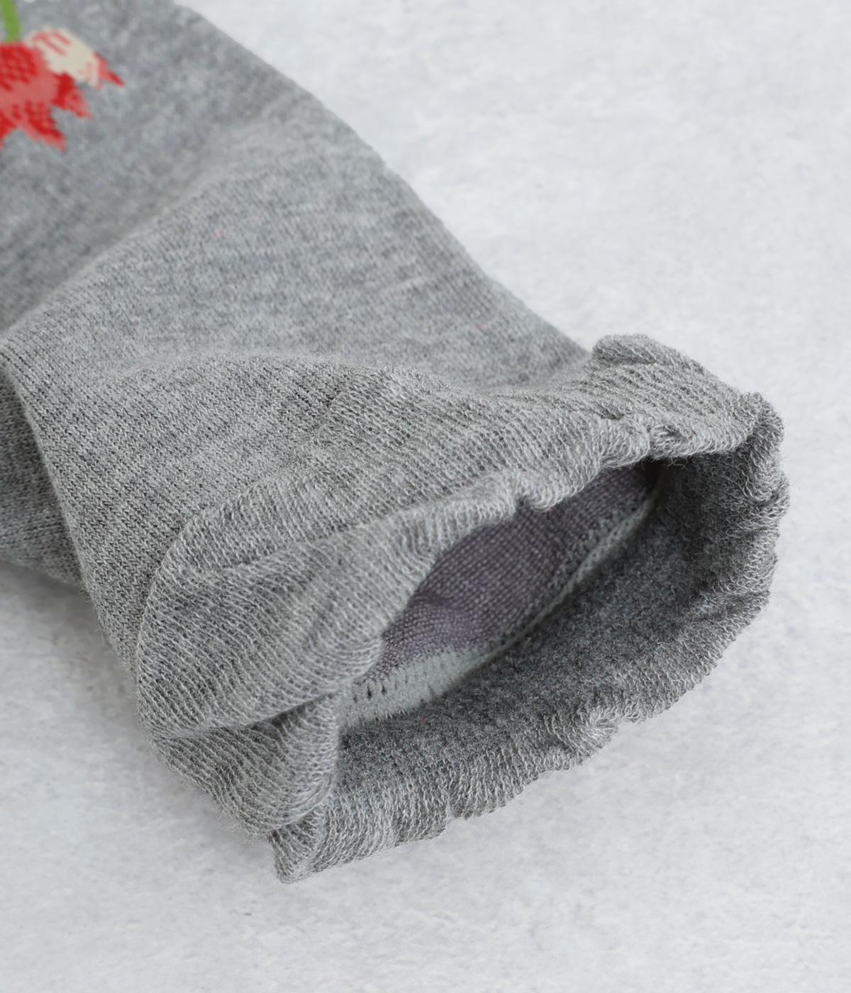 コットン混紡糸で丁寧に編み立てたやわらかな肌ざわりが魅力の生地。編み目が細かいからこそ表現できる繊細な柄に注目です。はき口のゴムは締めつけ感が少なくやさしいフィット感にこだわりました。