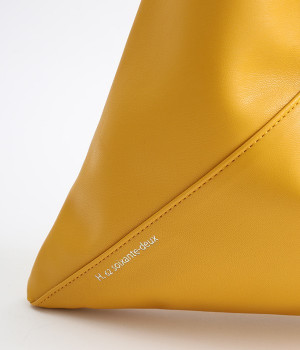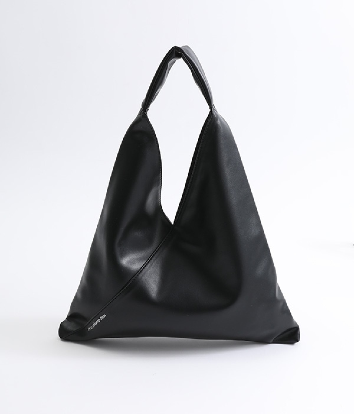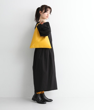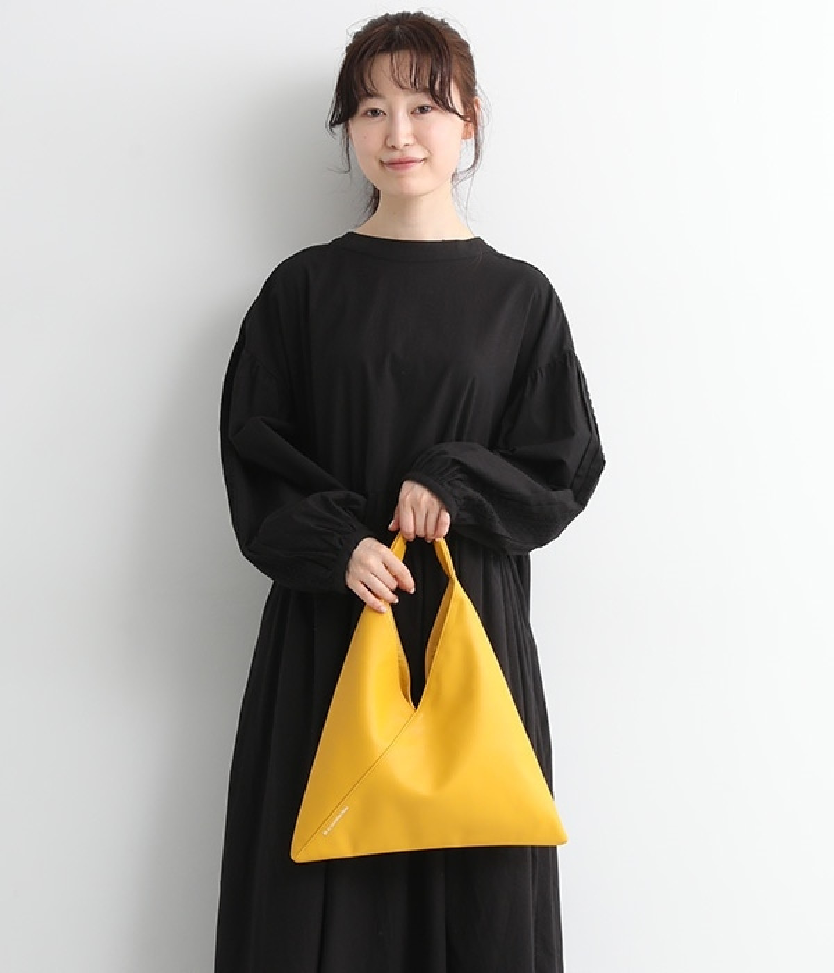 スタイリッシュなトライアングル型が大人の女性にぴったりのトートバッグです。とても軽量で耐久性のある、サスティナブルな合成皮革を使用しています。やわらかくなめらかな手触りと、いつでもさっと持ち出せるサイズ感が使い勝手抜群。長財布やポーチ、500mlペットボトルなどお出かけの必需品が余裕を持って収まります。開口部にはマグネットボタン付きです。