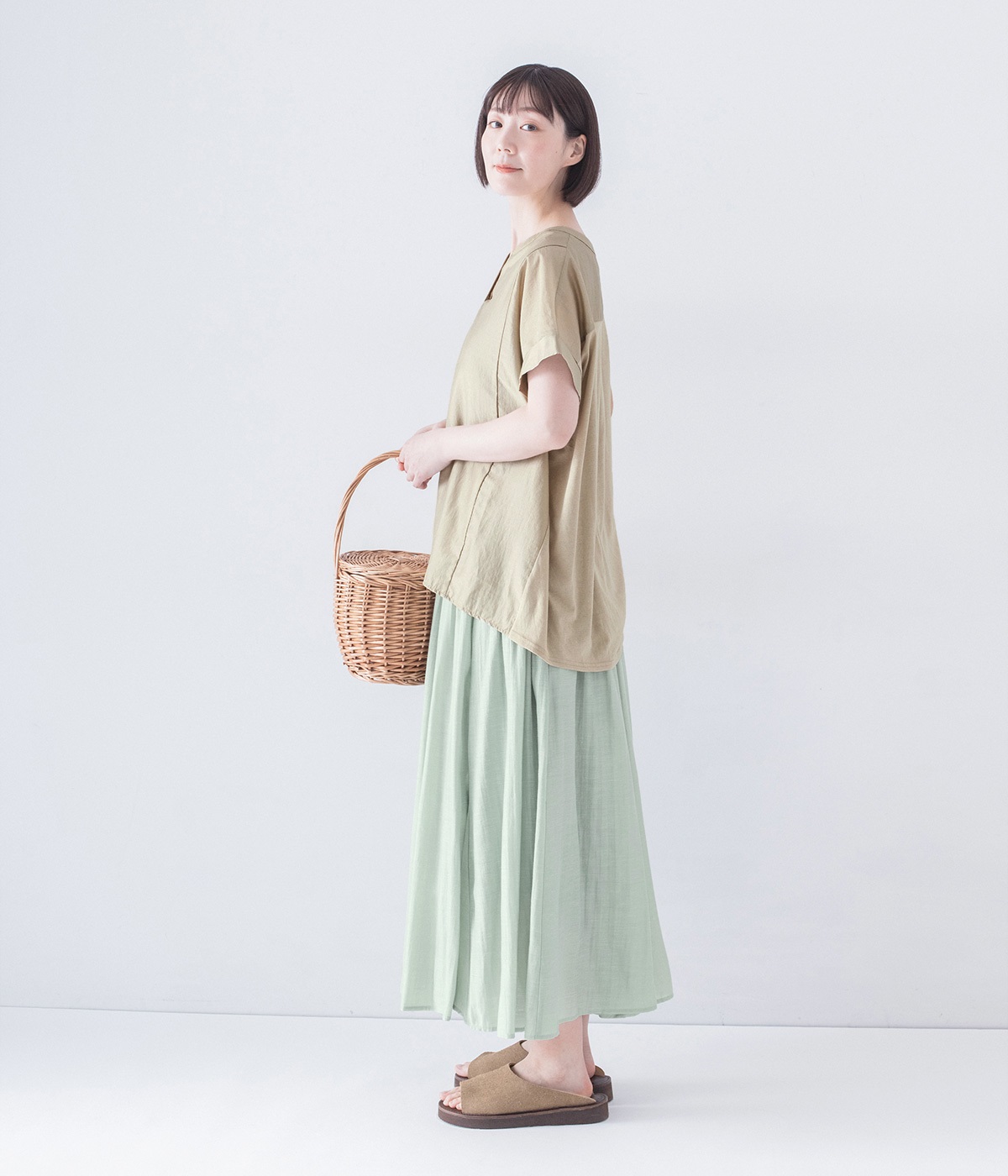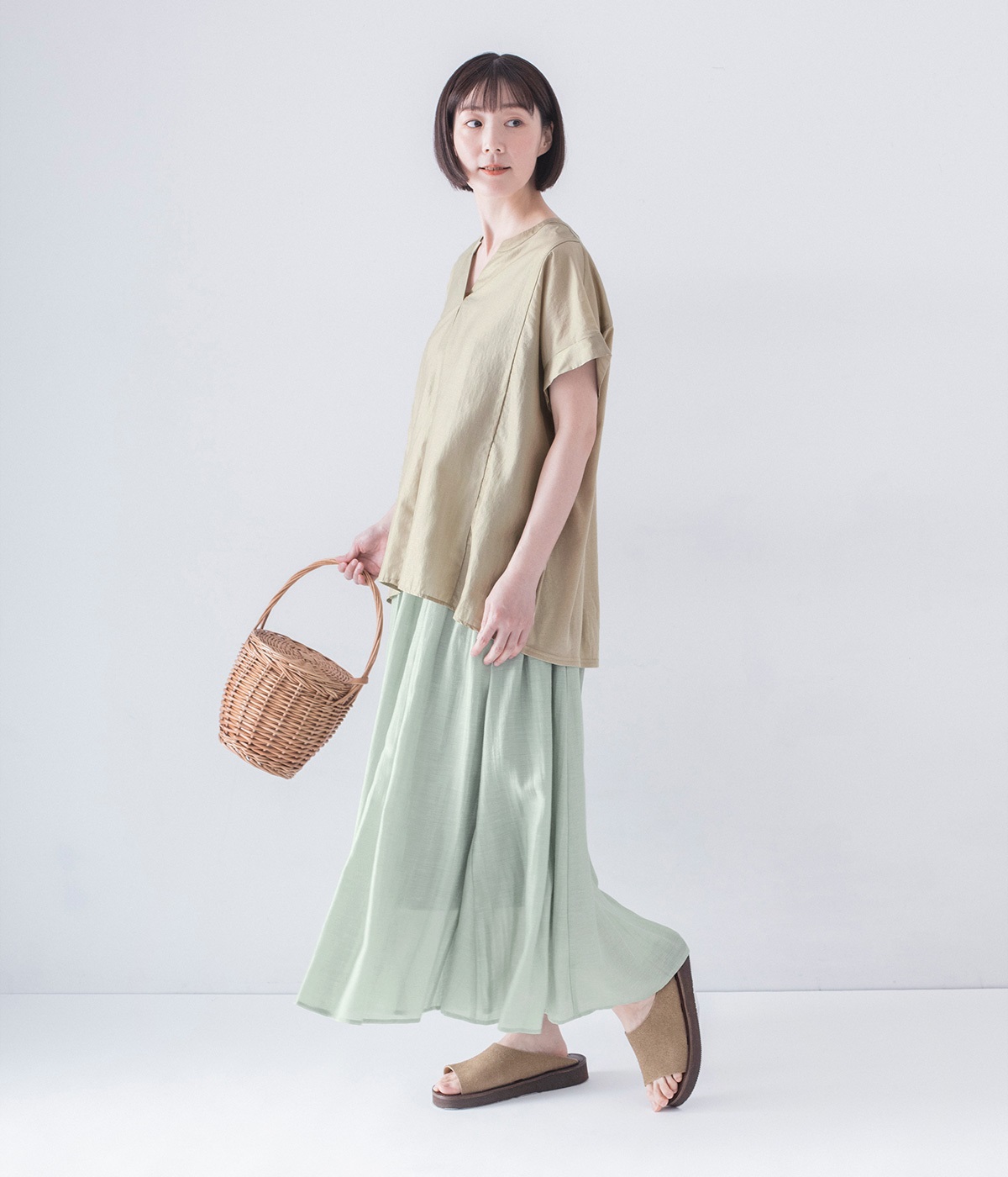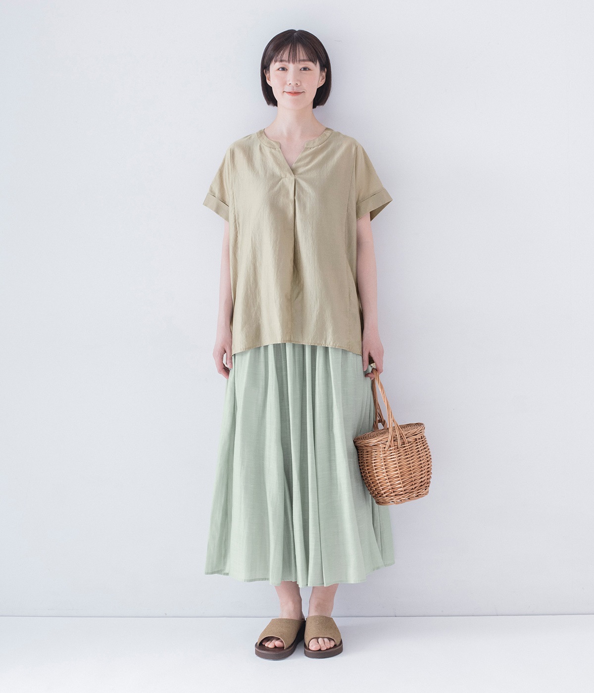 爽やかな色・柄のスカートを取り入れると、夏気分も高まります。