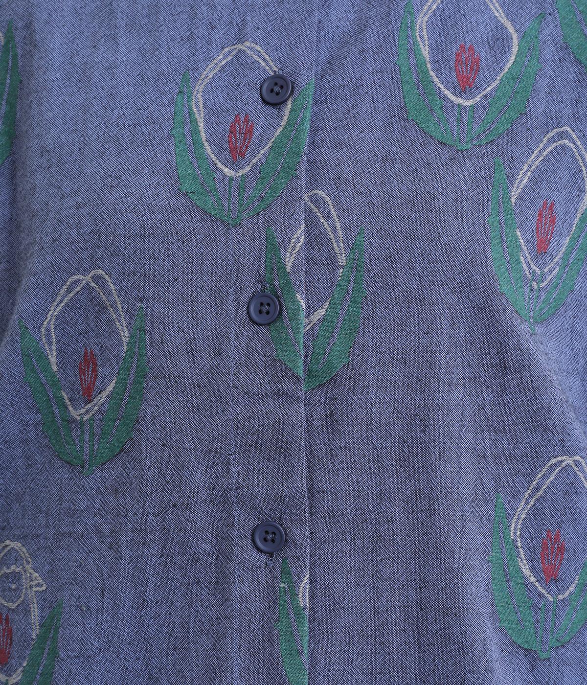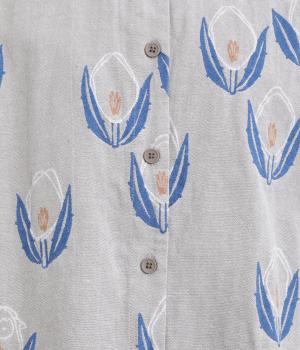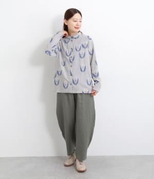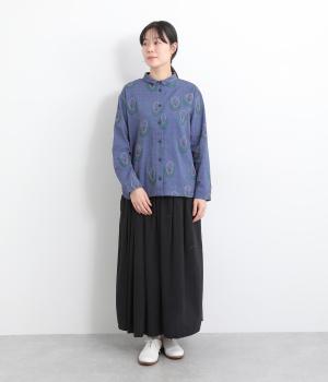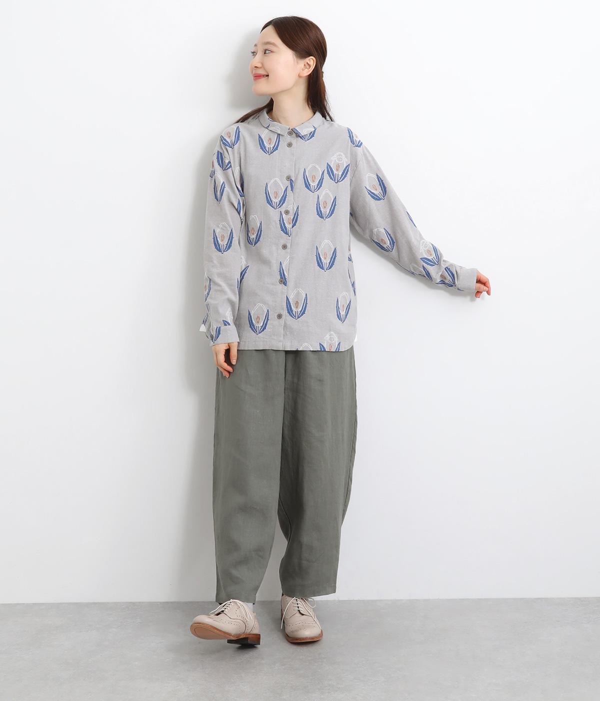 ラフに描かれたお花の中に羊がさりげなく隠れる愛らしいジャカードシャツです。甘さをおさえた柄なので、大人でも気負いせずに着やすいのが魅力。一枚で主役になりつつ、羽織りやインナーとしても便利に着まわせます。