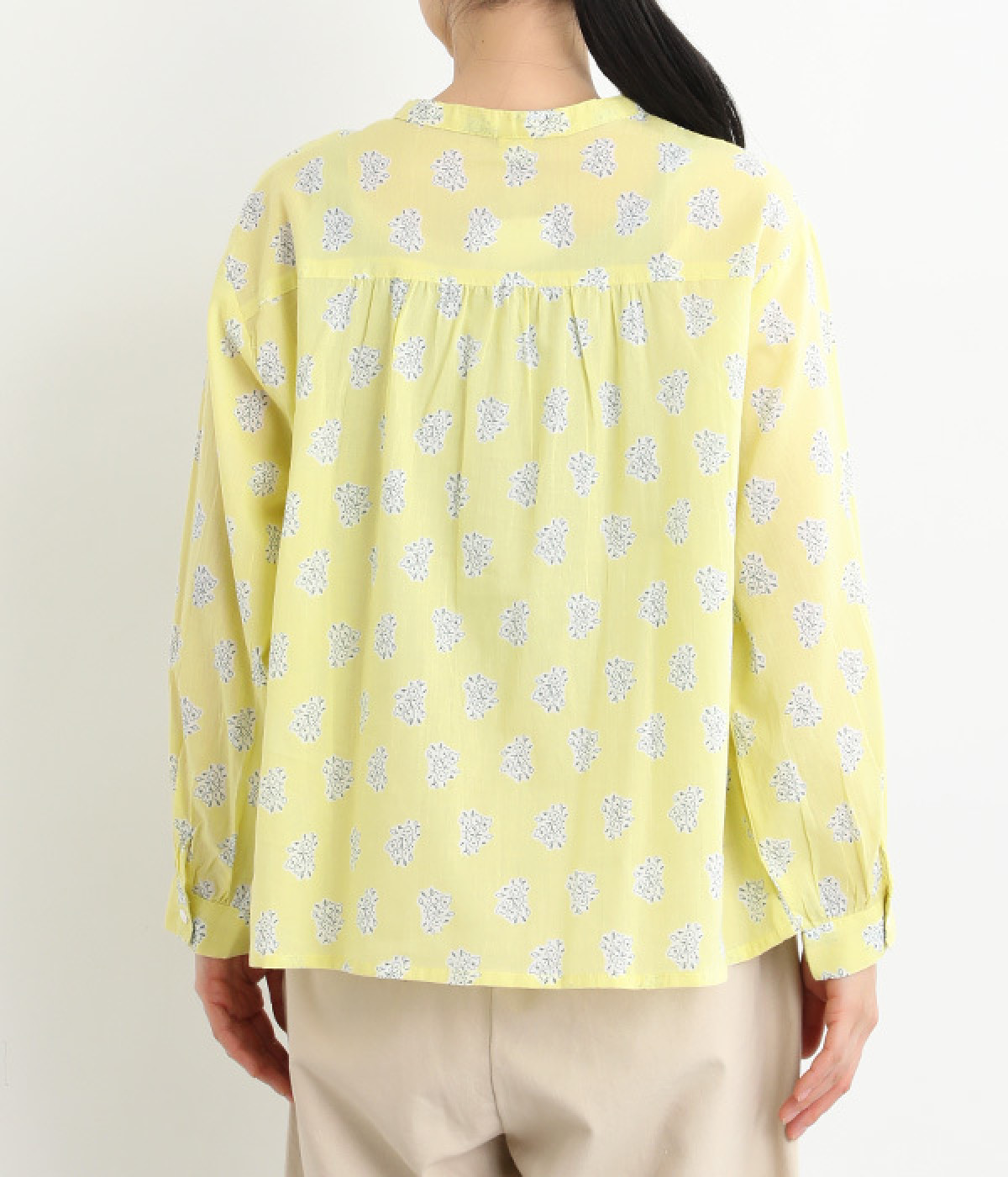 後ろヨーク下のギャザーがバックスタイルを可憐に