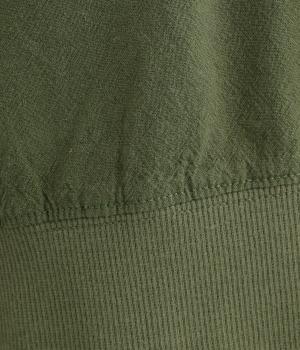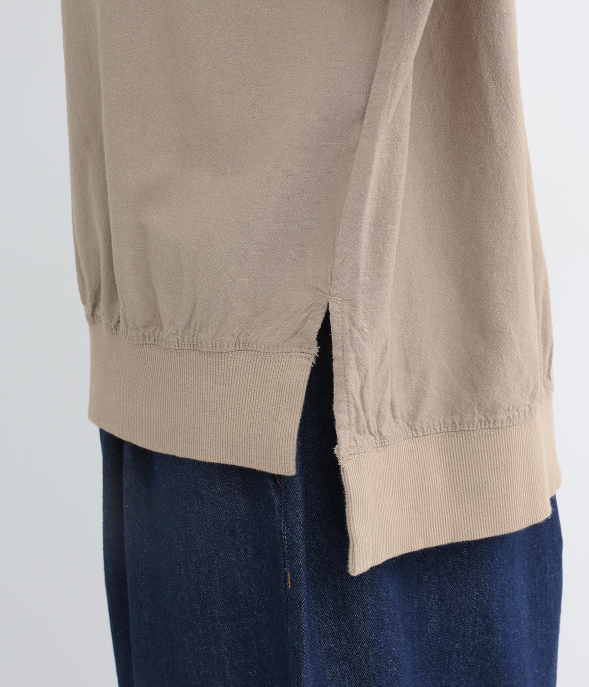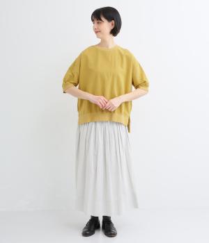 やさしい肌ざわりのコットンに清涼感のあるリネンと落ち感のあるレーヨンをミックスしました。シボ感のあるナチュラルな風合いで、やわらかく快適な着心地です。