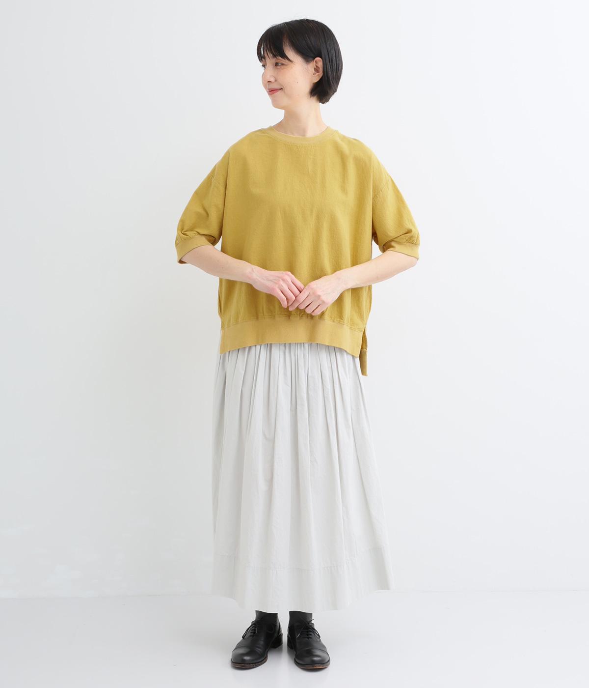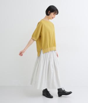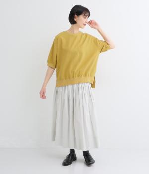 落ち感のあるシルエットにリブを合わせて、メリハリのあるバランスに仕上げました。サイドスリットが、生地のやわらかな表情を引き立てて、シンプルながらもエレガントな雰囲気に。カジュアルにもフェミニンにもマッチする一枚です。
