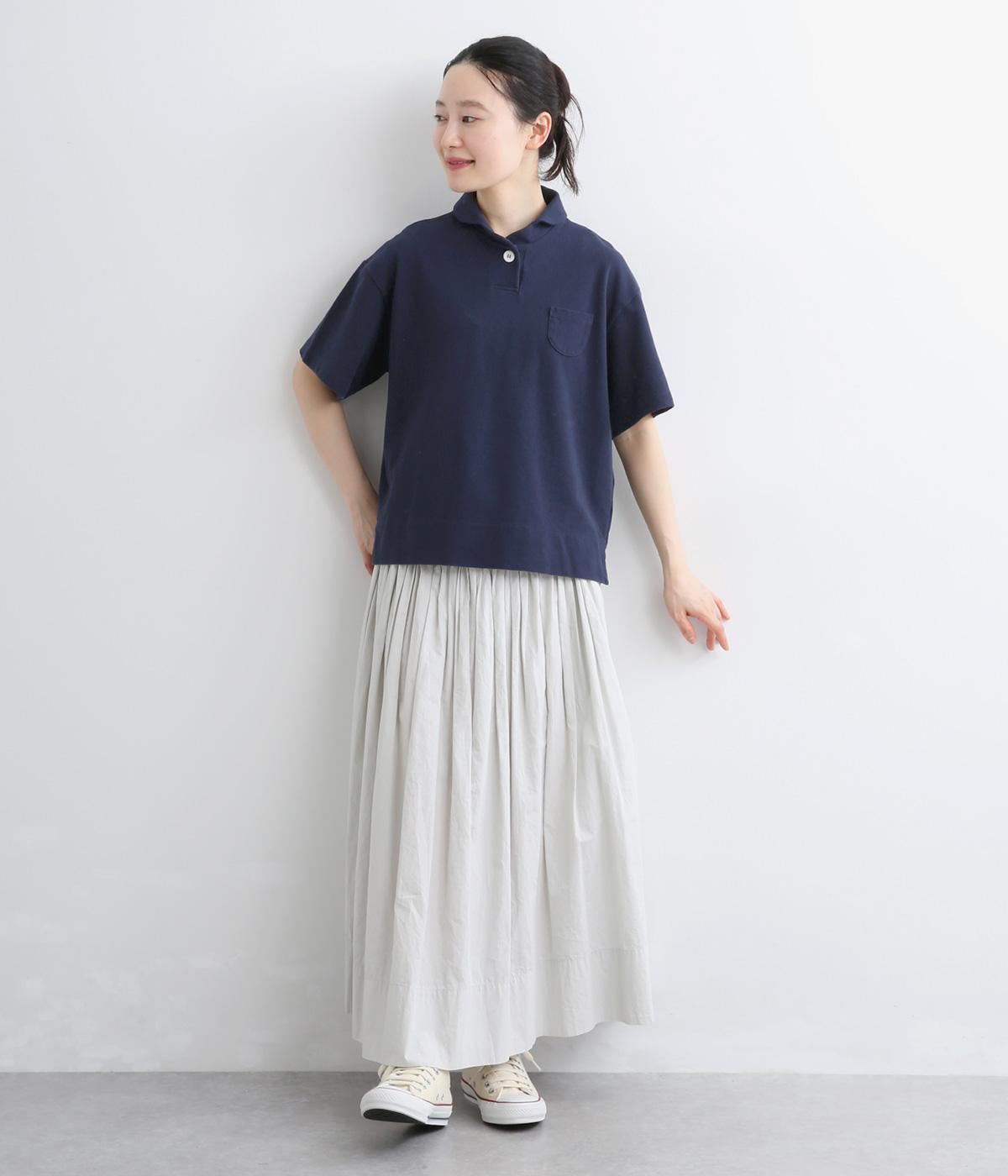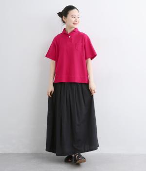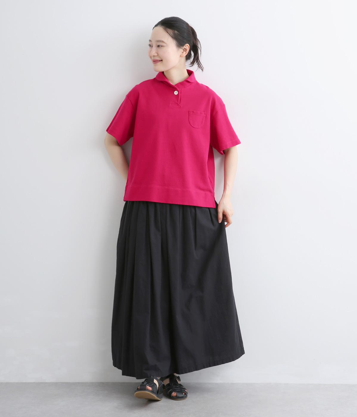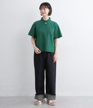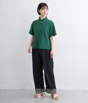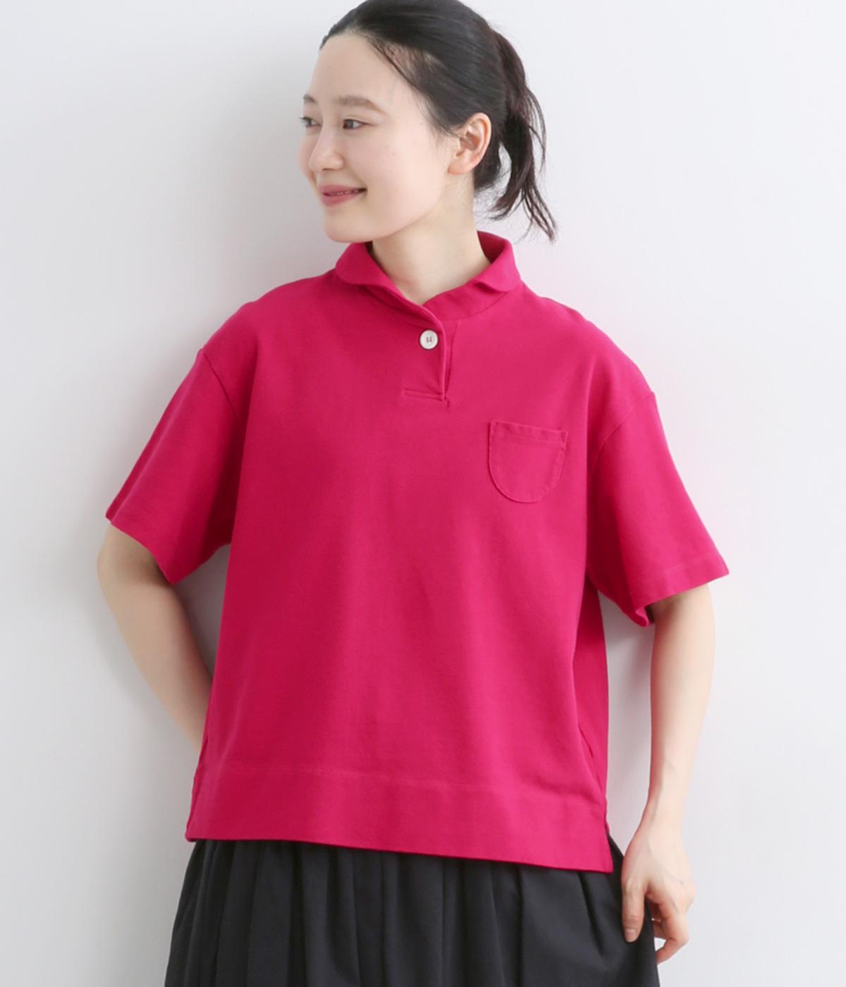 ちょこんとついた胸ポケットや小さな襟など、ディテールにラウンド要素を取り入れた可愛らしさのあるポロシャツ。無地ながらも表情のある素材にクリアなワンカラーが着こなしのポイントにも。すっきりしたシルエットが好印象です。