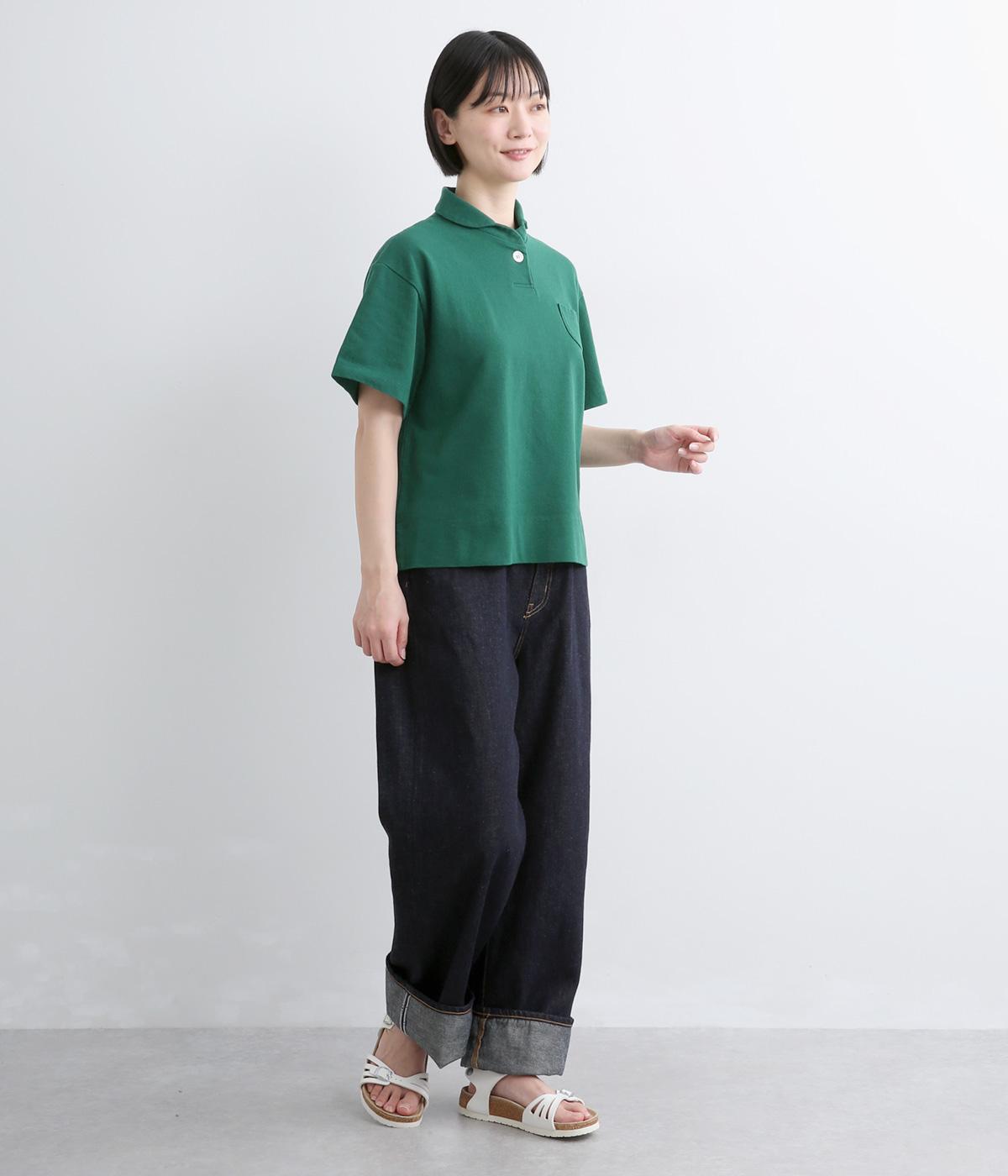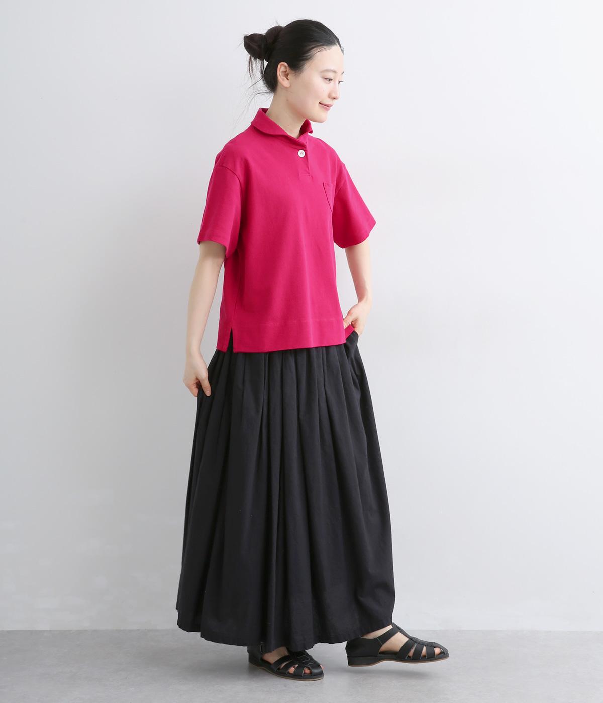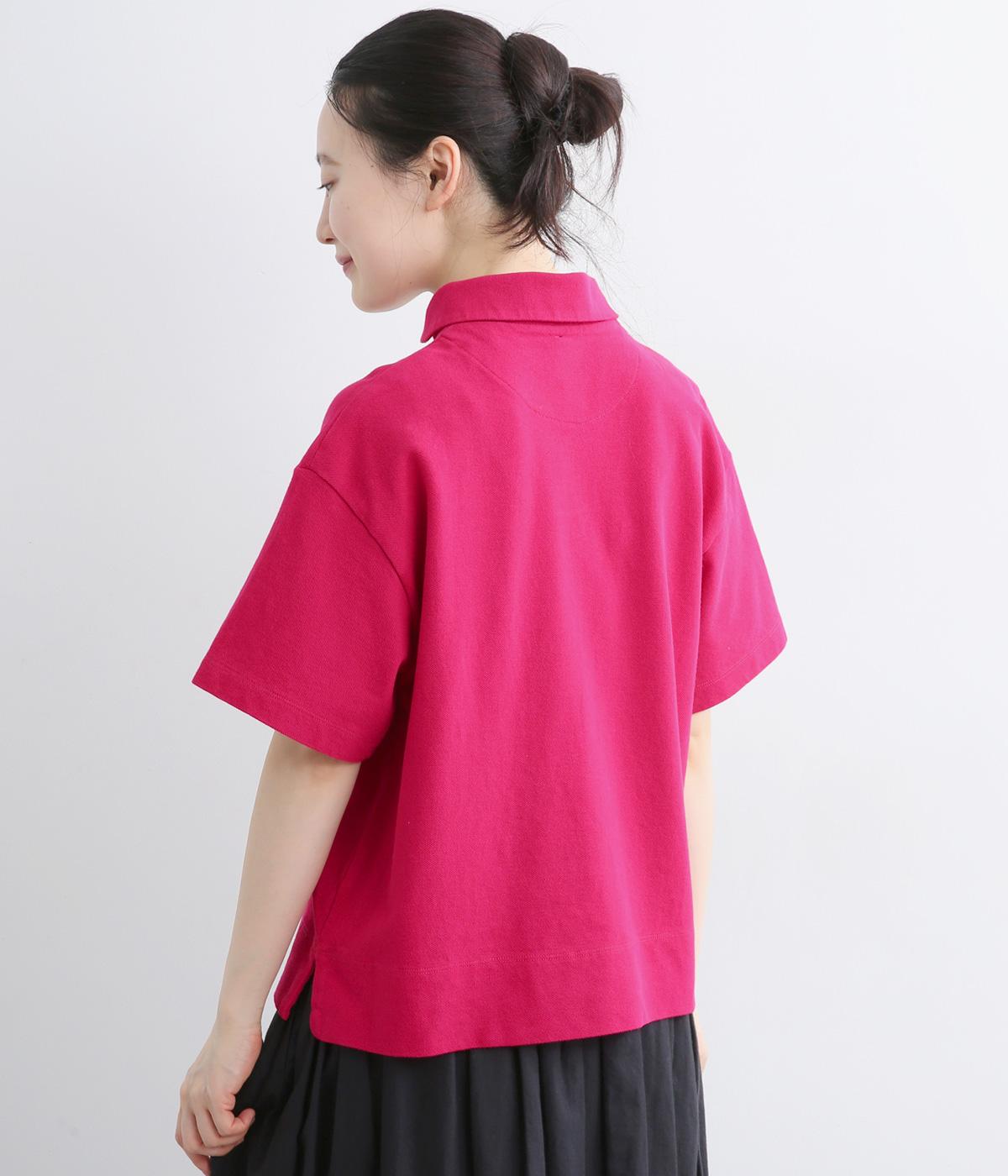 ちょこんとついた胸ポケットや小さな襟など、ディテールにラウンド要素を取り入れた可愛らしさのあるポロシャツ。無地ながらも表情のある素材にクリアなワンカラーが着こなしのポイントにも。すっきりしたシルエットが好印象です。